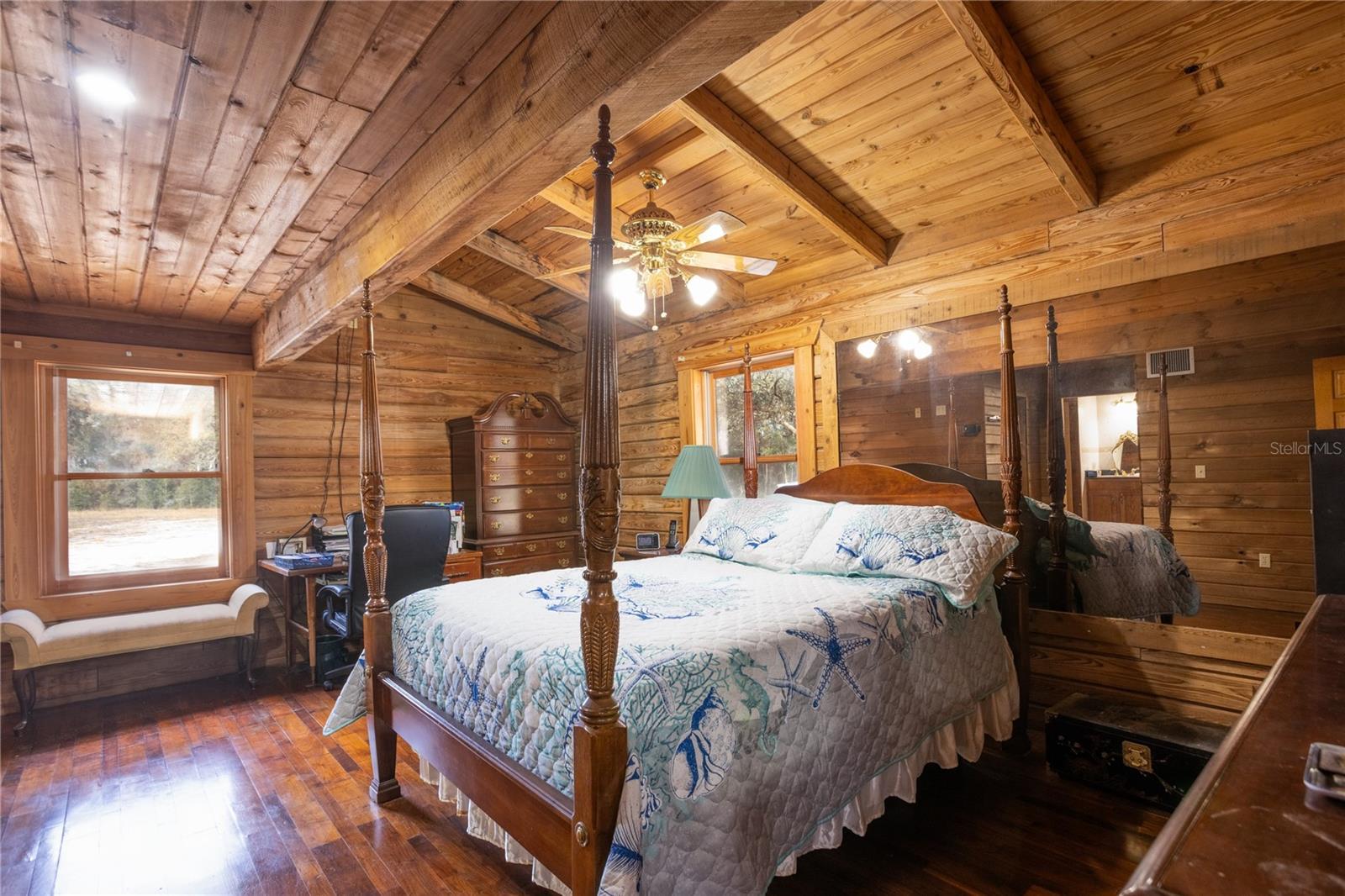 One or more photo(s) has been virtually staged. DISCOVER THE SERENE LUXURY OF THIS METICULOUSLY HANDCRAFTED CYPRESS LOG CABIN, your private and fully fenced 6.11-acre estate in Sorrento, FL. Being offered for the first time, this unique, one of a kind 4,067 SF residence blends rustic charm with modern sophistication, featuring five spacious bedrooms, each with its own private bathroom for ultimate comfort. A bedroom upstairs and a bedroom downstairs have no built-in closet. Pass through the entryway to find Australian Pine floors that flow throughout, while the downstairs primary suite offers a warm Walnut floor, two walk-in closets, and an ensuite with a garden tub and walk-in shower. The heart of the home is the comfortable living room, anchored by a magnificent stone wood-burning fireplace. Culinary enthusiasts will love the country-style eat-in kitchen, boasting extra-thick granite countertops and 42" solid wood cabinets. Sharing the fireplace, a separate sitting room opens to a massive 8’x40’ covered back deck, perfect for relaxing in the gentle Florida breeze. Leading from a spacious bedroom upstairs, a custom-made walkway leads to a versatile landing currently being used as a billiards/game area and a second master bedroom with its own walk-in closet and full bath. Functional highlights include an interior laundry room with a half-bath leading to an oversized 3-car garage. Meticulously maintained, the home was raised 3 feet for longevity and features a New Roof installed in July 2025, an exterior freshly sealed and pest treated in 2025, a New Hot Water Heater in 2025, dual A/C systems from 2022 and 2019, and a New Drain Field from 2020. This property is zoned A-1 with no HOA, offering unlimited potential for an accessory dwelling, gardening or horses & farm animals or use as a boutique Bed & Breakfast with a special exception. Enjoy unparalleled peace and privacy while remaining minutes from the 429, Mount Dora, Orlando, and Florida's famous beaches. This unique, one-owner cypress sanctuary is a rare find — experience it for yourself today!