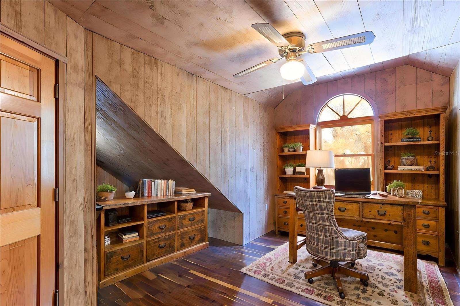 - Ceiling Fans(s), Eat-in Kitchen, Primary Bedroom Main Floor, PrimaryBedroom Upstairs, Solid Wood Cabinets, Stone Counters, Thermostat, Vaulted Ceiling(s), Walk-In Closet(s)