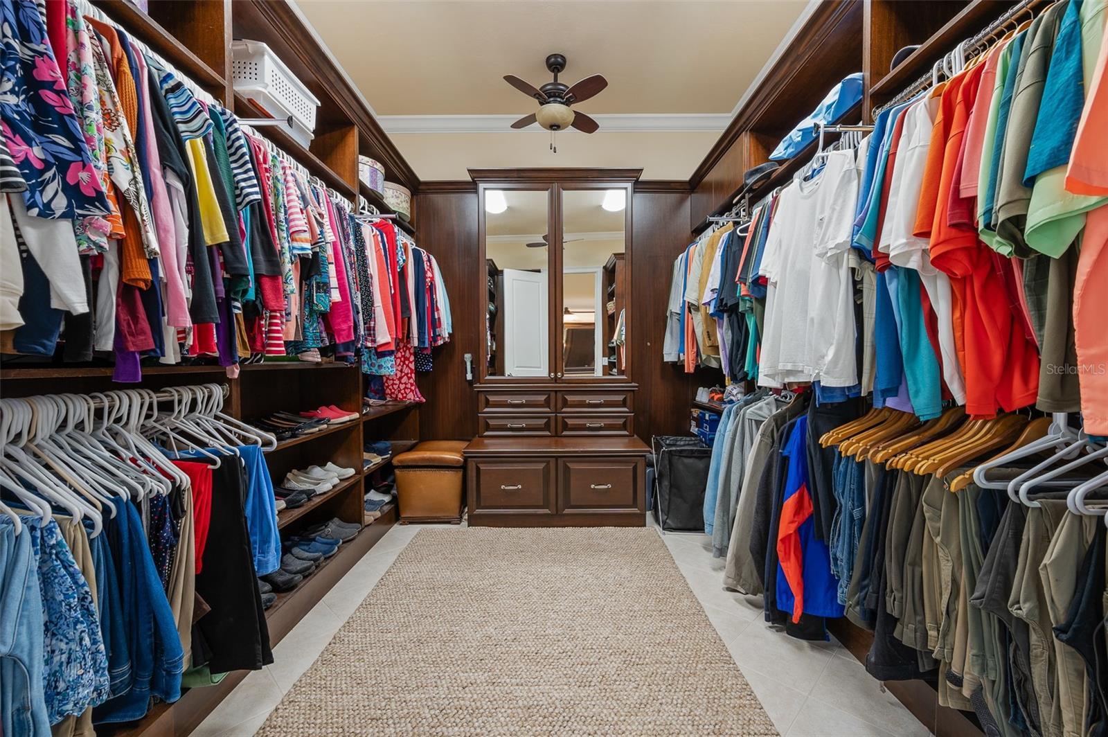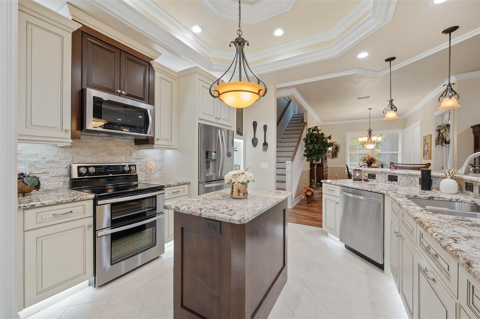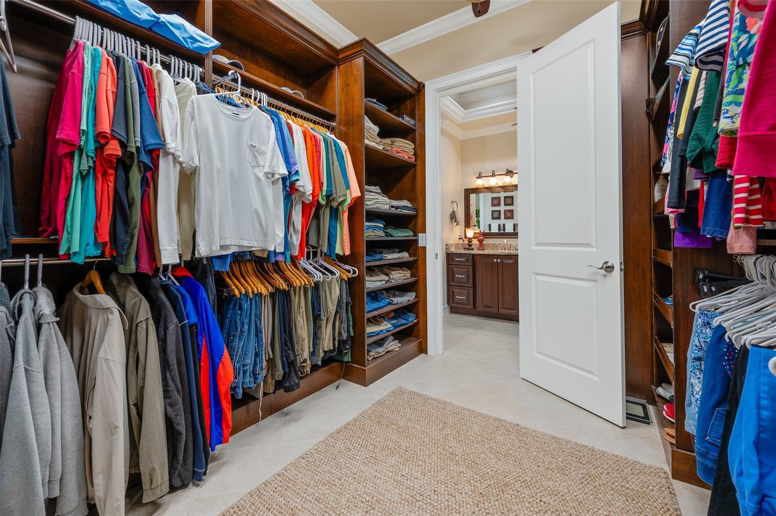 - Built-in Features, Ceiling Fans(s), Chair Rail, Crown Molding, High Ceilings, Primary Bedroom Main Floor, Open Floorplan, Solid Surface Counters, Split Bedroom, Tray Ceiling(s), Walk-In Closet(s), Window Treatments