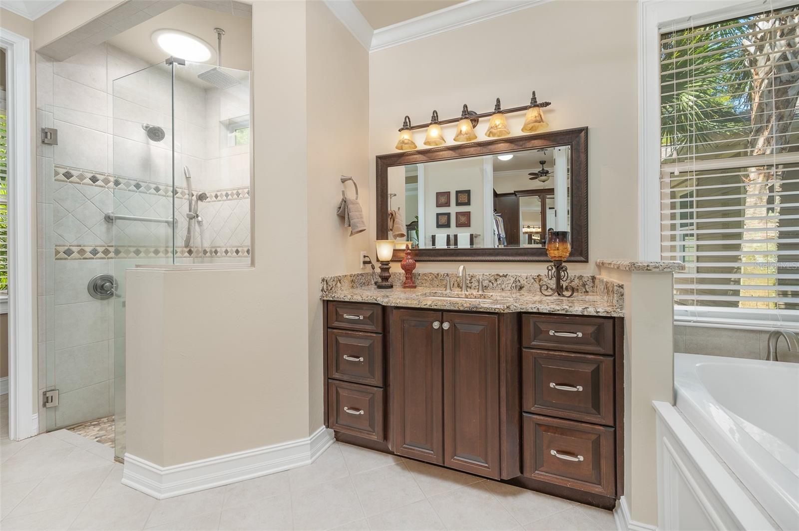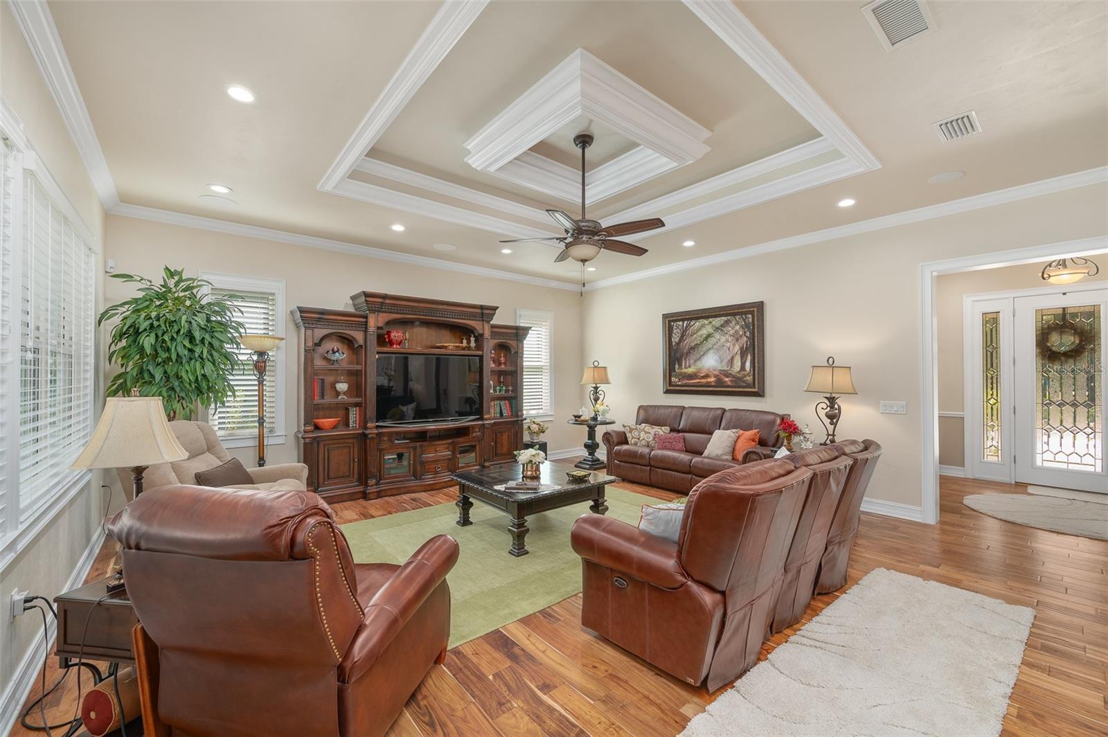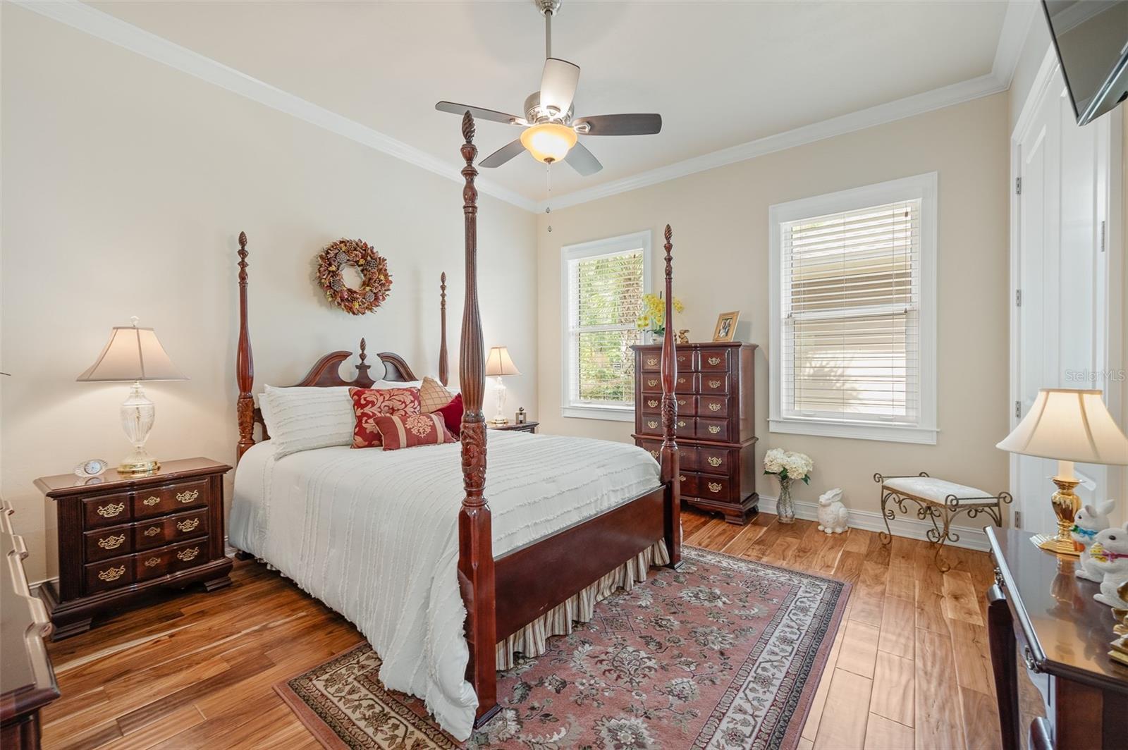 - Built-in Features, Ceiling Fans(s), Chair Rail, Crown Molding, High Ceilings, Primary Bedroom Main Floor, Open Floorplan, Solid Surface Counters, Split Bedroom, Tray Ceiling(s), Walk-In Closet(s), Window Treatments