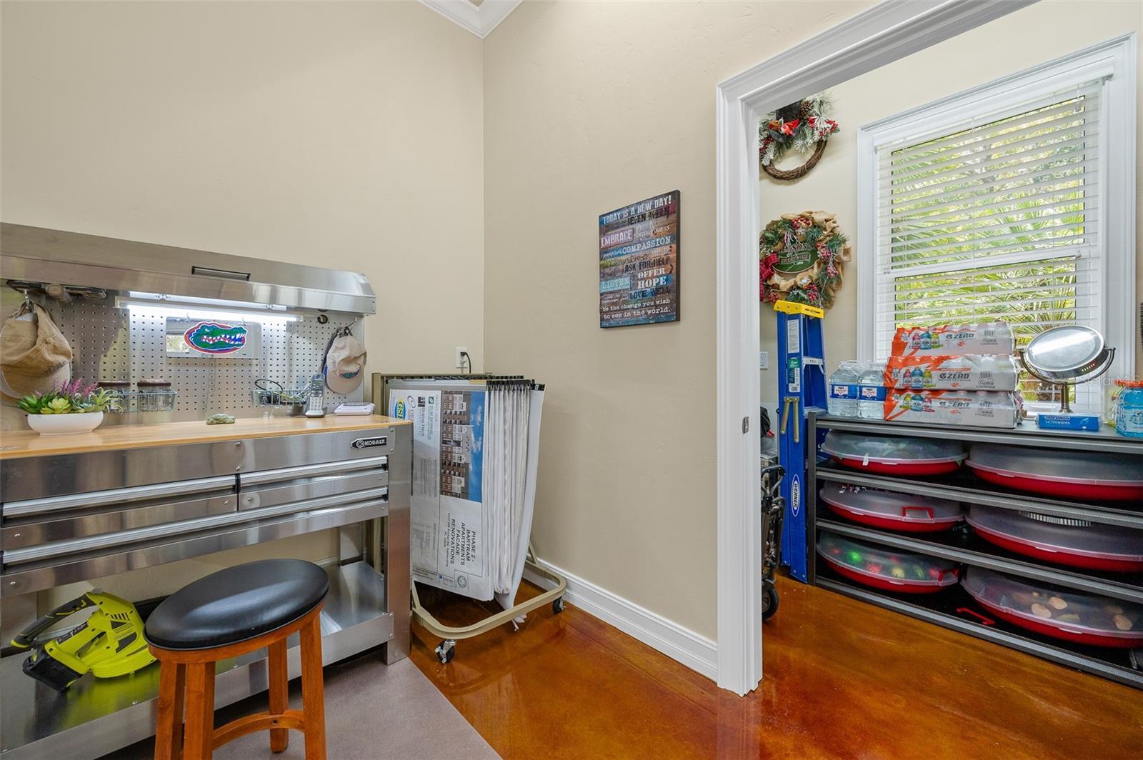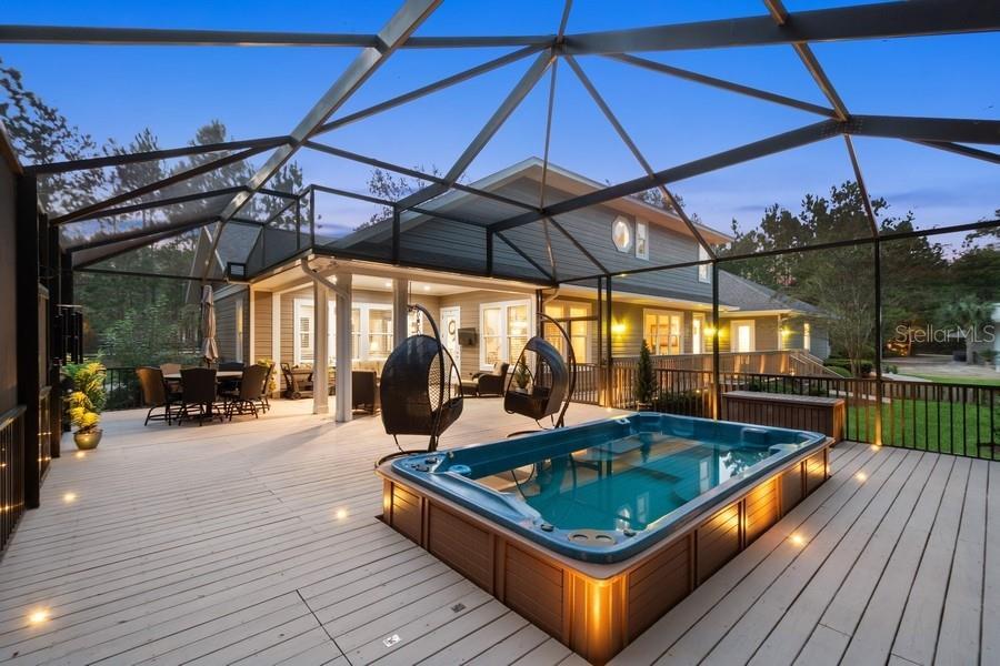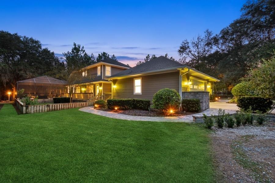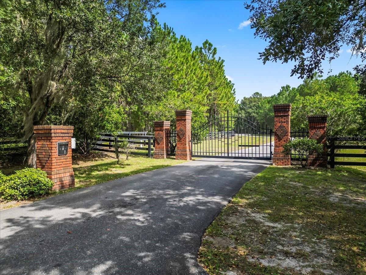 Welcome to your dream home on 5 acres of secluded paradise, nestled behind the secure gates of this stunning property. This meticulously designed current 4-bedroom, 3.5-bath, the original design was a 5 bedroom 4 bath can easily converted to the original plan -5 bedroom/4 bath, oasis boasts 3,769 square feet of pure luxury living space. As you step through the exquisite etched glass front door into the foyer, you'll immediately notice the attention to detail, from the crown molding that graces the ceilings to the gleaming hardwood flooring that extends throughout the entire home. The open concept living area features tray ceilings and 10-foot ceilings, creating an airy and inviting atmosphere. The heart of this home is the gourmet kitchen, complete with a walk-in pantry, 42-inch upper cabinets with undermount and under-cabinet lighting, and soft-close cabinets. Granite countertops, a center prep island, and stainless steel appliances make this kitchen a chef's delight. Tray ceilings with lighting and crown molding add an elegant touch. The adjacent dining area boasts crown molding and chair rail, with a convenient door leading to the screened back porch, where you can enjoy the beauty of your 5-acre estate...... The master bedroom is a sanctuary of tranquility with its tray ceilings, hardwood floors, and cased windows. The master bath features tall counters, granite, a tile shower, and a jetted tub, along with a luxurious closet system. On the main floor you'll find two bedrooms, with one currently used as a bedroom and the other as an office. The hall bath offers tile flooring, a tile shower, tall cabinets, and granite countertops. The laundry room is both functional and stylish, featuring ample granite counters, undermount lighting, and a door leading out to the deck area. A drop zone area with cabinetry, tile backsplash, and tile floors adds to the convenience, and a full bath nearby features tile shower and floors...... Upstairs, there's also an open area with a half bath and closet, which could easily be transformed into two additional bedrooms or a spacious flex room. This property is a true outdoor paradise, featuring a 2,200-square-foot screened porch with a 5-foot deep heated swim spa. ADDITIONALLY, a 1,200-square-foot METAL BUILDING with 20-foot ceilings, air conditioning, and two electrically operated entry doors can accommodate a Class A motorhome and includes a half bath. The garage is also air-conditioned, with acid-etched color on the concrete flooring and epoxy finish.... Custom designed and constructed by the owner for his personal residence, this home boasts numerous additional features, including storage galore, a generator for both the home and outbuilding, cased windows, crown molding, and 8-foot doors throughout. Wood flooring extends throughout the home, and the entire property is fenced for privacy and security. A comprehensive security system and sound system with cameras are in place, along with a 12-zone irrigation system. The landscape and hardscape are beautifully maintained, featuring LED site lighting and a stone fire pit. A lime rock base is ready for paving, and there are two gates providing access to the property. A special bonus is the A/C Christmas storage room. This one-of-a-kind property offers a luxurious and secluded lifestyle, where every detail has been thoughtfully considered. Don't miss the opportunity to make this exceptional residence your own. Welcome home!