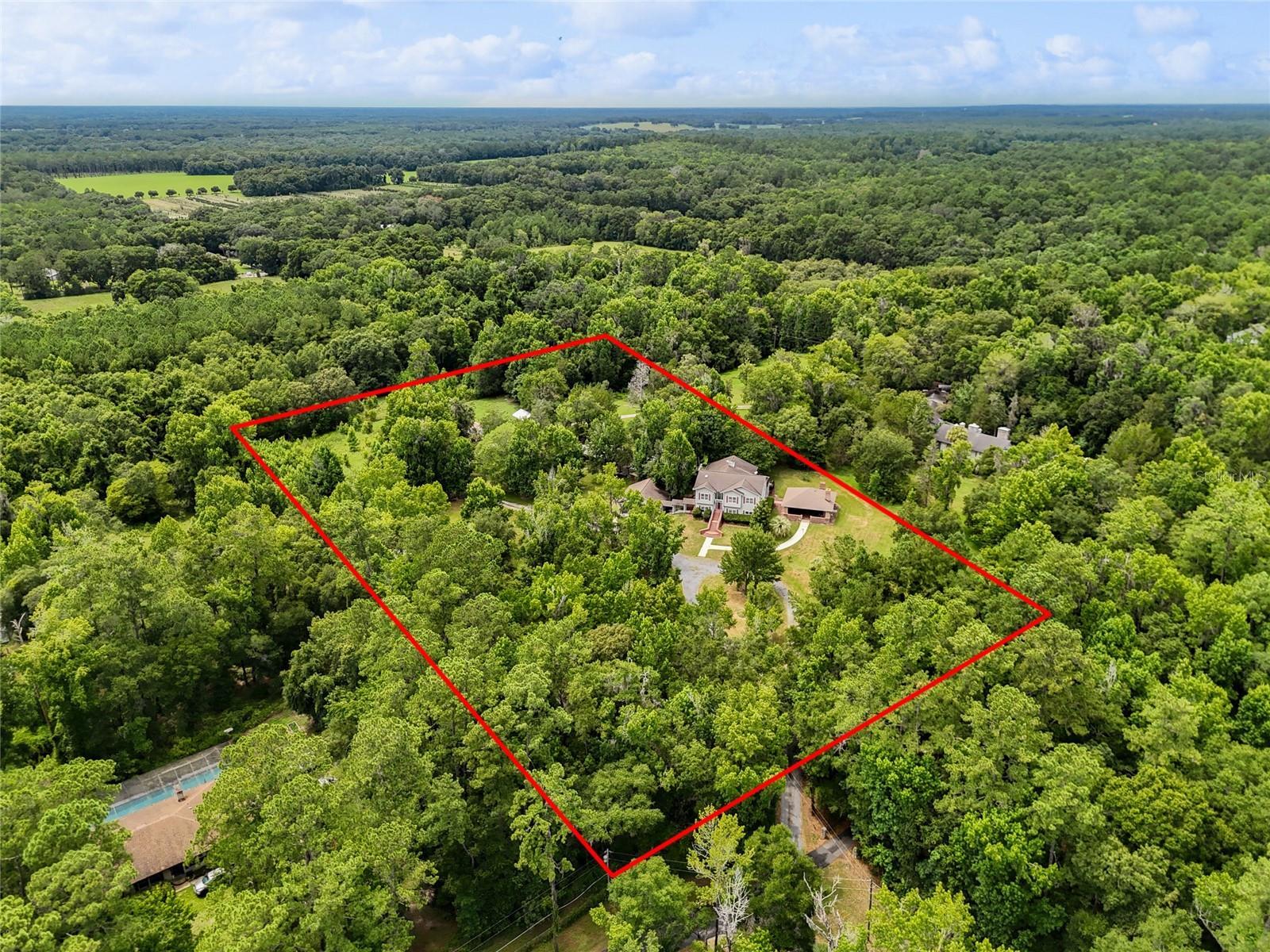 Welcome to your ultimate entertainment oasis nestled in the perfect blend of rural tranquility and urban convenience with No HOA. This sprawling 4,279 sqft estate on just over 5 acres offers everything you need for luxurious living and seamless entertaining. Rest easy knowing that all A/C units were replaced recently. Step into the heart of this home and discover a chef's dream kitchen boasting not one, but two expansive islands, adorned with sleek stainless steel appliances including a Viking Gas Range and Oven. Imagine gazing out at deer and wild turkeys from the second-floor balcony, the perfect spot for your morning coffee. For movie nights or game days, retreat to the dedicated theater room equipped with plush, individual recliners for cinematic comfort. Adjacent, a custom wine storage awaits, showcasing your collection beautifully. An indoor bar beckons with ice machines and multiple beverage refrigerators, ideal for hosting gatherings large and small. Venture outside to your private haven, complete with a custom-built brick outdoor kitchen. Whether grilling on the LP gas-equipped grill, savoring flavors from the wood fire grill, or crafting homemade pizzas in the wood fire pizza oven, every culinary desire is met. Additional amenities include two paddocks for your furry companions, two pole barns with concrete pads for ample storage, and parking for all your recreational vehicles. Located just 5 minutes from Publix and I-75, and a short 15-minute drive from Archer Road's vibrant dining and shopping scene, this property offers the best of both worlds. Seize this rare opportunity to live in a home where every detail is designed for comfort, luxury, and unforgettable entertaining experiences. Schedule your private tour today and make this exceptional property your own.