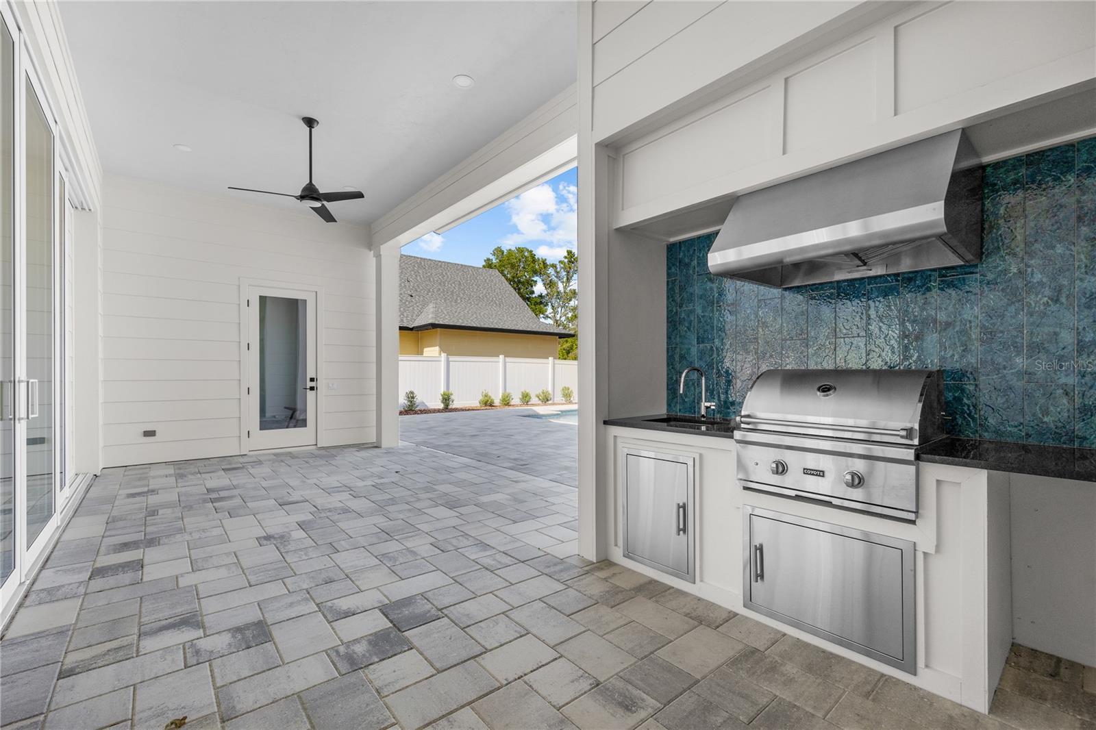 - Outdoor Grill, Outdoor Kitchen, Rain Gutters, Sidewalk, Sliding Doors