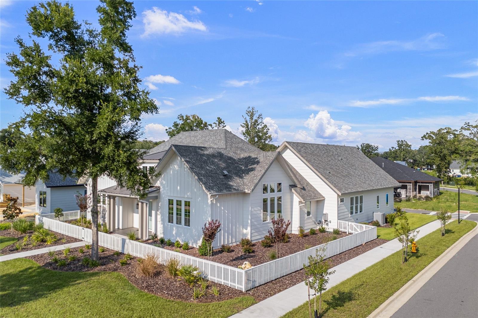 Under contract-accepting backup offers. This exquisite Warring Homes 4-bedroom, 4-bathroom custom home is nestled in the award-winning, golf cart-friendly neighborhood of Town of Tioga. Showcasing a traditionally designed symmetrical exterior, this home exudes timeless elegance while offering modern conveniences. Step inside to an open floor plan that is bathed in natural light with high ceilings providing a warm and inviting atmosphere. The primary suite, conveniently located on the first floor in its own private wing, boasts a spacious dressing room, ensuring a serene retreat. Thoughtfully designed for functionality, this home includes only one bedroom and bath on the second floor, a large pantry, oversized laundry room prepped for a refrigerator , and a drop zone, making daily living a breeze. The large back porch, summer kitchen and a full bathroom off the pool area offers additional convenience, ideal for outdoor entertaining. The 3-car garage provides ample space for vehicles and storage, accommodating all your needs. Located in a charming and tranquil setting, this home is just a stone's throw away from shopping and recreational facilities, offering the perfect balance between peace and accessibility. Neighborhood amenities include – pickleball court, clubhouse, community pool, playground, tennis courts, sand volleyball, basketball courts, walking trails, and adjacent to Tioga Town Center with fine dining, shopping, and Gainesville Health and Fitness. Approximately 4 miles to I-75, 4.5 miles to North Florida Regional, 8 miles to the University of Florida, and 11 miles to Shands.