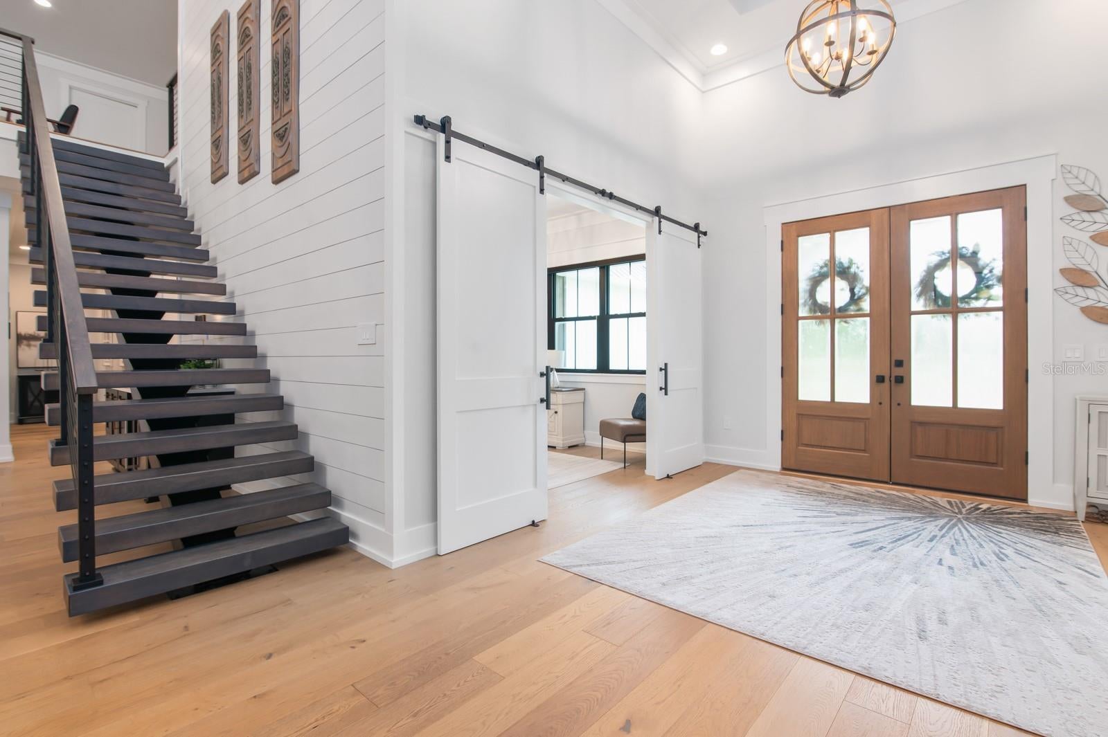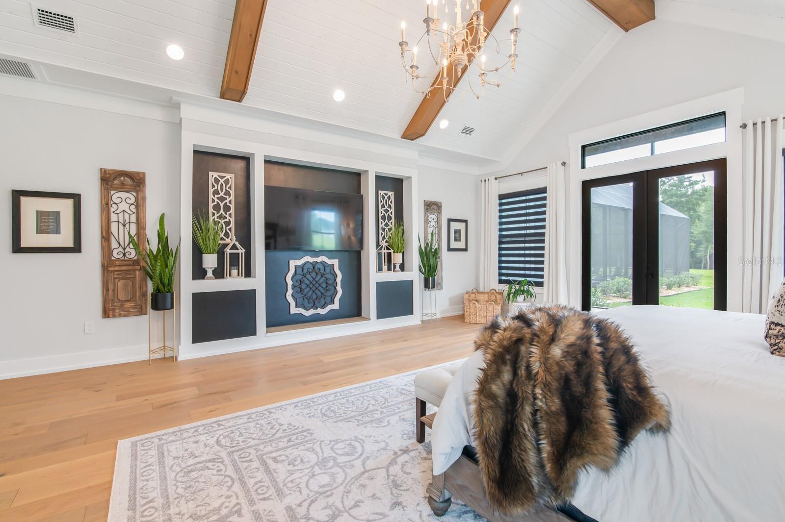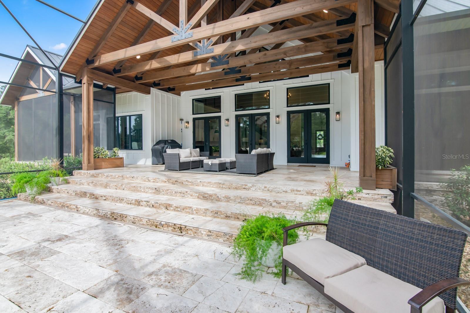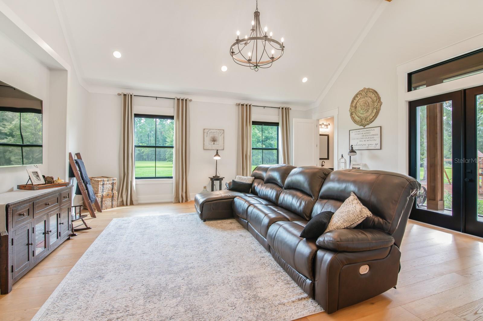 Under contract-accepting backup offers. Experience refined country living in this remarkable custom-built home located within the prestigious, gated Charleston neighborhood. Set on over 6 acres, this 4-bedroom, 3.5-bath residence includes a private study, entertainment room, loft, and dedicated storage space—offering luxury and flexibility for any lifestyle. Step inside through an impressive entryway that reveals soaring 23-foot ceilings adorned with cypress tongue-and-groove accents. Rich wood floors flow throughout the home, complemented by a show-stopping staircase featuring floating solid walnut treads. The gourmet kitchen is designed for both entertaining and everyday living, featuring a large center island, high-end gas range, butler’s pantry, and a coffee/wet bar for added convenience. The open-concept layout seamlessly connects to the great room, where walls of glass overlook the spectacular outdoor oasis. The primary suite is a true retreat, complete with vaulted ceilings, private glass doors leading to the pool area, and a spa-inspired en-suite bathroom. Highlights include a glass-enclosed shower, dual vanities, and a dream-worthy custom walk-in closet with built-in cabinetry and direct access to the laundry room. Step outside to your own private paradise: a screened saltwater pool with hand-built cypress trusses and extensive travertine decking—perfect for year-round enjoyment. Additional features include two tankless water heaters, full-house generator hookup, Central vacuum system and water softener. Four-car garage, large underground propane tank and Horse-friendly property. This home offers a rare blend of luxury, functionality, and space—truly a must-see.