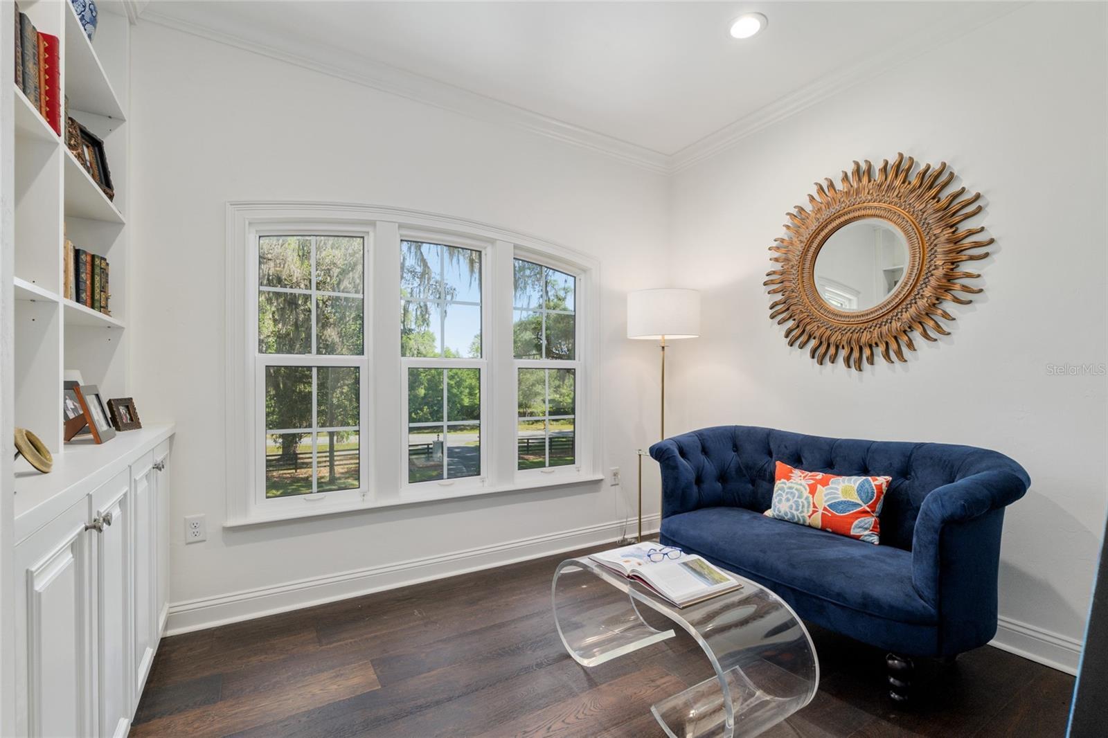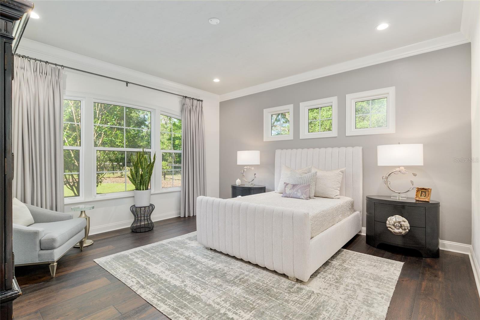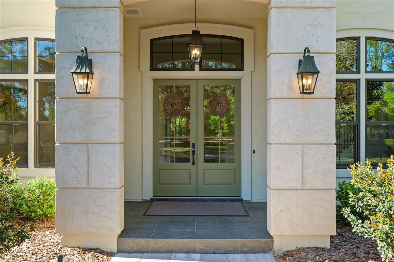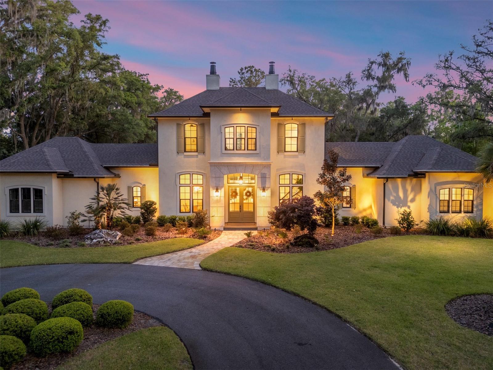 Epitomizing French Country architecture this absolutely stunning, chateau-inspired estate home is situated on a secluded 1.38 acre fully fenced lot with private gate. Exceptionally designed with spectacular finishes inside and out, this Bullard built, breathtaking home spans nearly 4200 SF under air. Featuring 3 bedrooms, 2 separate home offices, a home gym/playroom and 4 full baths, its floor plan flaunts an easy flow for daily living and formal entertaining. The private electric gate opens onto the home’s circular drive for guests, and the owner’s driveway to the left for accessing the split garages: on the left, the 1-car carriage garage, and a 2-car garage on the right. Characterized by its steep pitched gabled roof, tall doors, arched windows, stucco exterior with “ArchusStone” lime rock coating, decorative upper story shutters and twin chimneys, this home embellishes the trademark detail of French Country architecture – symmetry. The double French entry doors open onto the gracious foyer, noted with dark French oak flooring which connects the downstairs living spaces. To the left is formal dining room. To the right is the radius staircase. The family room has a tray tongue-n-groove ceiling accented with white beams, and two sets of French doors that open onto the screened lanai offering direct views of the private rear yard and trees beyond. The fireplace hood is similar in style to the kitchen custom vent exhaust hood. The Chef’s kitchen is truly spectacular. Featuring DH custom crafted cabinets topped with quartzite counters, no expense was spared. Appliances include a 48” sub-zero refrigerator with matching front cabinet panels, a 48” Wolf duel fuel range, a warming drawer and a microwave drawer. Between the kitchen and the breakfast nook is a walk-in pantry with wood shelving. Off the nook is the day foyer with stop-n-drop zone, and a French door that connects the breezeway for covered access to the 350 SF 1-car carriage garage. Opposite the nook side of the kitchen is the separate drop zone room with a coat closet, add’l cabinetry and shelving for storage, and direct access to the attached 675 SF 2-car garage. Past the drop zone is the scullery, and one of the prettiest overflow kitchens you will see, complete with wine cooler, sink with disposal, and 3 wine drawers. Next to the staircase is the master wing of the home complete with separate office with gas fireplace, custom built-ins, and a coffered ceiling; a guest hallway bath with shower, a proper-sized laundry room, and the master suite. The master spa bath has dual vanities, a slipper tub, 2 fit-and-finish organizational system walk-in closets, and a closet pocket door to directly access the laundry room. Upstairs are the two en suite guest bedrooms, the second home office space, and a separate gym/playroom. The 516 SF screened lanai spans nearly the width of the home, and has a summer kitchen with grill hood and prep sink. The list of luxury attributes and custom details is lengthy: custom drapery, Plantation shutters, Quartzite and granite counters, several interior storage closets, solid core doors for all bedrooms, baths, and pocket doors, 2 gas fireplaces, a Cummins generator, landscape lighting, a 2023 H2O filtration system, 2 gas tankless water heaters, a 3-zone HVAC system, epoxy finished garage floors, post-tension slab, Icynene insulation, R13 blown cellulous wall insulation and security system with surveillance cameras. Clay Electric for utilities. No HOA.