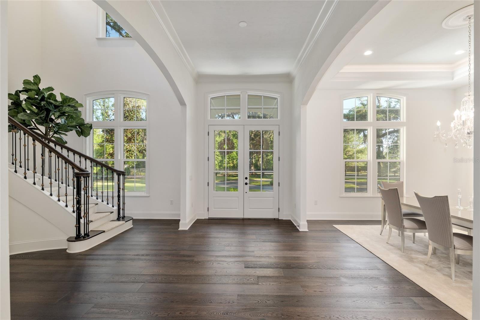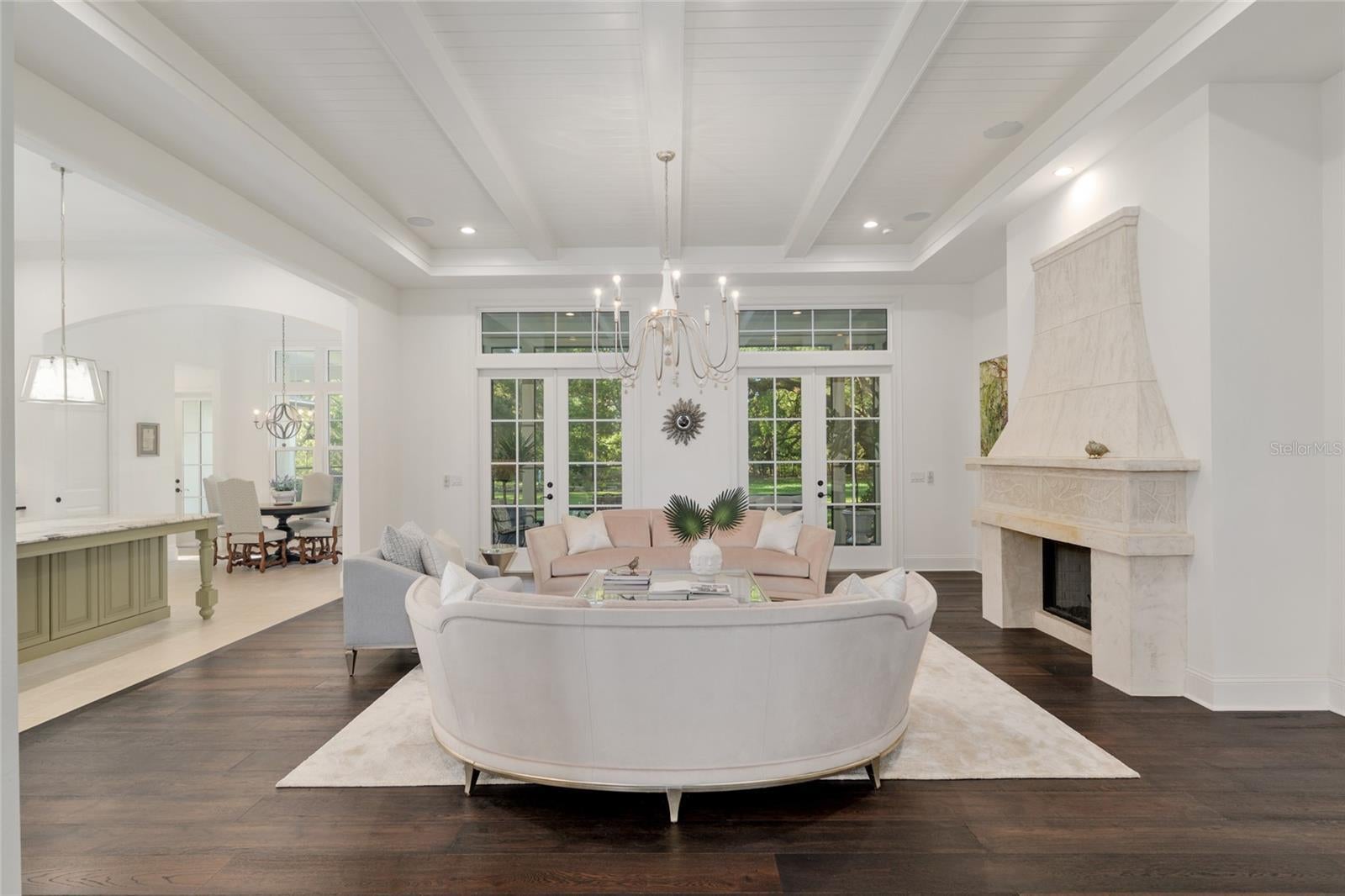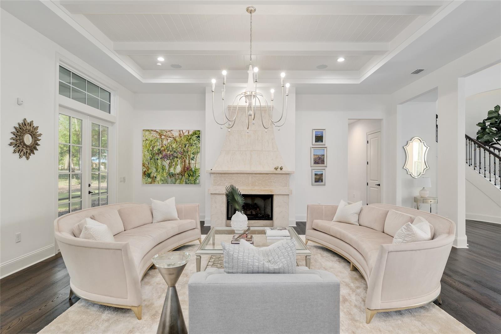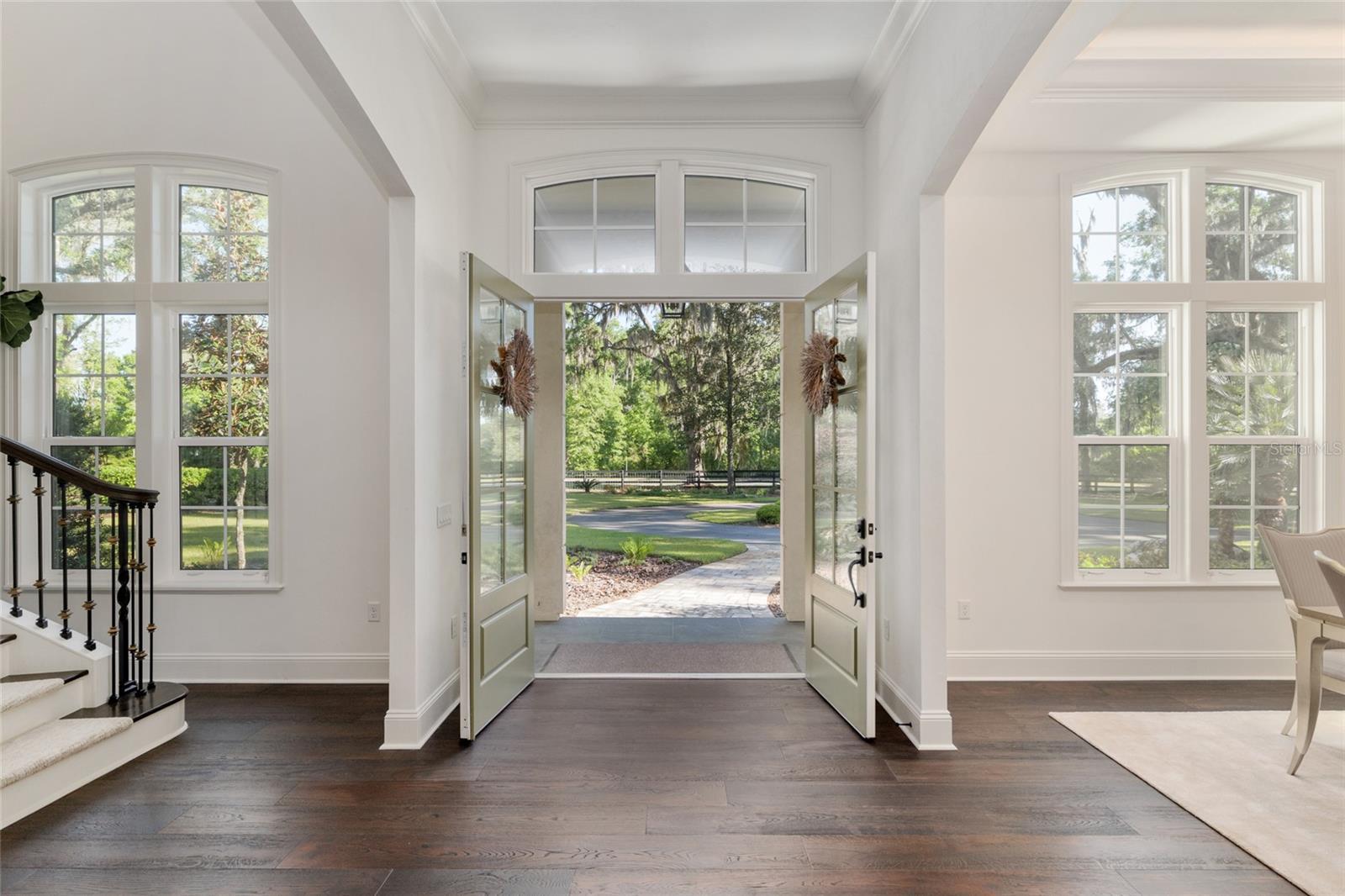 Epitomizing French Country architecture this absolutely stunning, chateau-inspired estate home is situated on a secluded 1.38 acre fully fenced lot with private gate. Exceptionally designed with spectacular finishes inside and out, this Bullard built, breathtaking home spans nearly 4200 SF under air. Featuring 3 bedrooms, 2 separate home offices, a home gym/playroom and 4 full baths, its floor plan flaunts an easy flow for daily living and formal entertaining. The private electric gate opens onto the home’s circular drive for guests, and the owner’s driveway to the left for accessing the split garages: on the left, the 1-car carriage garage, and a 2-car garage on the right. Characterized by its steep pitched gabled roof, tall doors, arched windows, stucco exterior with “ArchusStone” lime rock coating, decorative upper story shutters and twin chimneys, this home embellishes the trademark detail of French Country architecture – symmetry. The double French entry doors open onto the gracious foyer, noted with dark French oak flooring which connects the downstairs living spaces. To the left is formal dining room. To the right is the radius staircase. The family room has a tray tongue-n-groove ceiling accented with white beams, and two sets of French doors that open onto the screened lanai offering direct views of the private rear yard and trees beyond. The fireplace hood is similar in style to the kitchen custom vent exhaust hood. The Chef’s kitchen is truly spectacular. Featuring DH custom crafted cabinets topped with quartzite counters, no expense was spared. Appliances include a 48” sub-zero refrigerator with matching front cabinet panels, a 48” Wolf duel fuel range, a warming drawer and a microwave drawer. Between the kitchen and the breakfast nook is a walk-in pantry with wood shelving. Off the nook is the day foyer with stop-n-drop zone, and a French door that connects the breezeway for covered access to the 350 SF 1-car carriage garage. Opposite the nook side of the kitchen is the separate drop zone room with a coat closet, add’l cabinetry and shelving for storage, and direct access to the attached 675 SF 2-car garage. Past the drop zone is the scullery, and one of the prettiest overflow kitchens you will see, complete with wine cooler, sink with disposal, and 3 wine drawers. Next to the staircase is the master wing of the home complete with separate office with gas fireplace, custom built-ins, and a coffered ceiling; a guest hallway bath with shower, a proper-sized laundry room, and the master suite. The master spa bath has dual vanities, a slipper tub, 2 fit-and-finish organizational system walk-in closets, and a closet pocket door to directly access the laundry room. Upstairs are the two en suite guest bedrooms, the second home office space, and a separate gym/playroom. The 516 SF screened lanai spans nearly the width of the home, and has a summer kitchen with grill hood and prep sink. The list of luxury attributes and custom details is lengthy: custom drapery, Plantation shutters, Quartzite and granite counters, several interior storage closets, solid core doors for all bedrooms, baths, and pocket doors, 2 gas fireplaces, a Cummins generator, landscape lighting, a 2023 H2O filtration system, 2 gas tankless water heaters, a 3-zone HVAC system, epoxy finished garage floors, post-tension slab, Icynene insulation, R13 blown cellulous wall insulation and security system with surveillance cameras. Clay Electric for utilities. No HOA.