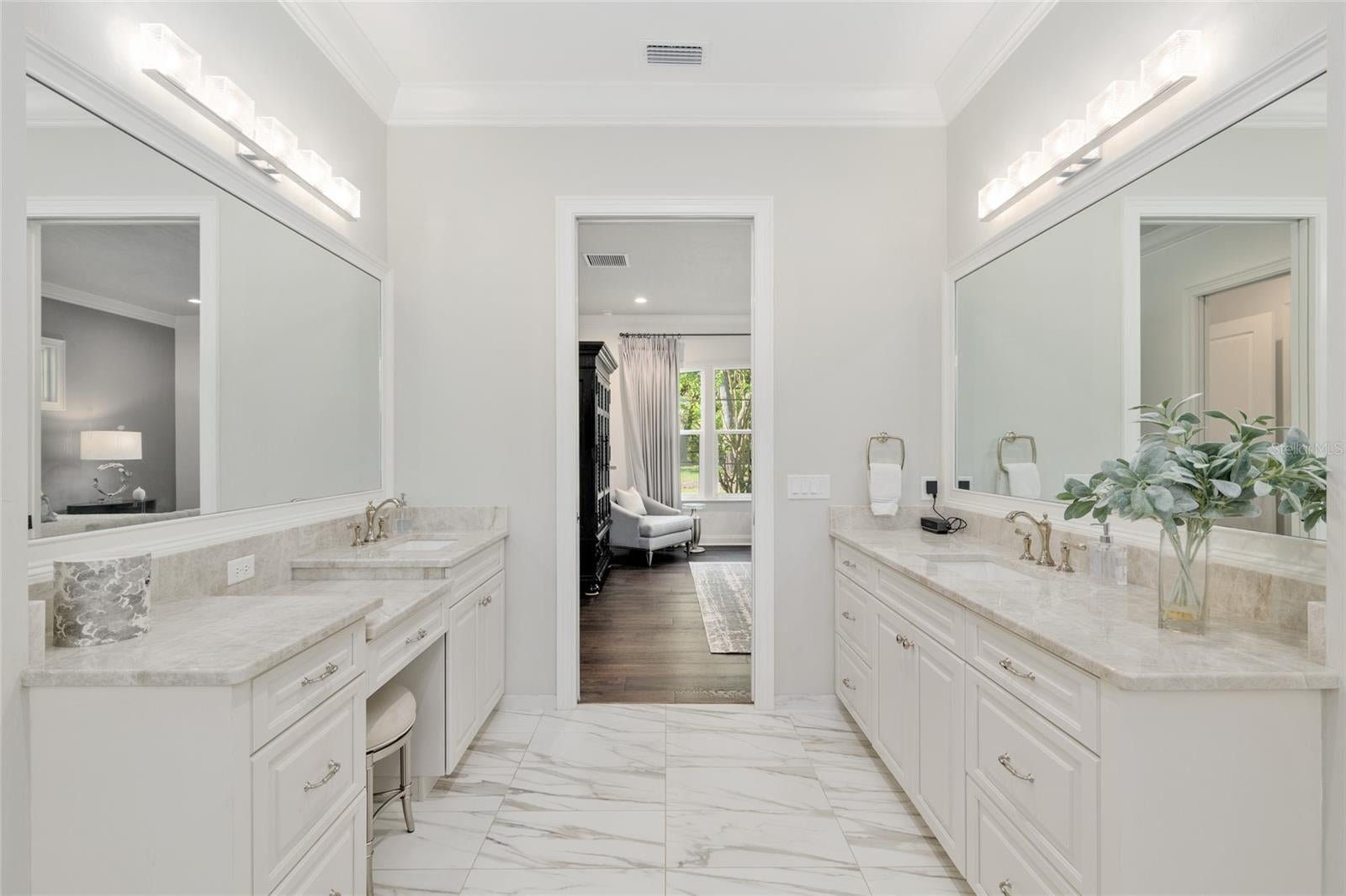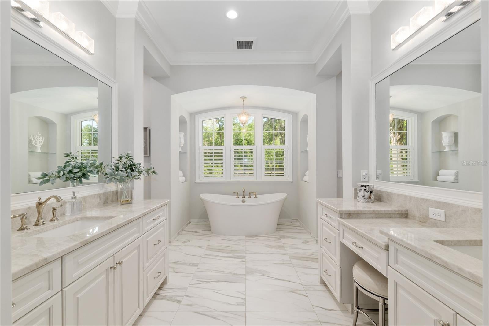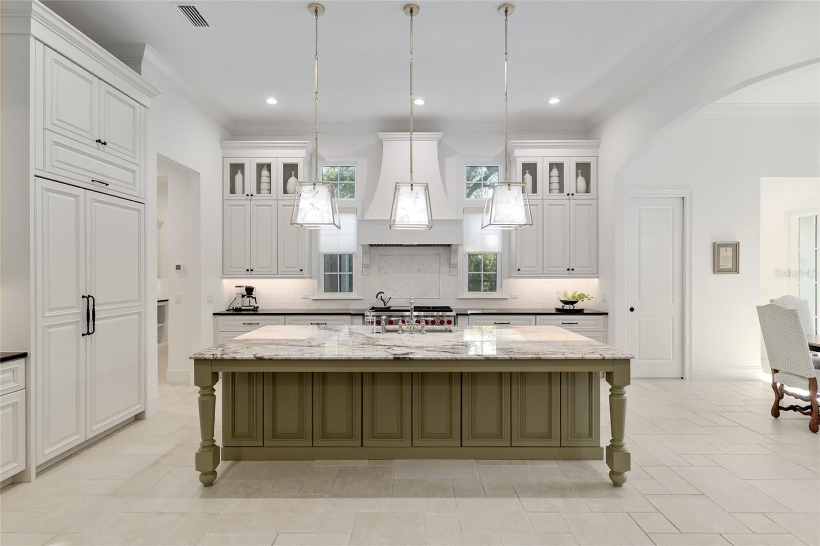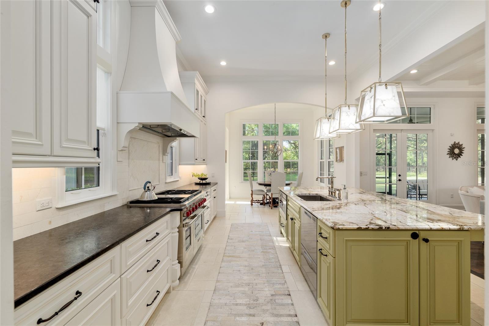 Epitomizing French Country architecture this absolutely stunning, chateau-inspired estate home is situated on a secluded 1.38 acre fully fenced lot with private gate. Exceptionally designed with spectacular finishes inside and out, this Bullard built, breathtaking home spans nearly 4200 SF under air. Featuring 3 bedrooms, 2 separate home offices, a home gym/playroom and 4 full baths, its floor plan flaunts an easy flow for daily living and formal entertaining. The private electric gate opens onto the home’s circular drive for guests, and the owner’s driveway to the left for accessing the split garages: on the left, the 1-car carriage garage, and a 2-car garage on the right. Characterized by its steep pitched gabled roof, tall doors, arched windows, stucco exterior with “ArchusStone” lime rock coating, decorative upper story shutters and twin chimneys, this home embellishes the trademark detail of French Country architecture – symmetry. The double French entry doors open onto the gracious foyer, noted with dark French oak flooring which connects the downstairs living spaces. To the left is formal dining room. To the right is the radius staircase. The family room has a tray tongue-n-groove ceiling accented with white beams, and two sets of French doors that open onto the screened lanai offering direct views of the private rear yard and trees beyond. The fireplace hood is similar in style to the kitchen custom vent exhaust hood. The Chef’s kitchen is truly spectacular. Featuring DH custom crafted cabinets topped with quartzite counters, no expense was spared. Appliances include a 48” sub-zero refrigerator with matching front cabinet panels, a 48” Wolf duel fuel range, a warming drawer and a microwave drawer. Between the kitchen and the breakfast nook is a walk-in pantry with wood shelving. Off the nook is the day foyer with stop-n-drop zone, and a French door that connects the breezeway for covered access to the 350 SF 1-car carriage garage. Opposite the nook side of the kitchen is the separate drop zone room with a coat closet, add’l cabinetry and shelving for storage, and direct access to the attached 675 SF 2-car garage. Past the drop zone is the scullery, and one of the prettiest overflow kitchens you will see, complete with wine cooler, sink with disposal, and 3 wine drawers. Next to the staircase is the master wing of the home complete with separate office with gas fireplace, custom built-ins, and a coffered ceiling; a guest hallway bath with shower, a proper-sized laundry room, and the master suite. The master spa bath has dual vanities, a slipper tub, 2 fit-and-finish organizational system walk-in closets, and a closet pocket door to directly access the laundry room. Upstairs are the two en suite guest bedrooms, the second home office space, and a separate gym/playroom. The 516 SF screened lanai spans nearly the width of the home, and has a summer kitchen with grill hood and prep sink. The list of luxury attributes and custom details is lengthy: custom drapery, Plantation shutters, Quartzite and granite counters, several interior storage closets, solid core doors for all bedrooms, baths, and pocket doors, 2 gas fireplaces, a Cummins generator, landscape lighting, a 2023 H2O filtration system, 2 gas tankless water heaters, a 3-zone HVAC system, epoxy finished garage floors, post-tension slab, Icynene insulation, R13 blown cellulous wall insulation and security system with surveillance cameras. Clay Electric for utilities. No HOA.