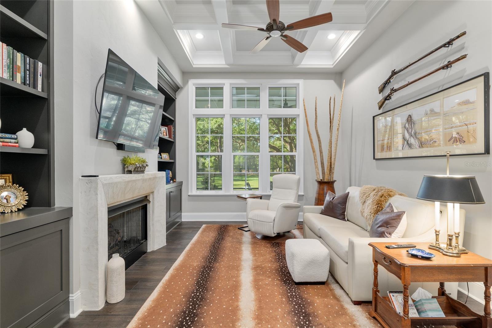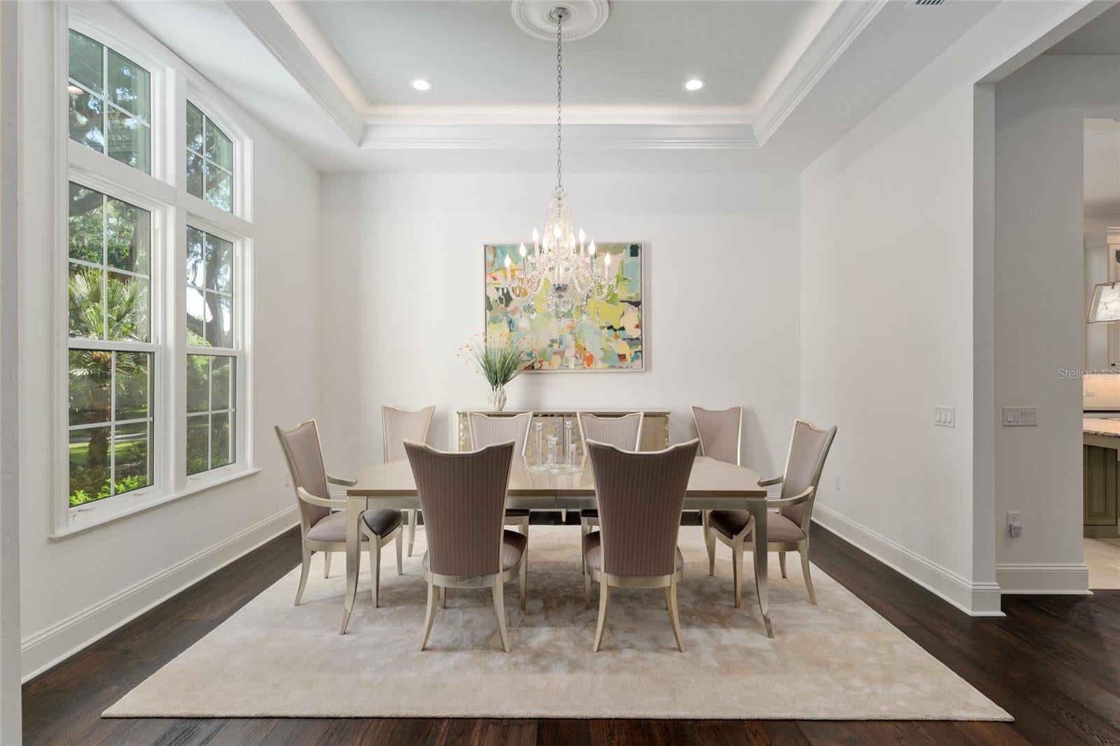- Ceiling Fans(s), Chair Rail, Coffered Ceiling(s), Crown Molding, Eat-in Kitchen, High Ceilings, Primary Bedroom Main Floor, Solid Wood Cabinets, Stone Counters, Tray Ceiling(s), Walk-In Closet(s), Window Treatments