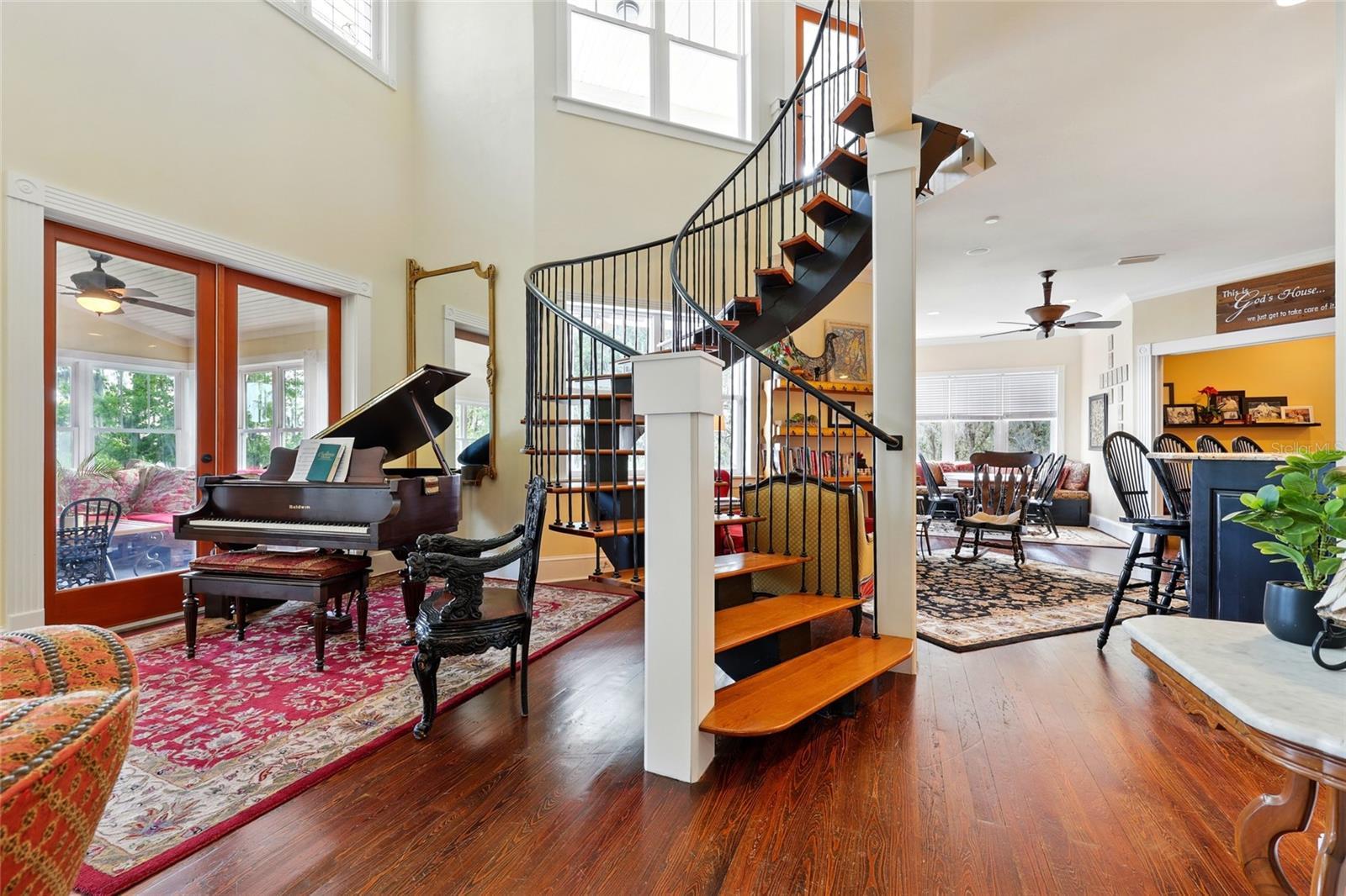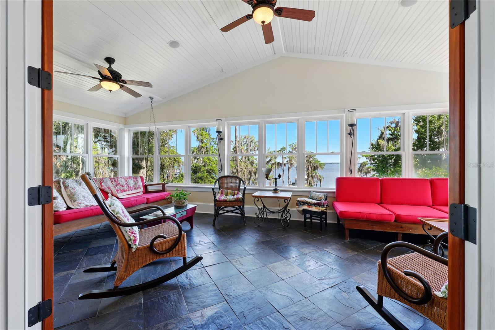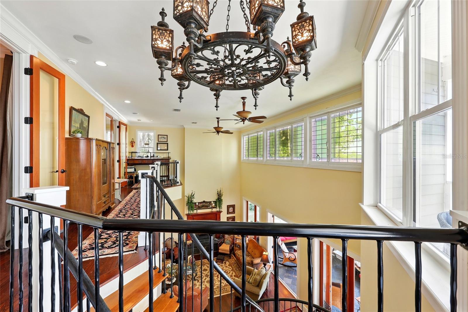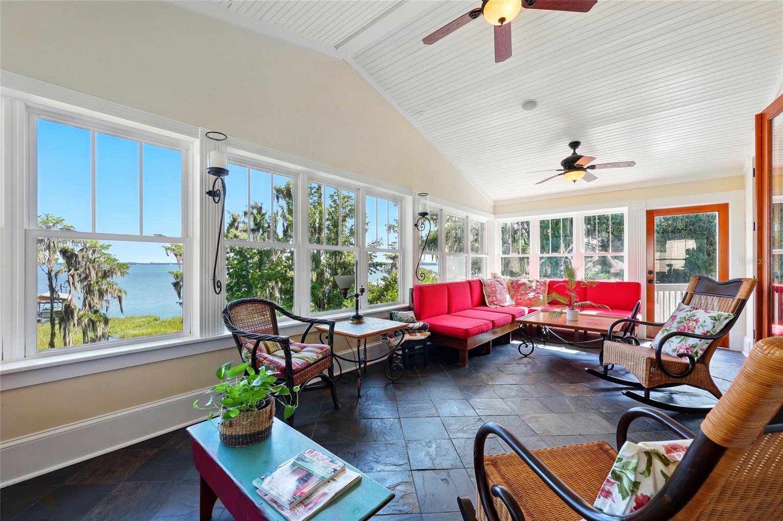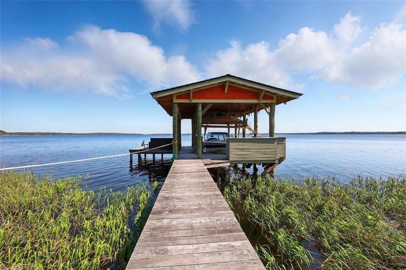 Uniquely perched on a 15 ft bluff above Lake Santa Fe, this expansive custom lakefront estate offers a grand scale and timeless elegance, perfect for those seeking a luxurious retreat. The heart of the home is its open kitchen, designed for effortless entertaining, flowing seamlessly into a spacious living area with room for a grand piano and dining space, all framed by 2 story ceilings that amplify the sense of grandeur. Almost every room captures stunning lake views, immersing you in the serene beauty of the surroundings. A dramatic custom steel circular staircase with oak treads milled from the property is designed to preserve the breathtaking vistas and add an artistic touch. The primary suite, nestled on the third floor nearly 40 ft above the lake, is a true sanctuary of luxury and tranquility. It opens to a private porch where you can savor morning coffee or evening wine while gazing out over the shimmering lake—a perfect spot for quiet reflection. Adjacent to the suite, a cozy keeper room offers a private retreat for reading or relaxation, bathed in natural light and lake views. The primary bathroom elevates the experience with a spacious, curbless walk-in shower designed for seamless accessibility, a corner soaking tub ideal for unwinding after a day on the water, and a custom double vanity that adds a touch of elegance to your daily routine. For the young or young-at-heart, a secret children’s room offers a magical hideaway, accessible only through a wardrobe, evoking a sense of wonder. Inside, 4 children’s bunk beds create a cozy retreat for sleepovers or imaginative play, making this space a delightful surprise for families. This home is built for versatility and comfort, with porches on all four floors, each offering a unique perspective of the lake’s shimmering waters—perfect for morning coffees or evening gatherings. The elevator accesses all four floors including the full-size attic, featuring 8 ft ceilings, making the home fully accessible for all. The attic is plumbed for an additional bathroom and offers ample space to create more bedrooms, making it ideal for growing families or guests. The first floor is a self-sufficient 2-bedroom apartment, complete with its own kitchen and living areas, operating independently from the main house for ultimate flexibility. Step outside to the lakefront, where a gentle beach entry offers an easy walk-in swimming area, perfect for family fun or a refreshing dip. The ipe wood dock extends into the lake, featuring a boat lift for your watercraft and boasting over 10 ft of water depth at its end—ideal for boating enthusiasts. The sunsets here are magical, painting the sky in vibrant hues as you unwind. This home is truly unlike any other and must be seen in person to experience all it has to offer.