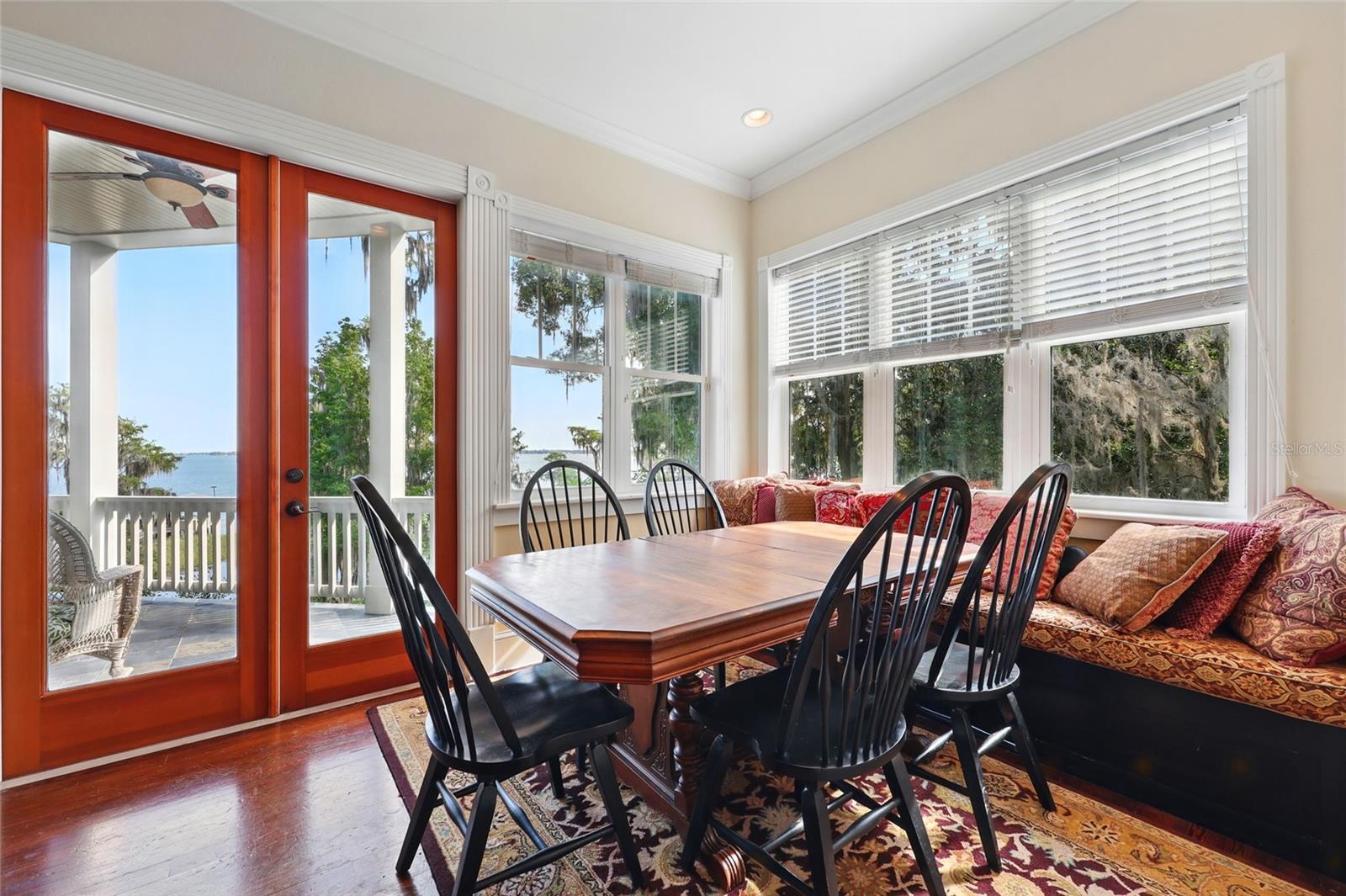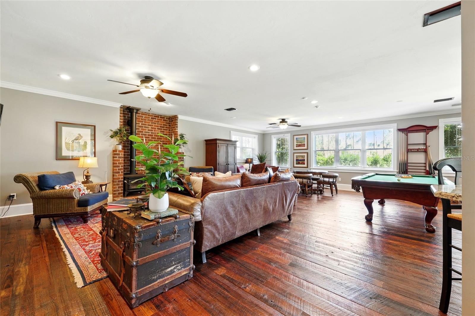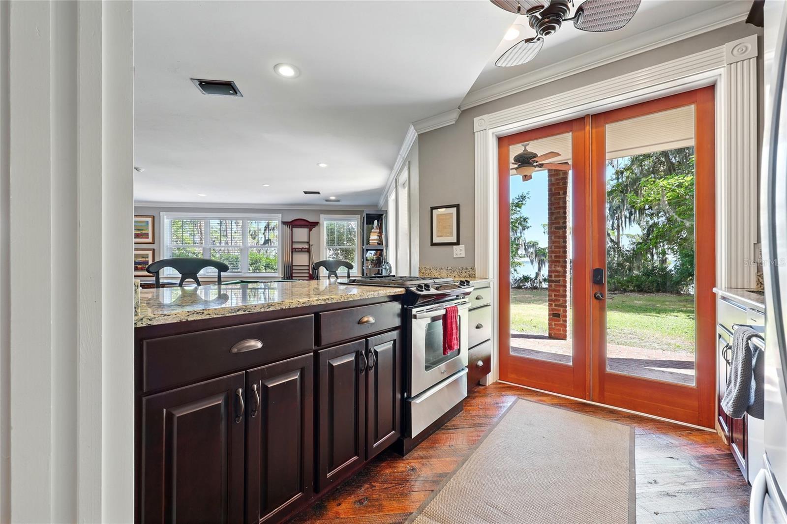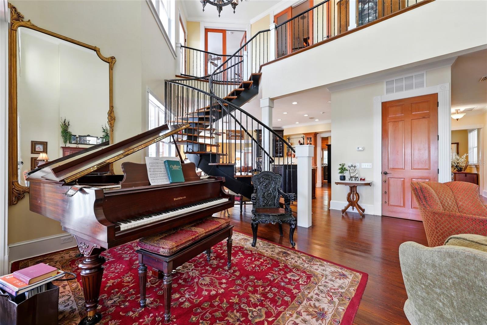 Uniquely perched on a 15 ft bluff above Lake Santa Fe, this expansive custom lakefront estate offers a grand scale and timeless elegance, perfect for those seeking a luxurious retreat. The heart of the home is its open kitchen, designed for effortless entertaining, flowing seamlessly into a spacious living area with room for a grand piano and dining space, all framed by 2 story ceilings that amplify the sense of grandeur. Almost every room captures stunning lake views, immersing you in the serene beauty of the surroundings. A dramatic custom steel circular staircase with oak treads milled from the property is designed to preserve the breathtaking vistas and add an artistic touch. The primary suite, nestled on the third floor nearly 40 ft above the lake, is a true sanctuary of luxury and tranquility. It opens to a private porch where you can savor morning coffee or evening wine while gazing out over the shimmering lake—a perfect spot for quiet reflection. Adjacent to the suite, a cozy keeper room offers a private retreat for reading or relaxation, bathed in natural light and lake views. The primary bathroom elevates the experience with a spacious, curbless walk-in shower designed for seamless accessibility, a corner soaking tub ideal for unwinding after a day on the water, and a custom double vanity that adds a touch of elegance to your daily routine. For the young or young-at-heart, a secret children’s room offers a magical hideaway, accessible only through a wardrobe, evoking a sense of wonder. Inside, 4 children’s bunk beds create a cozy retreat for sleepovers or imaginative play, making this space a delightful surprise for families. This home is built for versatility and comfort, with porches on all four floors, each offering a unique perspective of the lake’s shimmering waters—perfect for morning coffees or evening gatherings. The elevator accesses all four floors including the full-size attic, featuring 8 ft ceilings, making the home fully accessible for all. The attic is plumbed for an additional bathroom and offers ample space to create more bedrooms, making it ideal for growing families or guests. The first floor is a self-sufficient 2-bedroom apartment, complete with its own kitchen and living areas, operating independently from the main house for ultimate flexibility. Step outside to the lakefront, where a gentle beach entry offers an easy walk-in swimming area, perfect for family fun or a refreshing dip. The ipe wood dock extends into the lake, featuring a boat lift for your watercraft and boasting over 10 ft of water depth at its end—ideal for boating enthusiasts. The sunsets here are magical, painting the sky in vibrant hues as you unwind. This home is truly unlike any other and must be seen in person to experience all it has to offer.