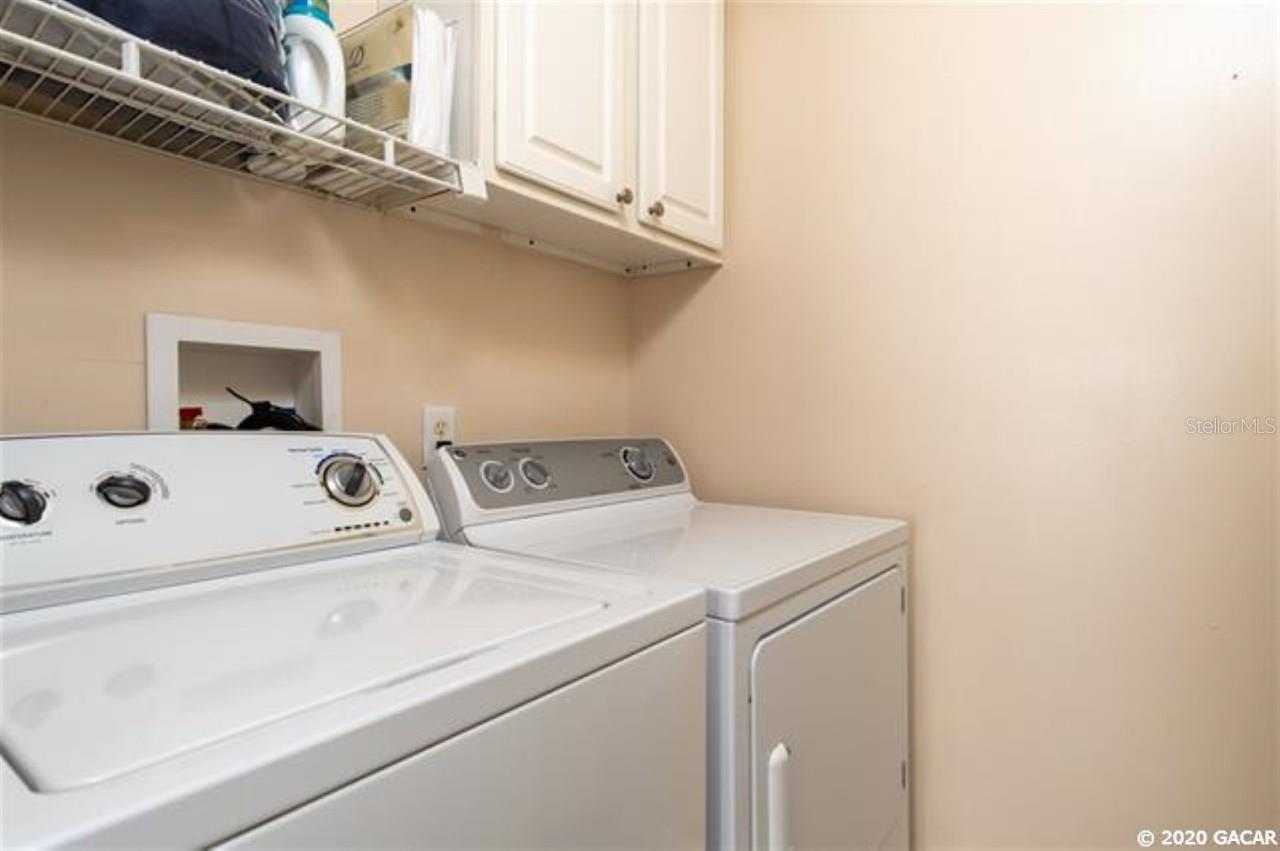 READY TO MOVE IN! This well-maintained 2-bedroom, 2-bathroom second-floor unit offers 800 square feet of comfortable and functional living space with an open floorplan that enhances flow and flexibility. The interior features low-maintenance laminate flooring throughout, creating a clean, modern feel. The kitchen is equipped with updated appliances, wood cabinetry, and a convenient breakfast bar that opens to the living area—perfect for everyday living and entertaining. Each bedroom includes its own private full bathroom, providing ideal privacy for roommates or guests. Large windows bring in an abundance of natural light, enhancing the bright, open layout. The unit also includes a laundry room with a washer and dryer, offering added convenience. Step outside to a spacious porch area—great for relaxing or enjoying your morning coffee. Enjoy access to the community pool, perfect for cooling off on warm Florida days. Located directly across the street from the University of Florida and just minutes from Shands, the VA, Vet School, Celebration Pointe, Butler Plaza, Publix, shopping, dining, and on a convenient bus route. This one won’t last—schedule your showing today!