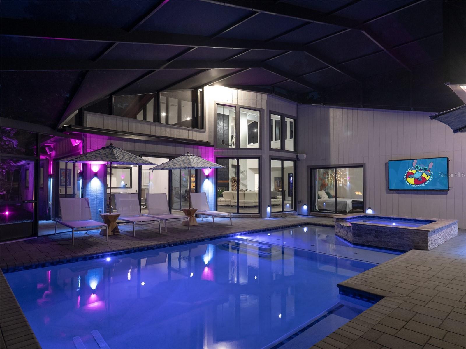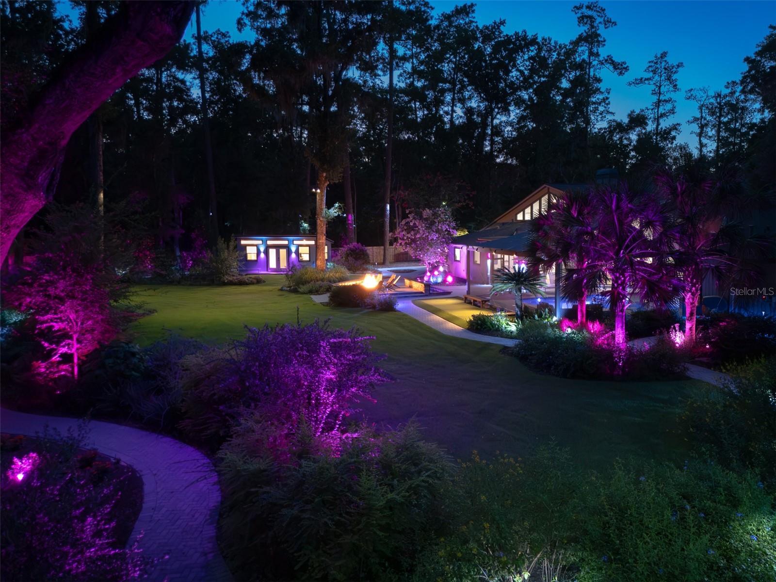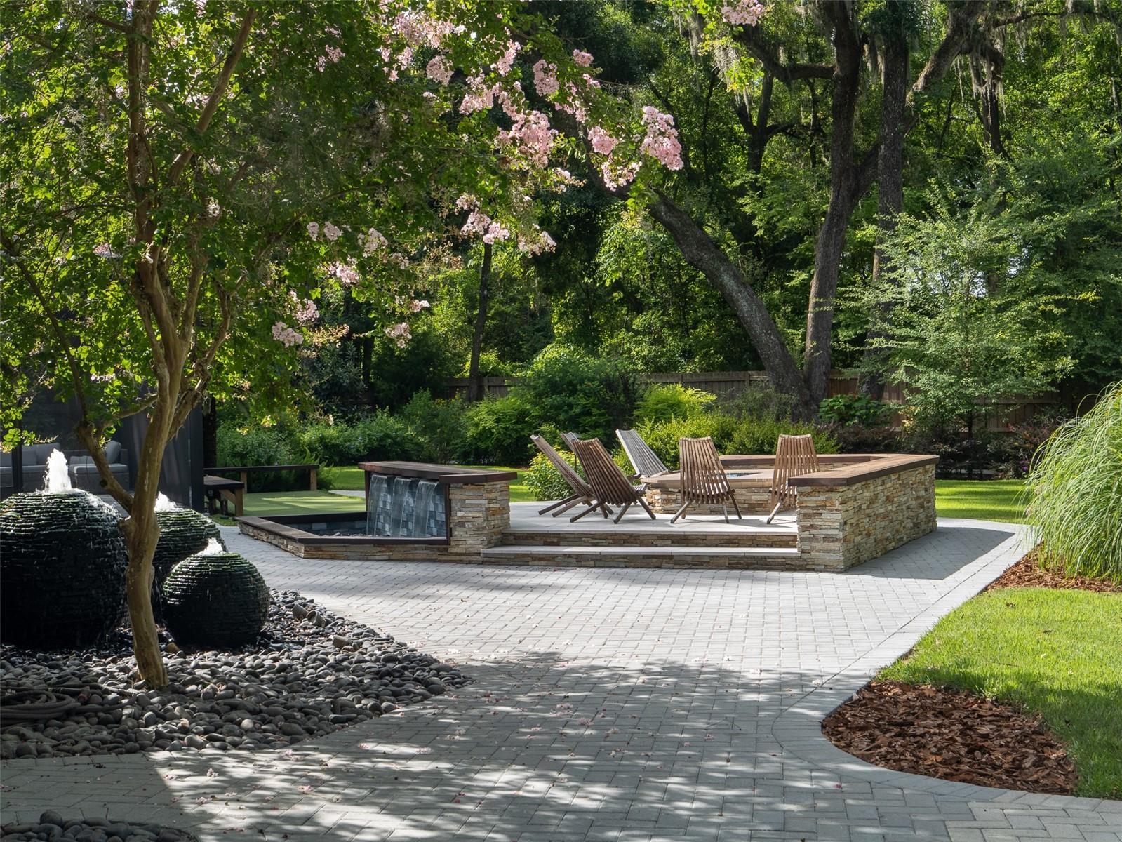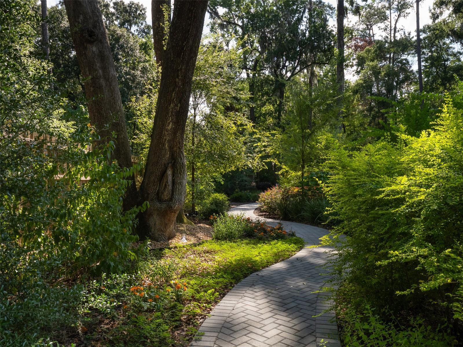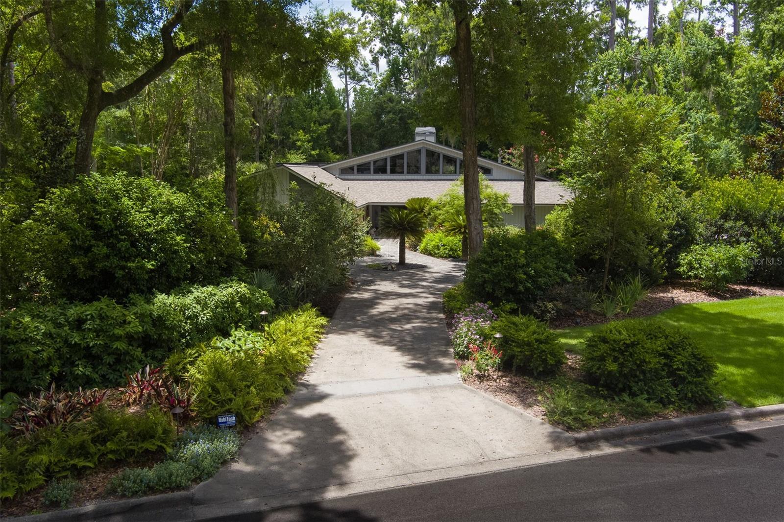 * * * * Spectacular In-town Retreat Near the University of Florida * * * * Nicely situated within the coveted Hermitage neighborhood, this architecturally distinctive residence sits on 1.1 acres of beautifully landscaped grounds, offering an exceptional combination of scale, serenity, and convenience. Meticulously updated, the home seamlessly blends design-forward sophistication with everyday comfort. ~ ~ Through double entry doors, a light-filled interior unfolds with travertine floors, soaring ceilings, and expansive walls of glass that blur the line between indoors and out. The great room—anchored by a dramatic fireplace—flows effortlessly through multiple living and entertaining spaces, including a custom bar with backlit quartzite, all overlooking the newly constructed (2025) resort-style pool and private backyard. ~ ~ The chef’s kitchen is both refined and functional, showcasing dual prep stations, a waterfall-edge island, steam and convection ovens, and sleek custom cabinetry. The tranquil primary suite offers a spa-like oasis with a relaxing soaking tub, oversized walk-in shower, and custom closet. A private secondary wing includes two bedrooms, a shared bath, a flex/media room, and a dedicated gym that could easily become an additional bedroom. ~ ~ Main Home: 4,272 sq ft + Studio Cottage: 288 sq ft // Total: 5,581 sq ft under roof ~ ~ Outdoors, the screened pool area is a true showpiece—featuring elegant water elements, a summer kitchen and grill room, full pool bath, multiple patios, fountains, a striking fire table, and a multi use design putting green. Winding garden paths lead through lush landscaping, fruit trees, and vibrant flowering gardens to the detached 1Bedroom/1Bath studio cottage with kitchenette. ~ ~ Thoughtfully designed exterior lighting creates a soft, elegant glow for daily enjoyment and transforms into a colorful, dynamic display for festive gatherings. Smart home integration and a state-of-the-art security system offer intuitive control of lighting, climate, sound, and surveillance. Additional highlights include energy efficient impact-rated windows, solid concrete block construction, a spacious three-car garage, and additional half bath for evening guests, a spacious laundry room designed for 2 sets of washers/dryers with extensive storage—all just minutes from the University of Florida, top medical centers, premier shopping and dining, recreation and cultural venues that make Gainesville a fantastic place to live, work and play!
