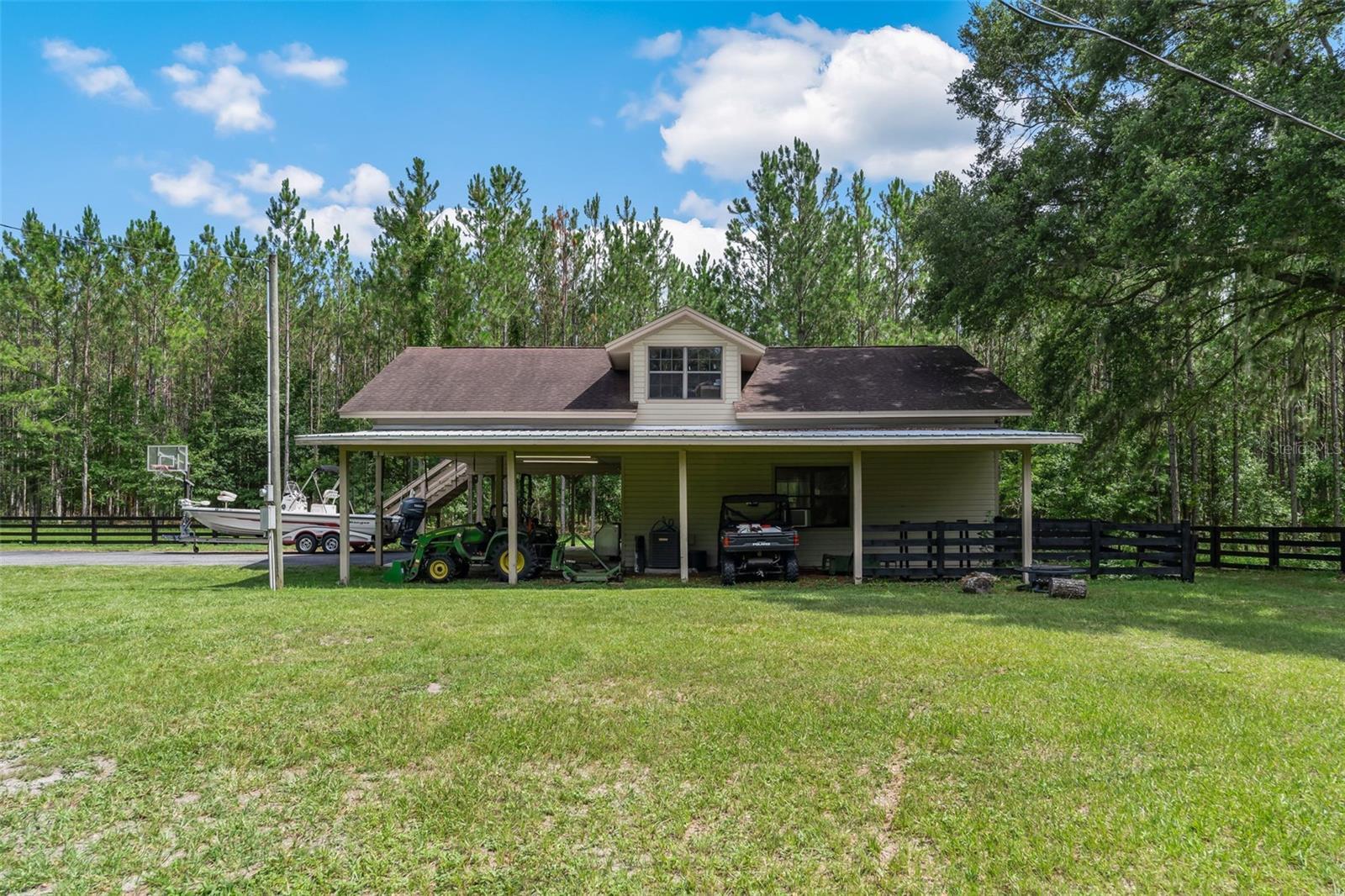 Under contract-accepting backup offers. Under contract-accepting backup offers. If you’re looking for a rural oasis with quick access to city conveniences—welcome home to Wellborn, Florida. Nestled on 40.14 acres, this TURN-KEY 4 BEDROOM, 5.5 BATHROOM LOG CABIN estate is the definition of versatility, charm, and opportunity. Once used as a quail hunting lodge, this GATED PROPERTY offers three primary structures, an IN-GROUND POOL, a FISHING POND WITH DOCK, a WOODED TRAIL NETWORK, and PASTURE PERFECT FOR HORSES OR CATTLE. Recent upgrades mean peace of mind from day one: WINDOWS (2025), POOL PUMP (2024), HVAC (2023), METAL ROOF, EXTERIOR PAINT, and DRAIN FIELD (2019). Step inside the main cabin, where you’ll find FOUR EN-SUITE BEDROOMS, including a spacious primary suite with a LARGE WALK-IN CLOSET and UPDATED BATHROOM. Downstairs, nearly 1,600 SQFT is dedicated to gathering—featuring an open-concept living area, stone fireplace, and a kitchen connected to a REVERSE OSMOSIS SYSTEM for clean, purified water. Love cozy winter nights? The EXTERIOR-FED STEEL FIREWOOD BOX keeps your fireplace roaring—without the mess. For warmer days, relax on the 50-FOOT COVERED PORCH overlooking the pond or fire up the grill by the pool. Need more space? Just steps away, the AUXILIARY BUILDING offers a SECOND KITCHEN, FULL BATHROOM, and massive upstairs flex room—perfect for extra beds, guests, or a private retreat. The balcony view? Ideal for morning coffee or evening stargazing. Bring your horses—they’ll love the 5+ ACRES OF FENCED PASTURE, scenic trails, and shady oaks. Meanwhile, you can tend your garden next to the barn, which is SMARTLY FENCED TO DETER DEER that frequent the land. And here’s where the magic of this property really shines—income potential. You can use it as a wedding or event venue, a vacation rental for outdoor lovers and group retreats, a corporate or wellness getaway, or even revive its roots as a quail hunting lodge. The possibilities are as expansive as the land itself. This property is FENCED, CROSS-FENCED, and includes a FIRE LINE AROUND THE PERIMETER for added safety. Located just minutes from Lake City and with easy access to I-75, you’re only 45 minutes from Gainesville and less than 2 hours from Jacksonville Beach. So don’t walk—run—to see this rare and unforgettable opportunity for recreation, retreat, or revenue. Schedule your showing today!