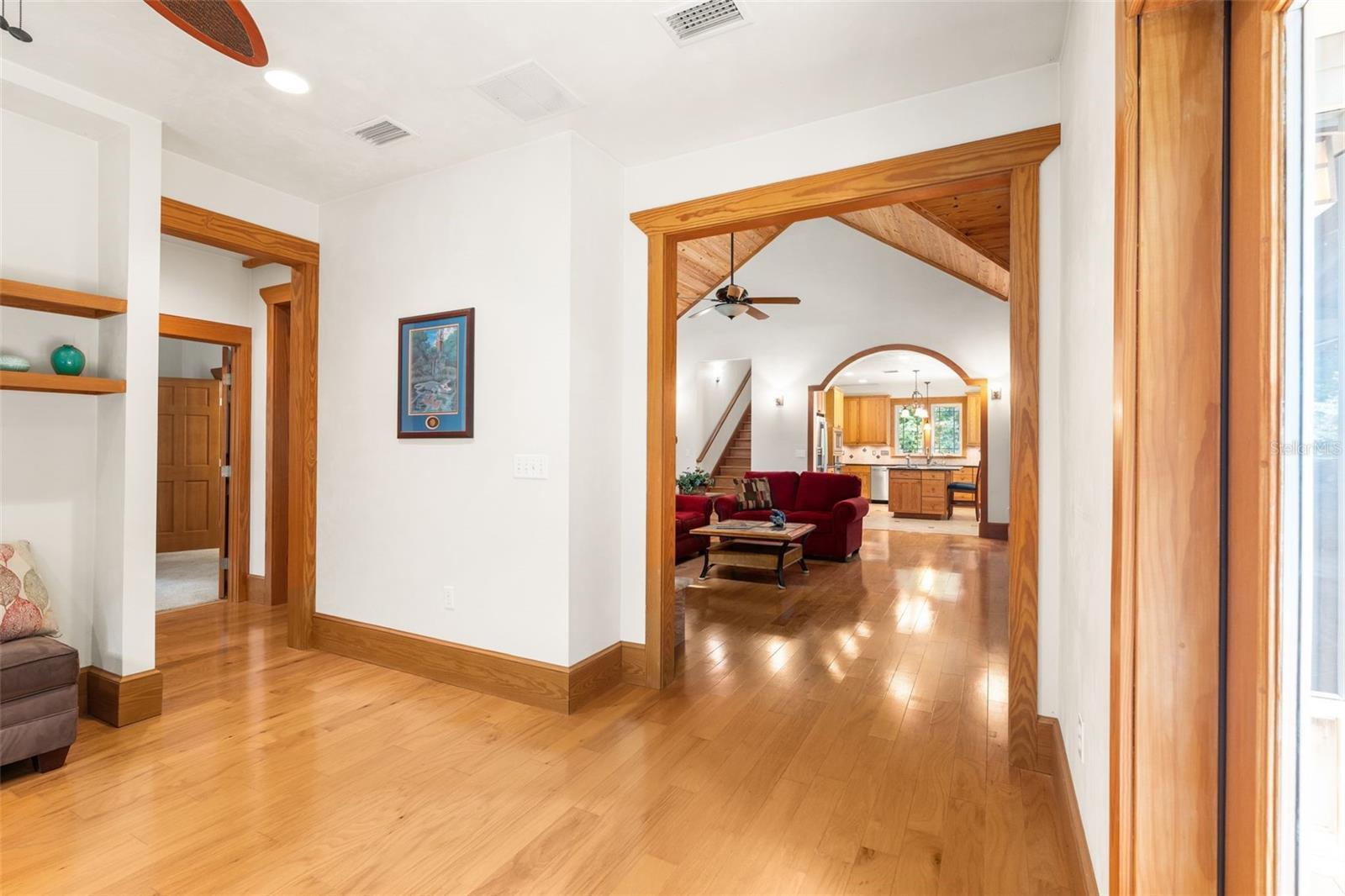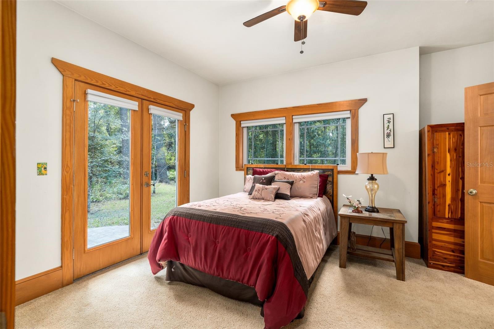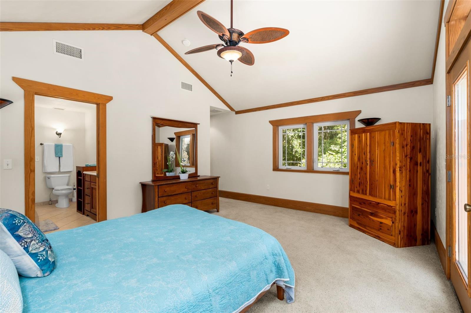 - Attic Ventilator, Ceiling Fans(s), High Ceilings, Pest Guard System, Primary Bedroom Main Floor, PrimaryBedroom Upstairs, Solid Wood Cabinets, Thermostat, Vaulted Ceiling(s), Walk-In Closet(s)