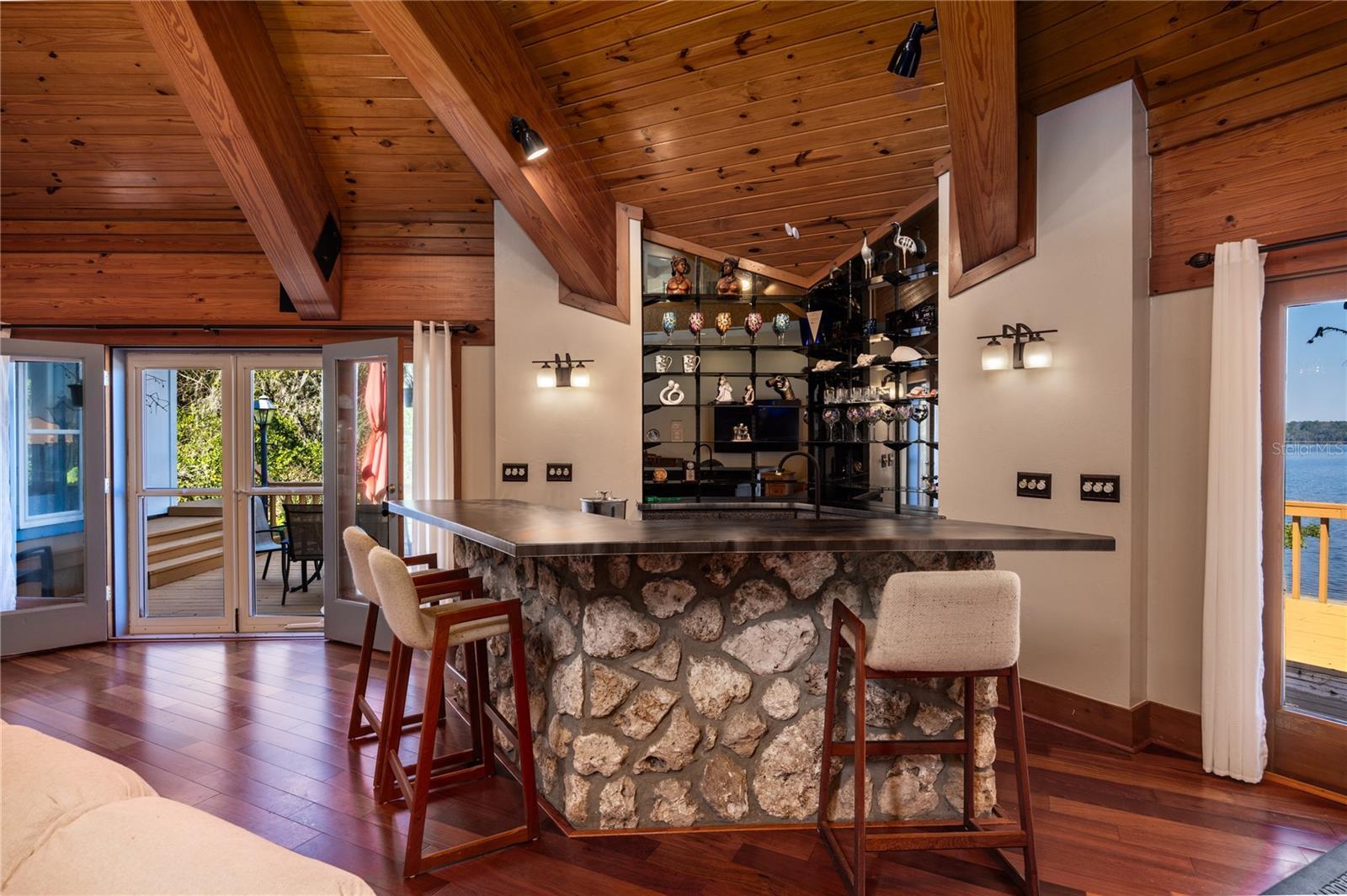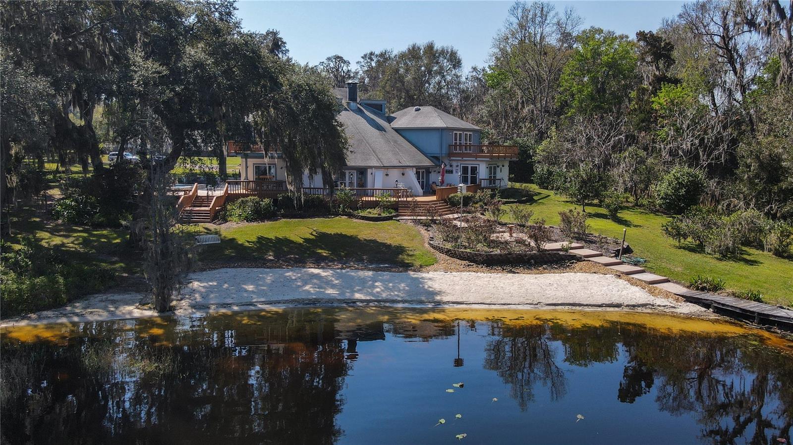 Welcome to your private sanctuary on the shores of Lake Alto, where 330 feet of pristine white-sand frontage meets a masterfully reimagined estate. Nestled on 3+ lush acres of mature oaks and fruit trees, this 4,371 sq. ft. custom home offers a rare sense of seclusion—the perfect balance of rural peace and city convenience. The north & east sides of the lake are conservation lands, known as the Alachua County long-leaf pine preserve, which means no neighbors across the lake, ensuring your sunset views remain untouched forever. Step inside to the soothing sound of the indoor water feature before being drawn into the massive 650 sq. ft. Great Room. With soaring ceilings, a statement stone gas fireplace, and a full wet bar, this space is framed by French doors that lead to a deck spanning the entire length of the home. The chef’s kitchen is a culinary dream, featuring a commercial-grade natural gas stove, double stainless refrigerators, and a cozy breakfast nook overlooking the water. Retreat to the primary wing, a first-floor haven with dual walk-in closets and private deck access. Outside, the "Lake Life" is effortless: take a dip in the 18.5-foot sunken swim spa, or head down the wooden pier to your covered electric boat lift. Only 25 minutes from UF Health/Shands Hospital. Whether you're navigating the canal to Lake Santa Fe or enjoying the quiet serenity of spring-fed Lake Alto, a 575 acre lake with only 28 homes on it, this is more than a home—it’s a legacy property.