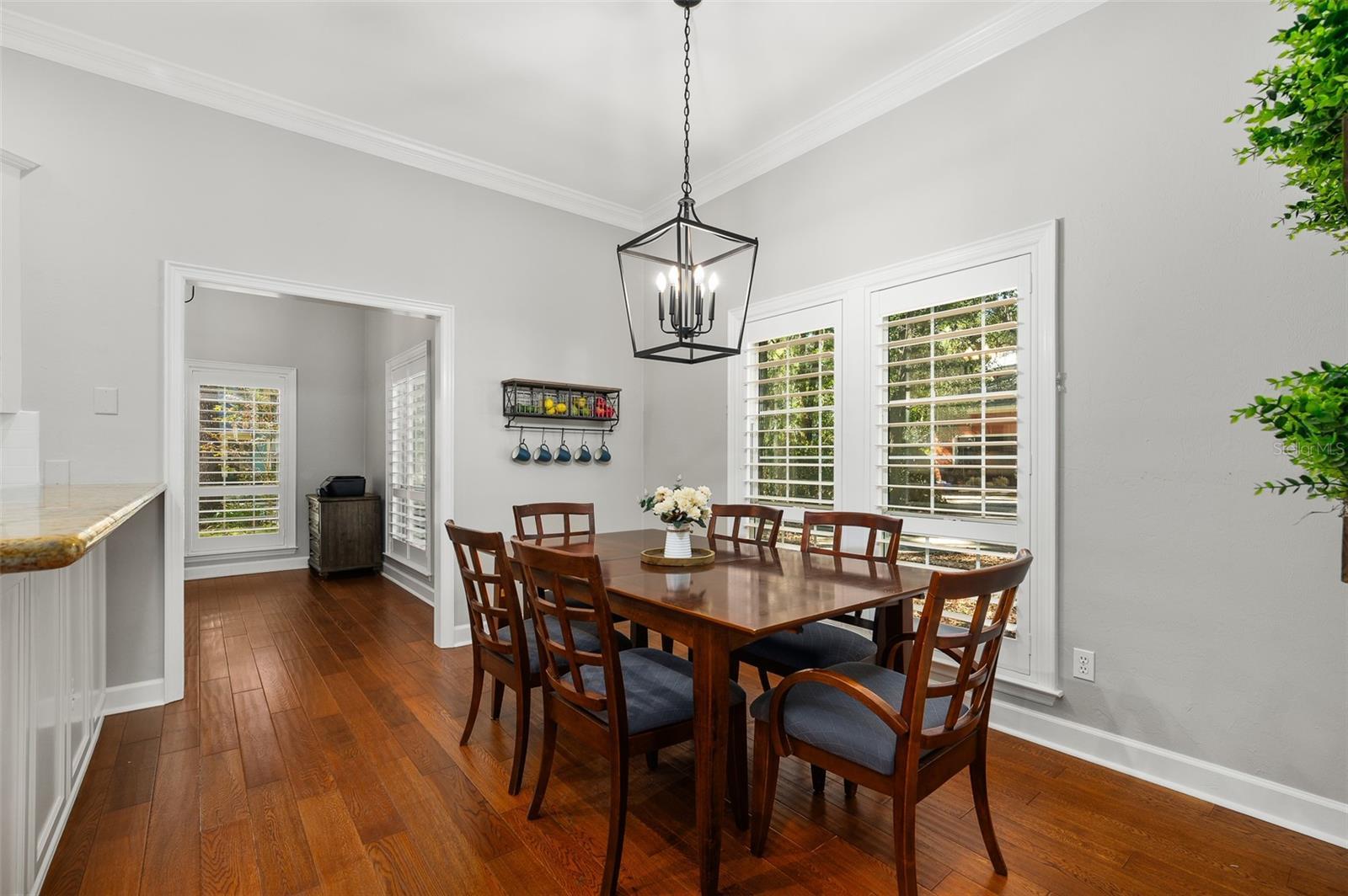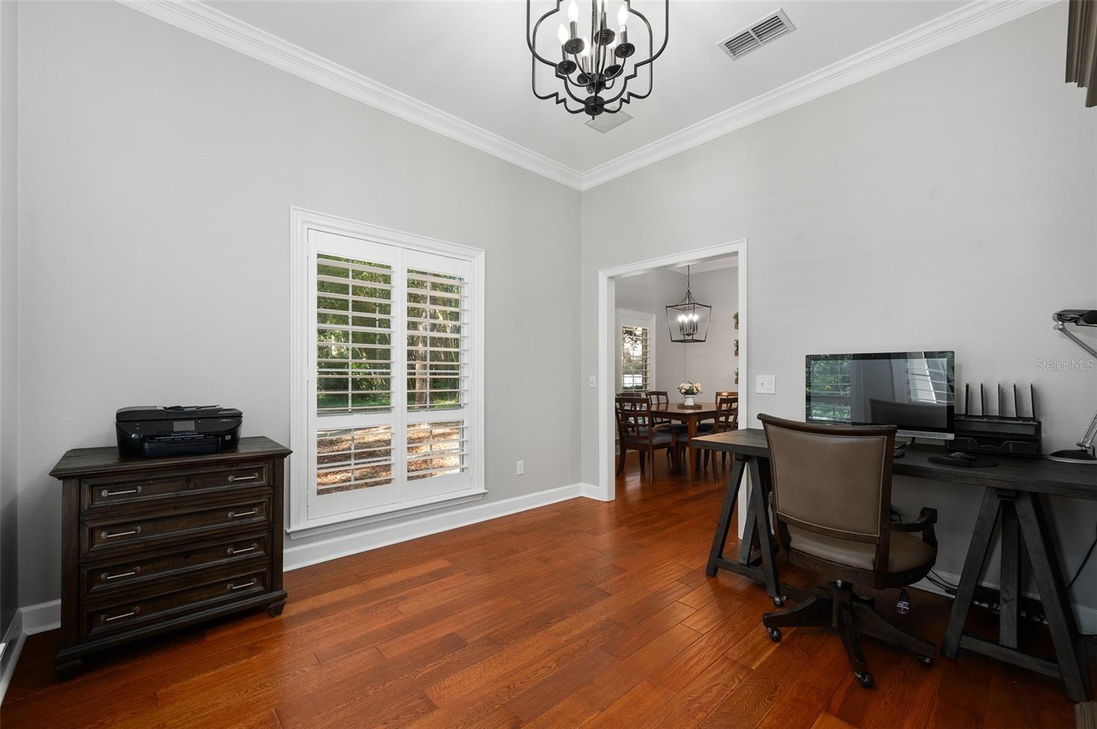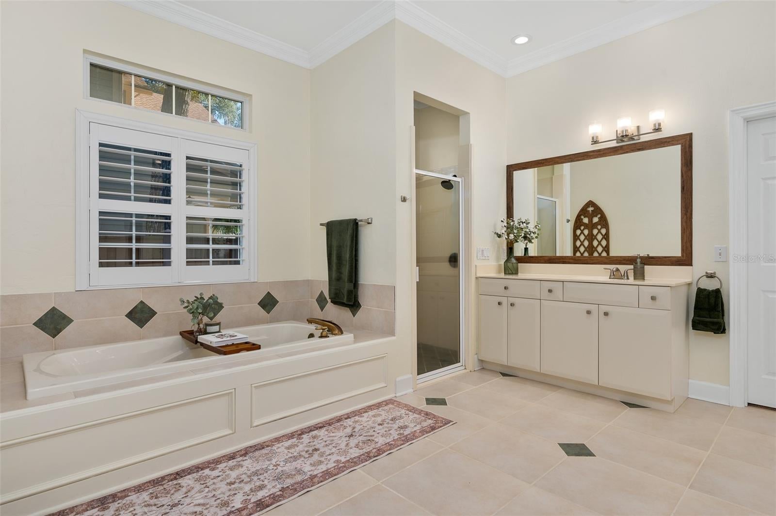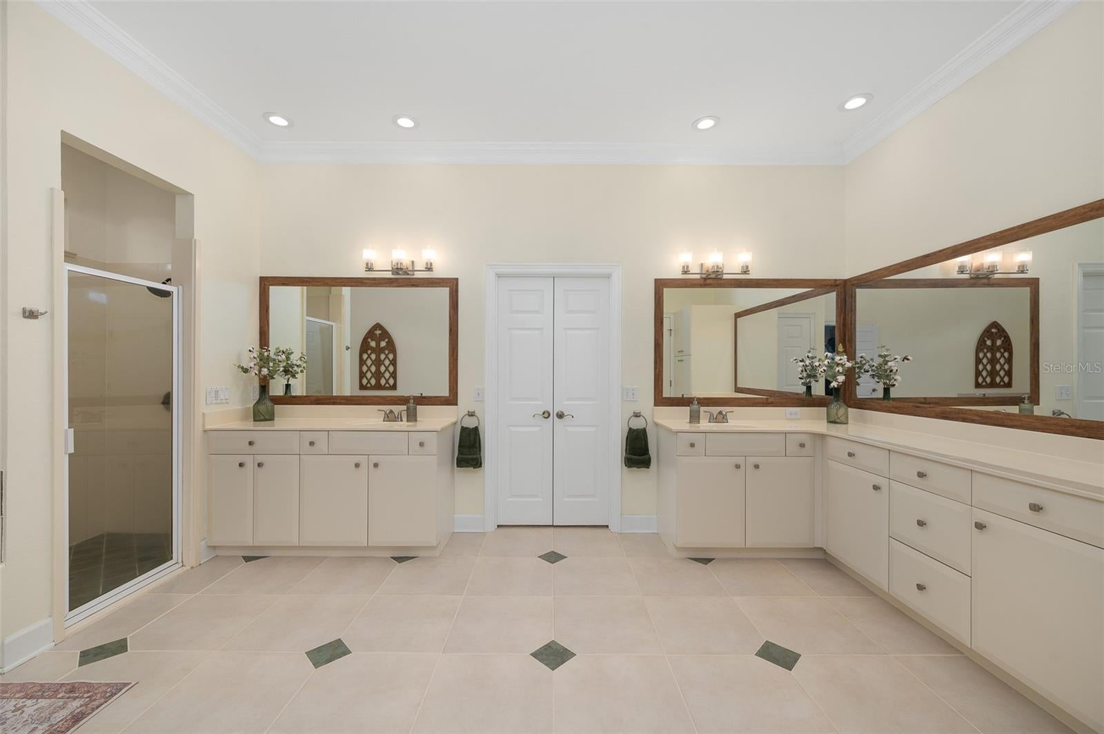 - Built-in Features, Ceiling Fans(s), Crown Molding, Eat-in Kitchen, High Ceilings, Open Floorplan, Primary Bedroom Main Floor, Solid Surface Counters, Solid Wood Cabinets, Split Bedroom, Walk-In Closet(s)