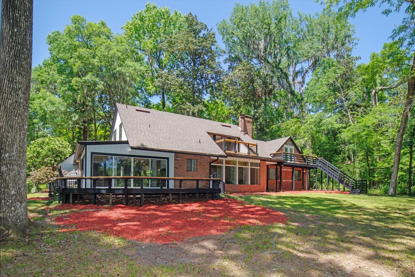Owner may consider owner financing!!! Don't miss this opportunity to own a beautiful lakefront house off Millhopper Road with 5 bedrooms and 3.5 bathrooms. This house is uniquely located on a private lake with a beautiful backyard sloping down to the water. Having two stories, the master bedroom balcony has a scenic view of the lake along with a similar view from the living room, the family room and the rear deck. The open floor plan includes a family room with sliding glass doors, an expansive kitchen, dining room and living room. The oak floors in the common areas provide a warm natural effect with the stunning views of 1.62 acre lot. The upstairs provides a large master bedroom and a private study. The marble, master bathroom floor provides a warm atmosphere for the private shower, a garden tub and a double sink vanity. The master bedroom closet includes custom drawers and storage areas. Downstairs there are three bedrooms with a fourth up a spiral staircase. Come see this unique house with brick exterior and a two car garage. The house has a beautiful double front door, a utility door entrance and a rear entrance for convenience of the owners.