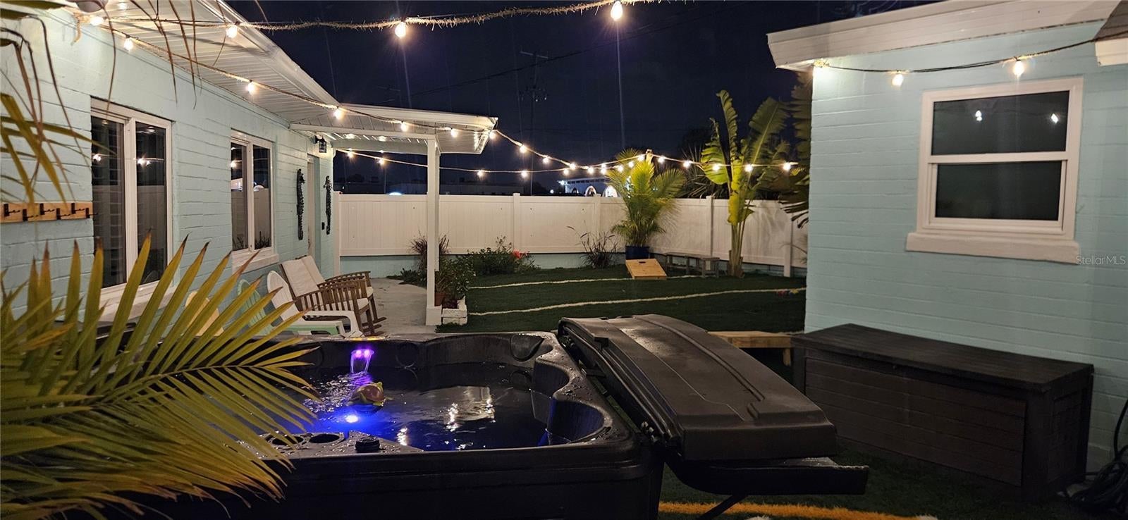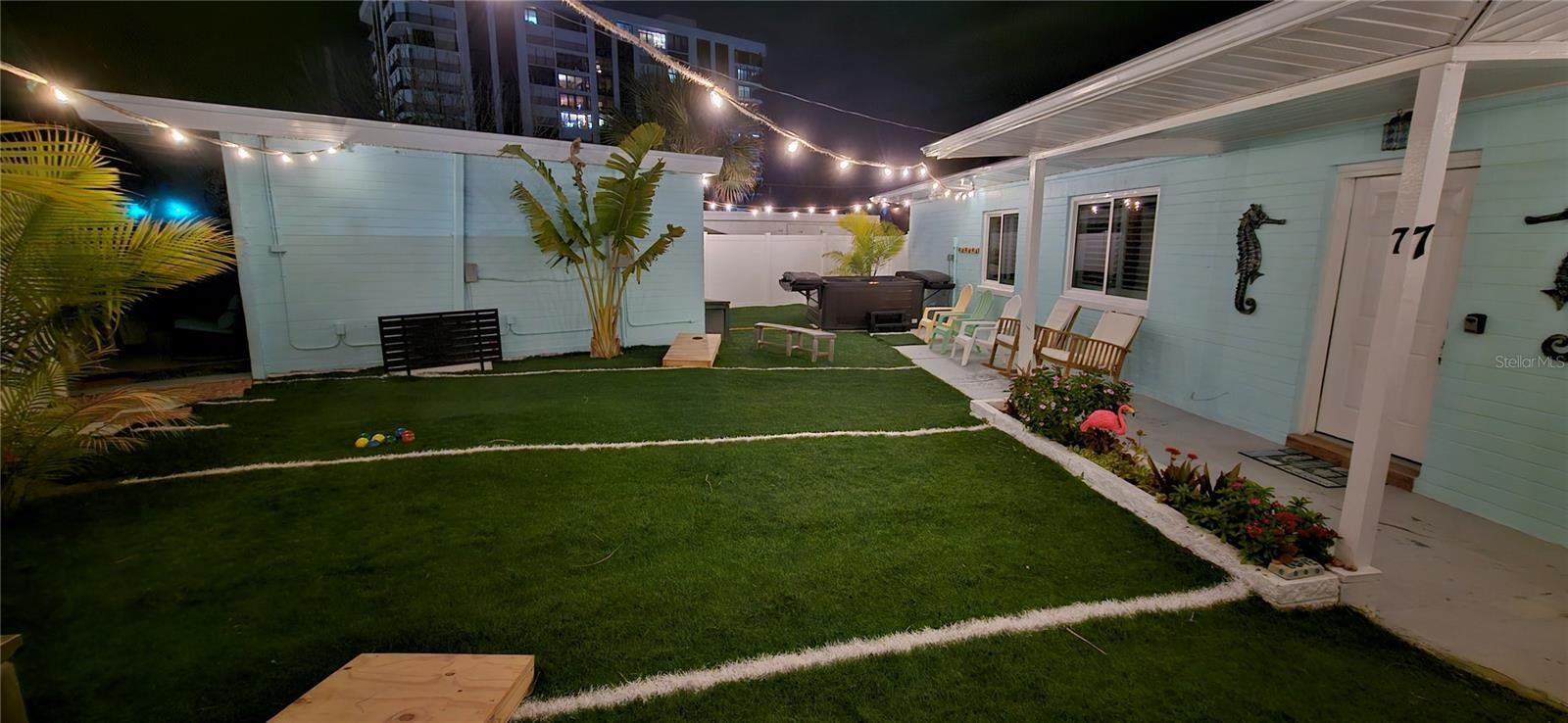 - Fire Pit, Lighting, Other, Outdoor Grill, Outdoor Shower, Private Entrance, Private Mailbox, Private Yard, Rain Gutters, Sliding Doors