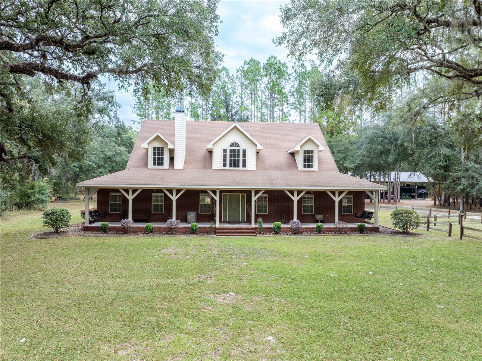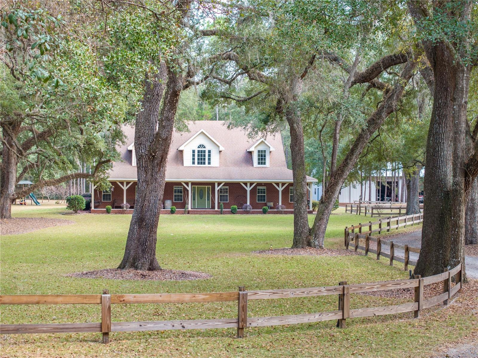 Private Two-Story Brick Home on 20 Wooded Acres with Barn Apartment. Experience peaceful country living in this private two-story, 4 bedroom, 2.5 bath brick home, built in 2007, and situated on 20 mostly wooded acres featuring beautiful mature oak trees and scattered pines. With 3,222 sq ft of living space, this property blends comfort, space, and exceptional privacy in a scenic natural setting. The main level features tile and carpet flooring throughout the primary living areas and a stacked-stone fireplace that creates a warm and inviting focal point. The spacious kitchen is well-appointed with hickory wood cabinetry and a large island with seating, ideal for everyday living and entertaining. All bedrooms feature carpet flooring, providing warmth and comfort. The primary suite includes a well-designed master bathroom with a double vanity and a large walk-in shower, offering both style and functionality. Upstairs, the home offers a versatile layout with a living area, sleeping area, and a large bonus room suitable for a storage room, workout space, game room or additional flex area. The utility room includes an additional shower, adding extra convenience. Outdoor living is enhanced by large front and back porches, perfect for relaxing and enjoying the surrounding wooded views. The home also includes an attached 3-car concrete carport for covered parking. A six-zone irrigation system services the area around the home and property, supporting easy landscape maintenance and gardens. Adding exceptional value, the property features a 40×80 metal barn with a fully equipped one-bedroom, one-bath apartment complete with a full kitchen and living room, ideal for guests, extended family. A covered pole-line structure provides abundant space to park campers, boats, tractors, equipment, and other vehicles. With expansive acreage, mature trees, quality construction, and unmatched versatility, this private country estate presents a rare opportunity for comfortable living, recreation, or multi-generational use.