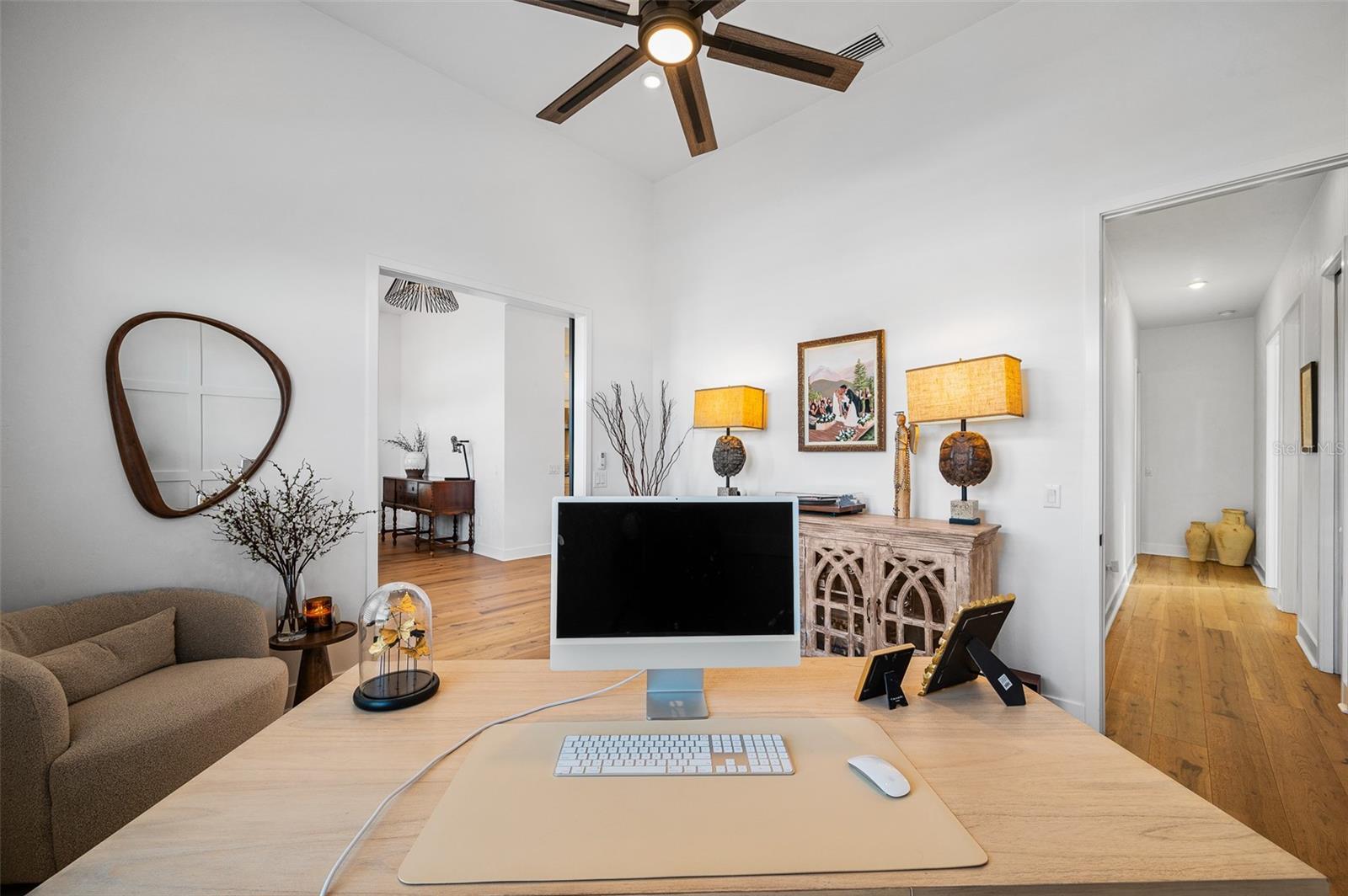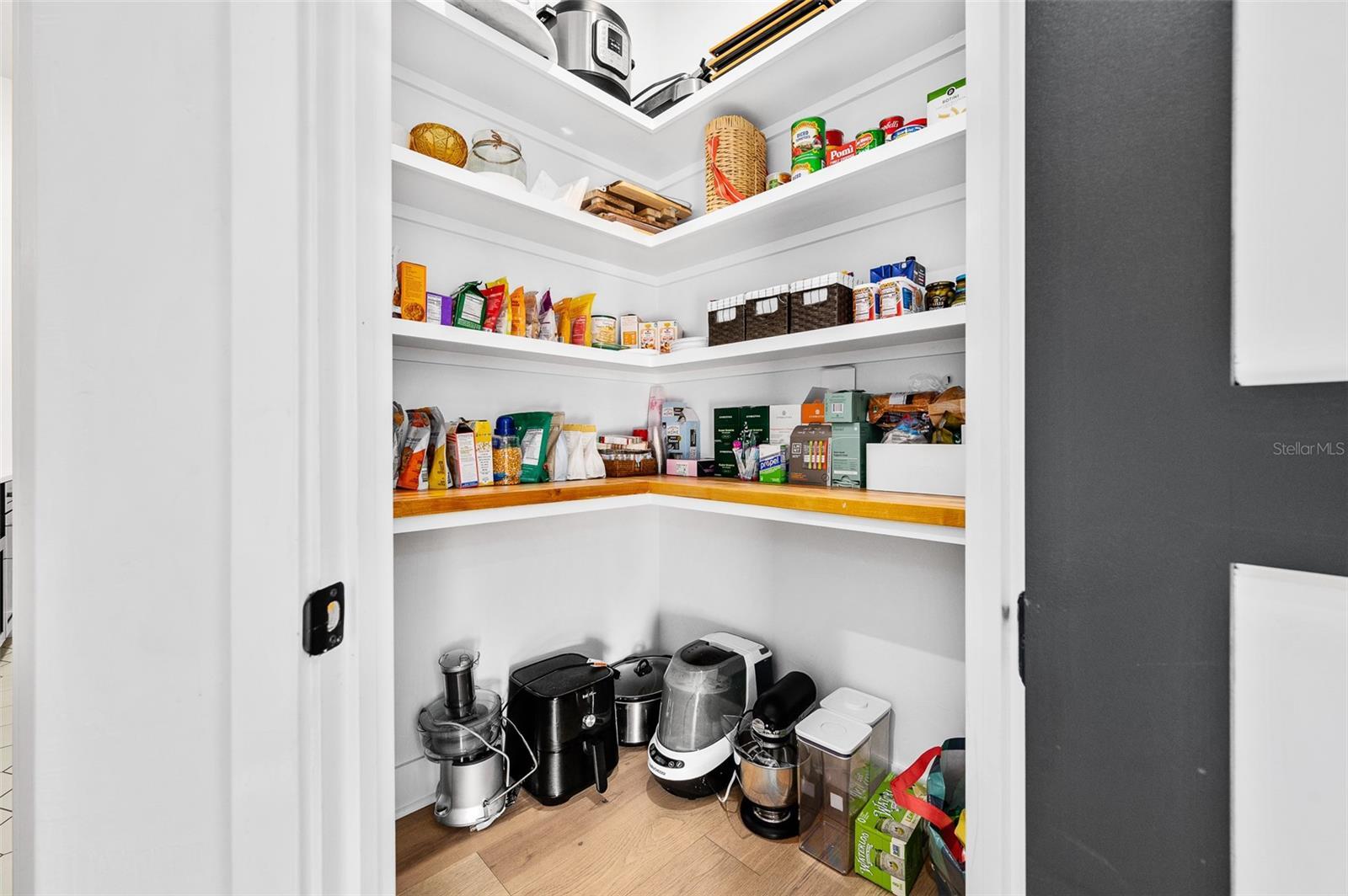 Under contract-accepting backup offers. Nestled on a prime corner lot in Gloria's Way, this 3 Bedroom PLUS Study (could be 4th BR) POOL HOME was formerly the builder’s personal home. It offers an exquisite blend of architectural sophistication and resort-style living. The open-concept interior is defined by soaring 13-foot ceilings, stepped tray details, upgraded features throughout, modern design with painted stone and open shelving accents and rich hickory hardwood floors. At the heart of the home, the chef’s kitchen is a masterpiece featuring floor-to-ceiling cabinetry, quartz counters, Scotsman built in ice machine, and professional-grade KitchenAid appliances, complemented by a custom bar with a Thor beverage center and a walk-in pantry with butcher block shelving. The primary wing serves as a private sanctuary, boasting a spa-like bath with a 14-jet soaking tub and a massive closet with high-end custom built-ins. Step through the glass retractable sliding doors to an outdoor oasis where a stained cypress ceiling covers a summer kitchen equipped with a Blaze grill, motorized screens, overlooking a stunning 14x26 saltwater pool featuring fire-bowls, waterfalls and a sun shelf. The fully fenced and professionally landscaped grounds are completed by a paver fire pit area, a tankless gas water heater, full Cat 6 networking, full security system with new cameras and doorbell, ensuring every modern luxury is at your fingertips.