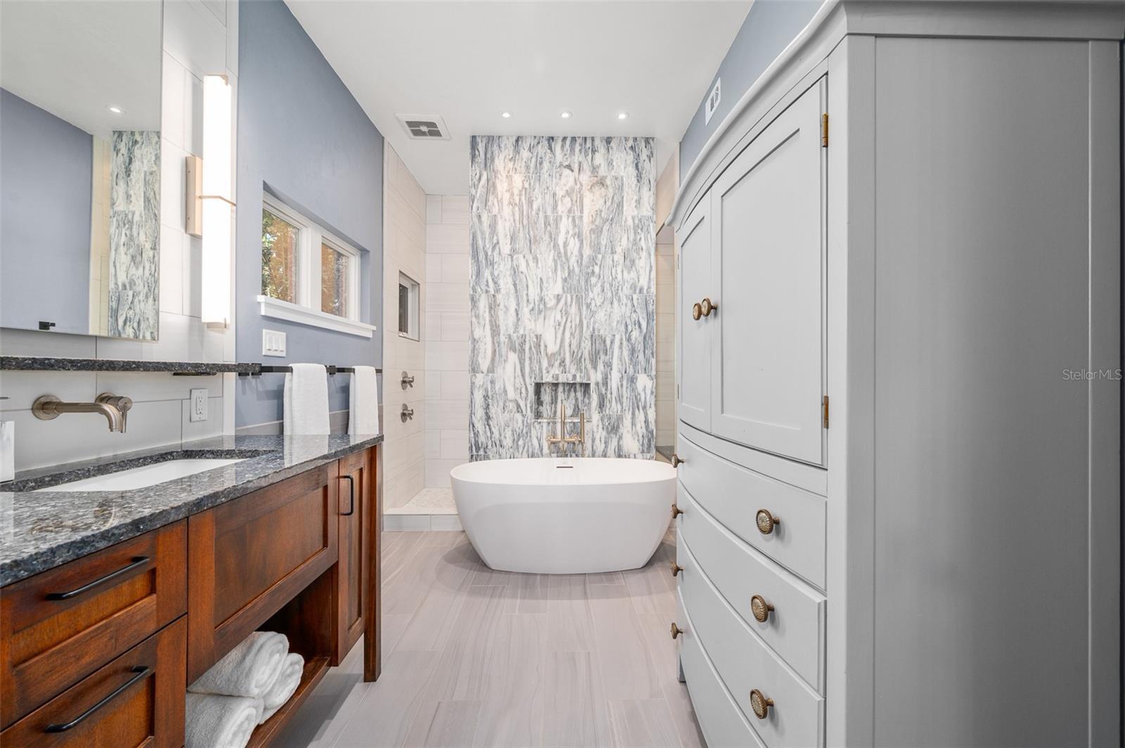 You'll love coming home to this completely renovated two-story luxury home situated on a premium lot in Haile Plantation. Exceptional curb appeal and a brick paver pathway leads to this stately home with a gorgeous leaded-glass front door. Inside, the elegant formal dining room sits to the left, featuring classic wainscoting and a stunning chandelier—perfect for entertaining. Beyond the dining room, the expansive family room impresses with cathedral ceilings, a dramatic lighted stone entertainment wall, and a gorgeous oversized chandelier that anchors the space. The chef’s kitchen is truly the heart of the home, thoughtfully designed with stainless steel appliances including a Wolf six-burner gas cooktop, a wall oven and microwave, granite countertops, custom wood cabinetry, a wine refrigerator, and a wood vent hood. A large island with a prep sink provides additional workspace. The kitchen overlooks the breakfast nook and the sun-filled Florida room, which features a wood-burning fireplace and a coffered ceiling, all overlooking the newly landscaped, expansive backyard. Located between the dining room and kitchen is an incredible butler's pantry with a built-in oven, granite countertop, glass door cabinetry and a large walk-in pantry with custom shelving. Just off the kitchen is a well appointed full bath ideal for pool or outdoor access.The large laundry/mud room is complete with a second refrigerator, a sink, lots of cabinets and a window. The primary suite is conveniently located on the main level and offers a large walk-in closet and a beautifully renovated, spa-like en suite bath with dual vanities, a free standing soaking tub, and an exceptional walk-in shower with floor to ceiling tile and multiple shower heads. Also on the main floor is a spacious guest bedroom with a Murphy bed, a fully renovated hall bathroom with a walk-in shower. Upstairs, you’ll find a generous flex space, two additional bedrooms, and a full bathroom with double sinks and a tub/shower combination. A large storage/bonus room adds versatility, and one of the upstairs bedrooms is plumbed for an additional bathroom. Step outside to a private, low-maintenance, fenced backyard featuring a hot tub, a charming gazebo with swings, and a fire pit—perfect for relaxing or entertaining. The Haile Plantation community offers miles of walking trails, parks, playgrounds, basketball, a Village Center with shops and restaurants and the Hawkstone Country Club. The Hawkstone Country Club (membership required) offers dining, golf, tennis, pickleball, a gym and two pools.