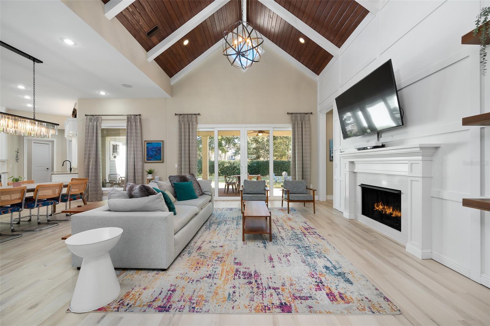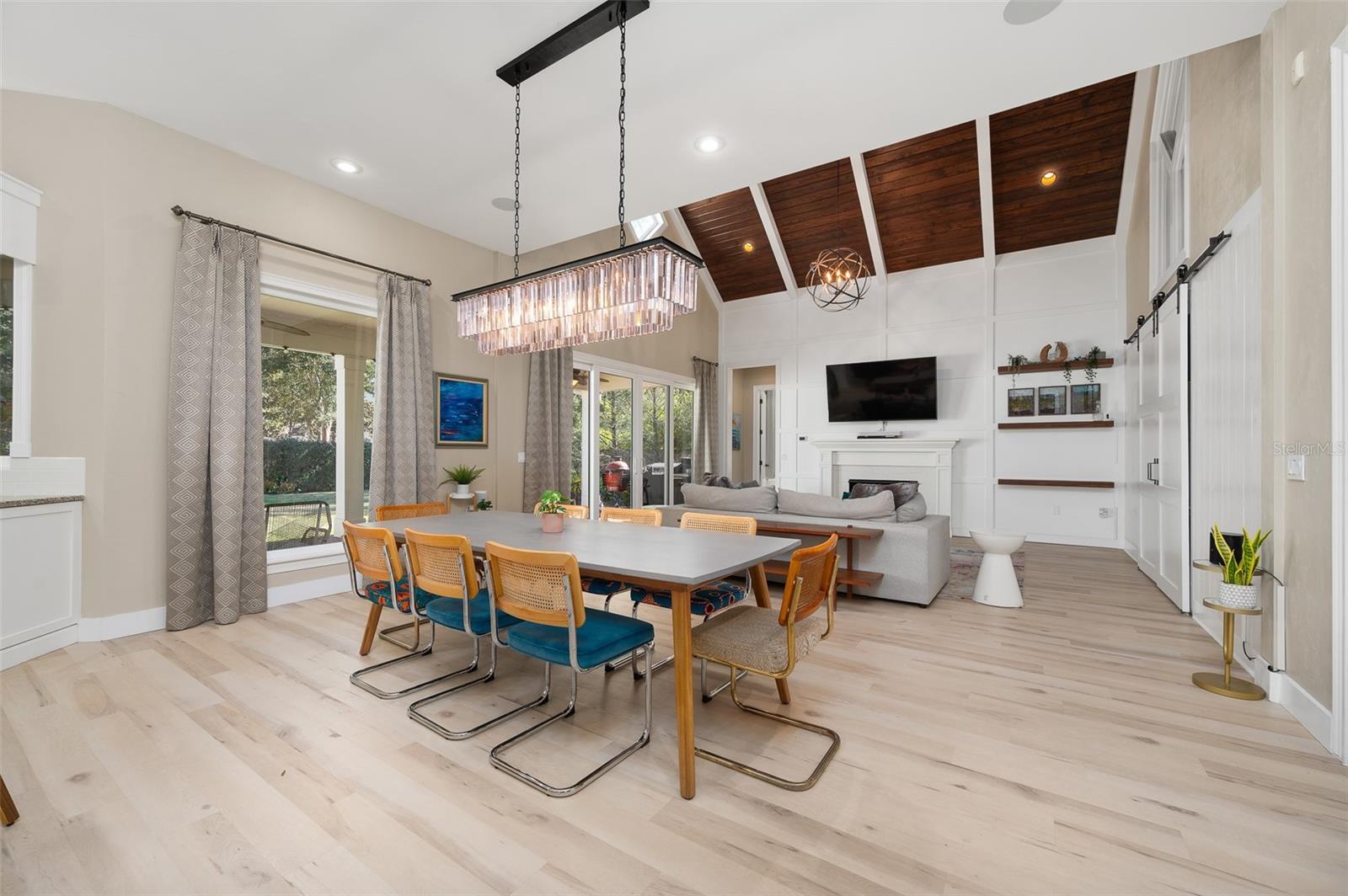 Stunning Former PARADE HOME built by Dibros Design and Construction, featuring 4 BRs, 3 BA PLUS STUDY/FLEX gracefully situated on a premier PRIVATE homesite with one of the largest backyards in Town of Tioga! This thoughtfully designed traditional home showcases upscale finishes and refined craftsmanship throughout, including a chef-inspired gourmet kitchen with an expansive working island, stainless steel appliances, granite countertops with quartz island, and custom wood cabinetry complemented by a walk-in pantry. Elegant architectural details include tongue-and-groove wood ceilings in the dining room and soaring vaulted ceilings in the family room and study. Luxury Vinyl Plank flooring span most of the home and primary and the entire home boasts designer accents while abundant windows create a light-filled, sophisticated living environment. The luxurious primary suite offers a private sitting area and generous closet space with two large walk-in closets with built in shelving. The primary bathroom is equally luxurious with freestanding tub, large glass shower and long double vanity. Outdoor living is elevated with an expansive covered back porch and a spacious, privacy-fenced lot—ideal for entertaining or relaxing in comfort and style. A truly exceptional home offering timeless elegance, quality construction, and upscale living. Town of Tioga is a popular community in the Jonesville/SW Gainesville area and offers a one of a kind lifestyle with proximity to the Tioga Town Center restaurants and shopping, walking trails and a stellar amenity package including clubhouse, pool, playground, two tennis courts, basketball court and beach volleyball! Top rated school zones: Meadowbrook Elementary, Kanapaha Middle and Buchholz High. Enjoy lower utility bills with Clay Electric Co-op for electricity and GRU for natural gas/water.