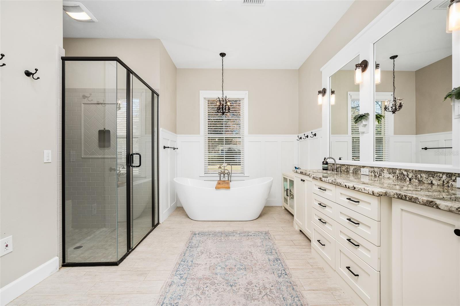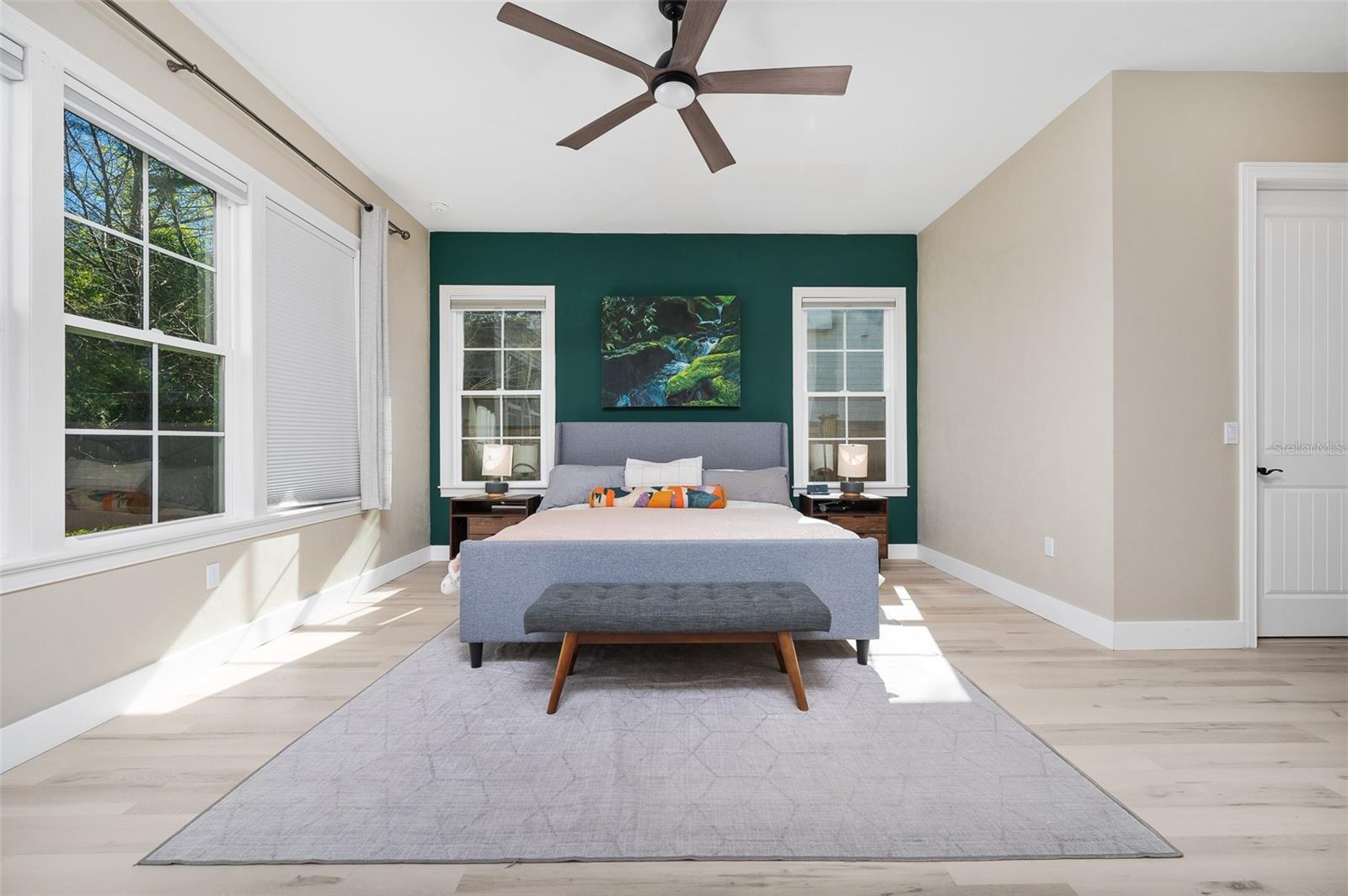 - Cathedral Ceiling(s), Ceiling Fans(s), Crown Molding, High Ceilings, Open Floorplan, Solid Wood Cabinets, Split Bedroom, Stone Counters, Thermostat, Vaulted Ceiling(s), Walk-In Closet(s), Window Treatments