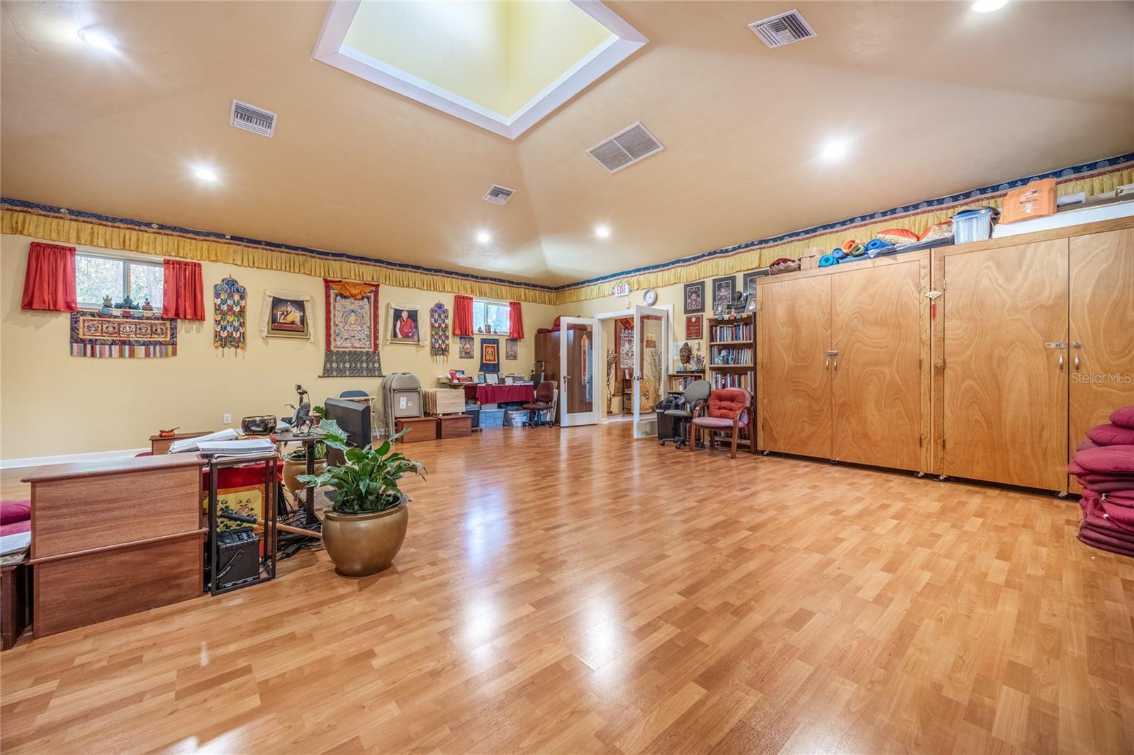 Exceptional professional office space, less than 1 mile form the University of Fl. Currently used as an acupuncture office and meditation center, this architect designed and built office features a reception area/waiting room, 4 office spaces, a break room/kitchen area, 2 bathrooms, and 2 enclosed courtyards. One of the offices has a kitchenette and can be used as an efficiency. A breeze way and side entrance connects to a separate 840 ft multi-purpose room, which would be ideal as a conference room or additional office space. There is ample parking for 4-6 cars and a covered carport. U 4 (Urban) zoning allows for a multitude of uses.