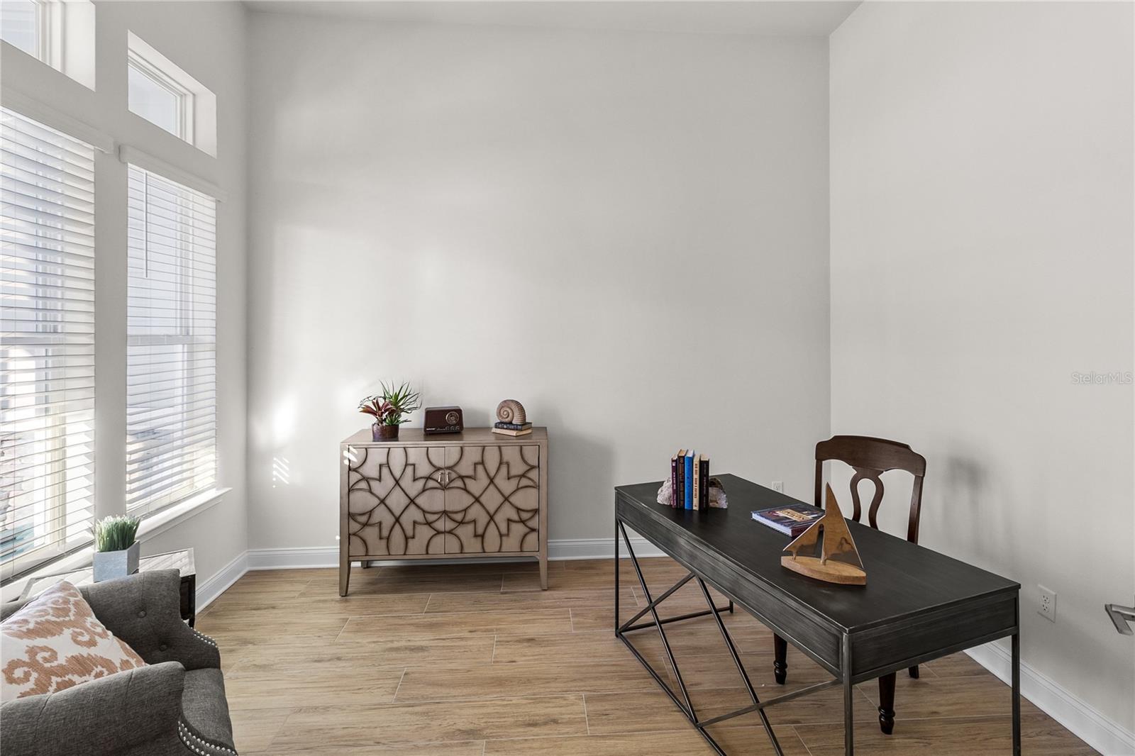 - Cathedral Ceiling(s), High Ceilings, L Dining, Primary Bedroom Main Floor, Thermostat, Tray Ceiling(s), Walk-In Closet(s)