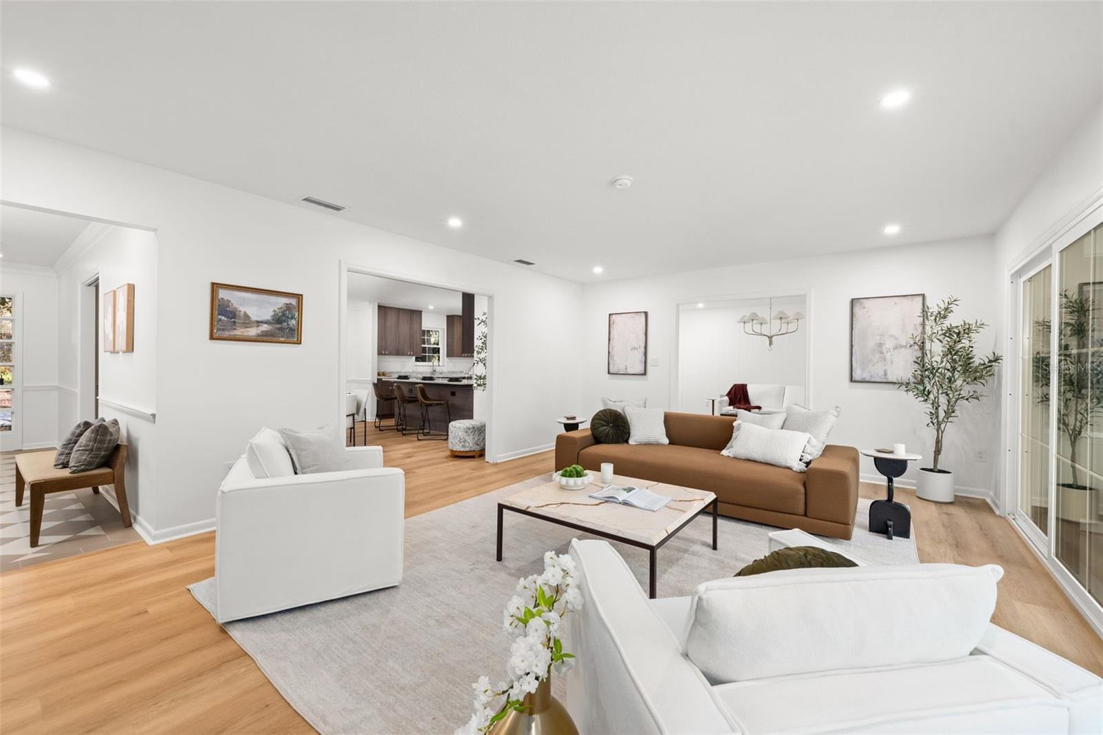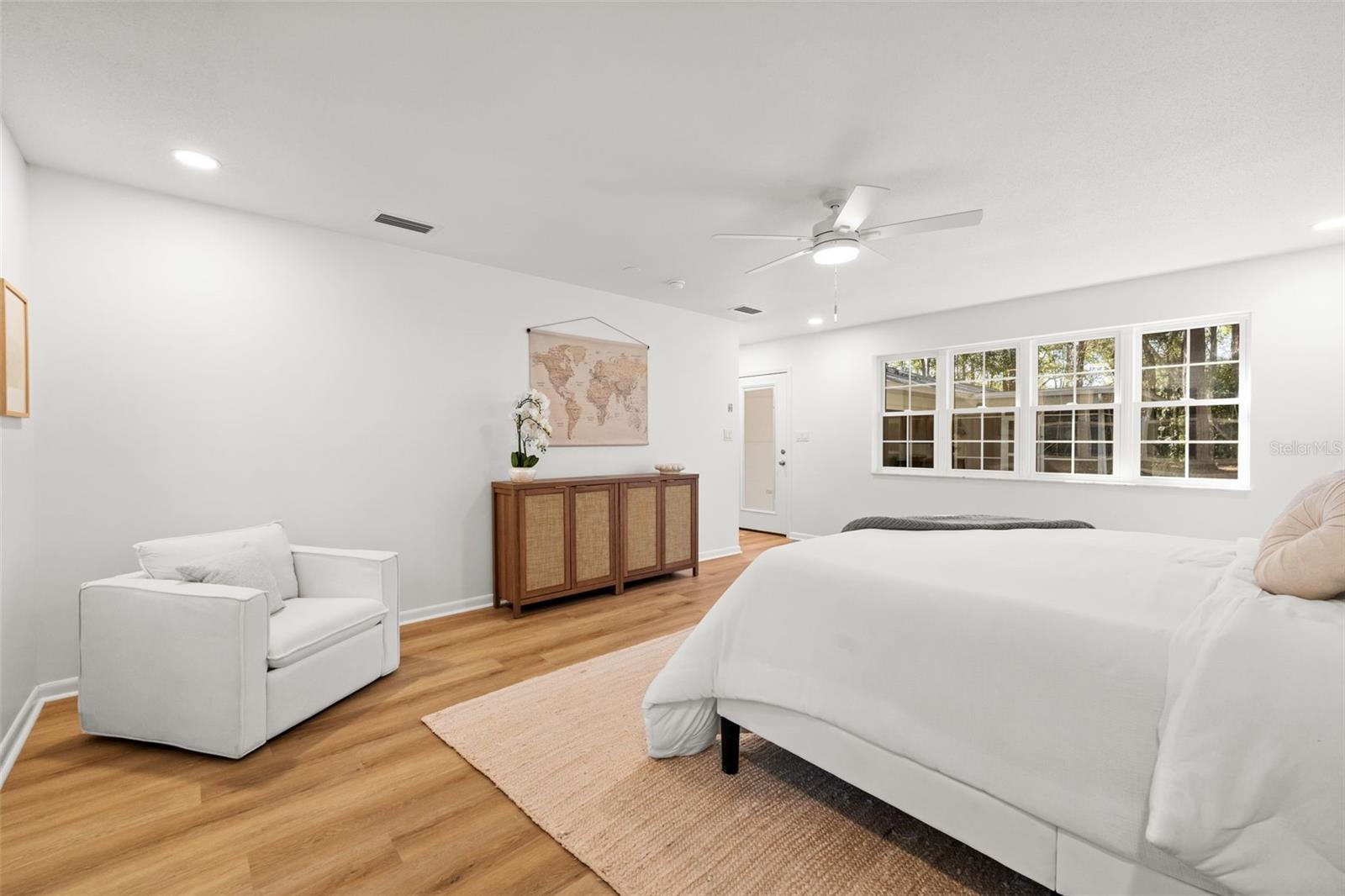 Welcome home to the Mason Wood Estate. For the past five months, I’ve worked closely with Fleming Studios design to completely reimagine this home and prepare it for its next chapter. This nearly 3,400 square foot home sits on a private, manicured one acre lot, tucked away in one of northwest Gainesvilles most sought after neighborhoods. As you arrive you’ll notice the two massive driveways, fresh exterior paint, brand new Pella windows, and an updated roof. As you step inside, the checkerboard tile floors set the tone—an immediate nod to the home’s traditional roots. Just off the foyer is the main dining room and custom kitchen, thoughtfully redesigned, yet grounded in warmth. Floor-to-ceiling hardwood cabinetry, sealed marble countertops, and a full KitchenAid appliance suite come together to create a space that feels both elevated and timeless—designed for gathering, conversation, and everyday living. One of our favorite design elements is a phone charger integrated into the counter tops- just set your phone down and watch it charge! Through a pocket door tucked beside the kitchen, you’ll find one of the home’s most unexpected moments: a richly designed wet bar featuring walnut cabinetry, striking quartzite countertops, an ice maker, and a full beverage station. This flexible space can transform from formal dining room to lounge—perfect for hosting, storytelling, and long evenings with friends. From here, the home opens into the grand living room, stretching nearly 25 feet in length and anchored by a timeless marble fireplace with classic dentil molding. It’s a space that feels both intimate and impressive. Natural light pours in through walls of sliding doors, framing views of the expansive backyard and drawing you outdoors. The home offers three generously sized guest bedrooms—each designed to feel comfortable and welcoming. Two share a beautifully appointed bathroom with a dual-sink vanity and a separate washroom. Another unique aspect of this home is that it features two primary suites, each with walk-in closets and accessible en-suite bathrooms—an incredibly rare and thoughtful layout. The owners suite features a nearly ten-foot dual-sink vanity with marble countertops and bespoke fixtures, positioned across from an expansive closet with custom built ins. The owners’ bathroom was completely reimagined and nearly doubled in size to make way for this exceptional walk-in shower—complete with dual shower heads, handheld wands, built-in niches, and a bench. Nearly 1,000 individual pieces of green marble come together to form this shower—an extraordinary detail rarely seen in a home at this price point. The owners suite itself feels like a retreat, with two full walls of windows overlooking the impeccably designed backyard. Outside, a spacious screened porch and expansive open patio open onto an acre of reimagined landscaping, with fresh sod, new plantings, and a winding path leading to a brand-new firepit—designed for quiet mornings and unforgettable evenings. Additional features include a two-car garage with extensive storage and a nearly 200-square-foot ADU with a separate electrical panel—perfect for a studio, workshop, gym, or detached office. Other important updates include: 2 updated air conditioners, 2 updated hot water heaters, updated plumbing, and an updated electric panel. This is as turn key as it gets! Welcome home, to the mason wood estate.