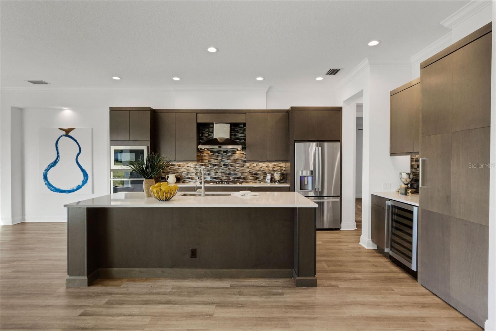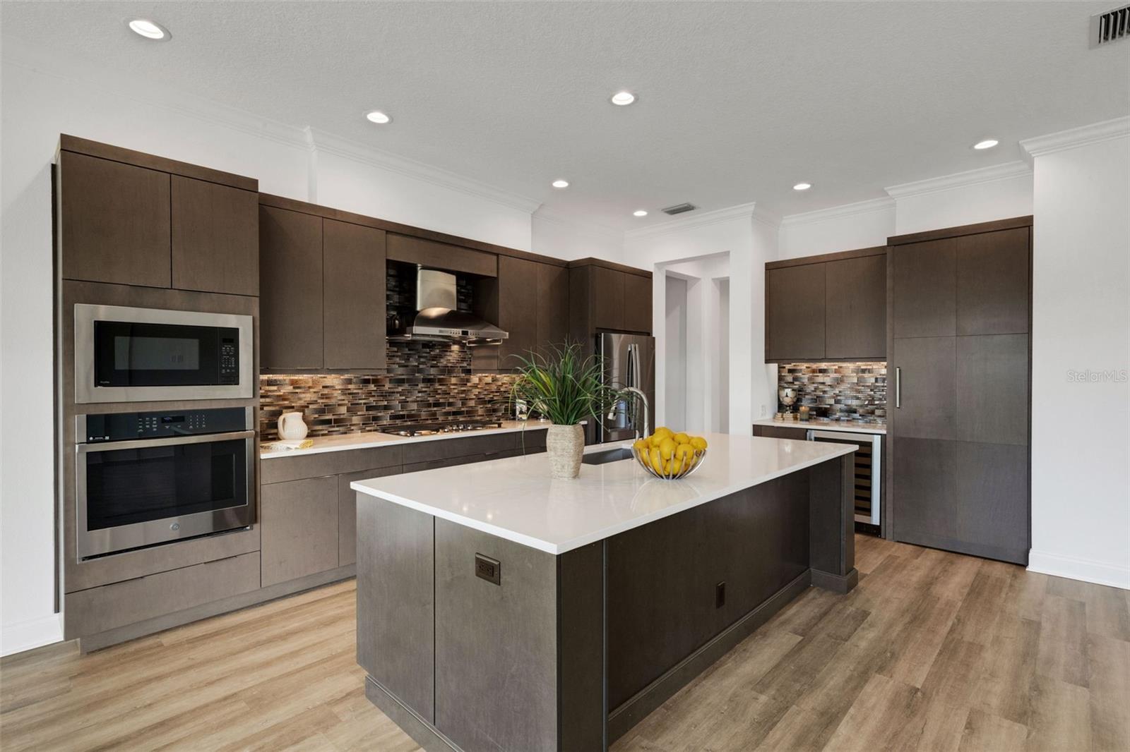 - Built-In Oven, Cooktop, Dishwasher, Disposal, Microwave, Refrigerator, Wine Refrigerator