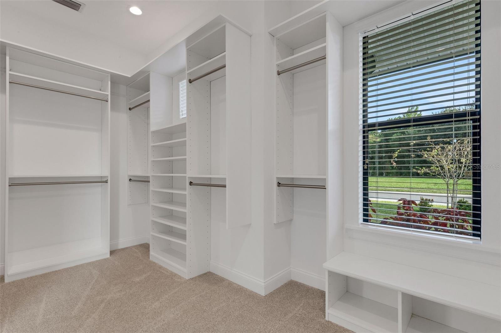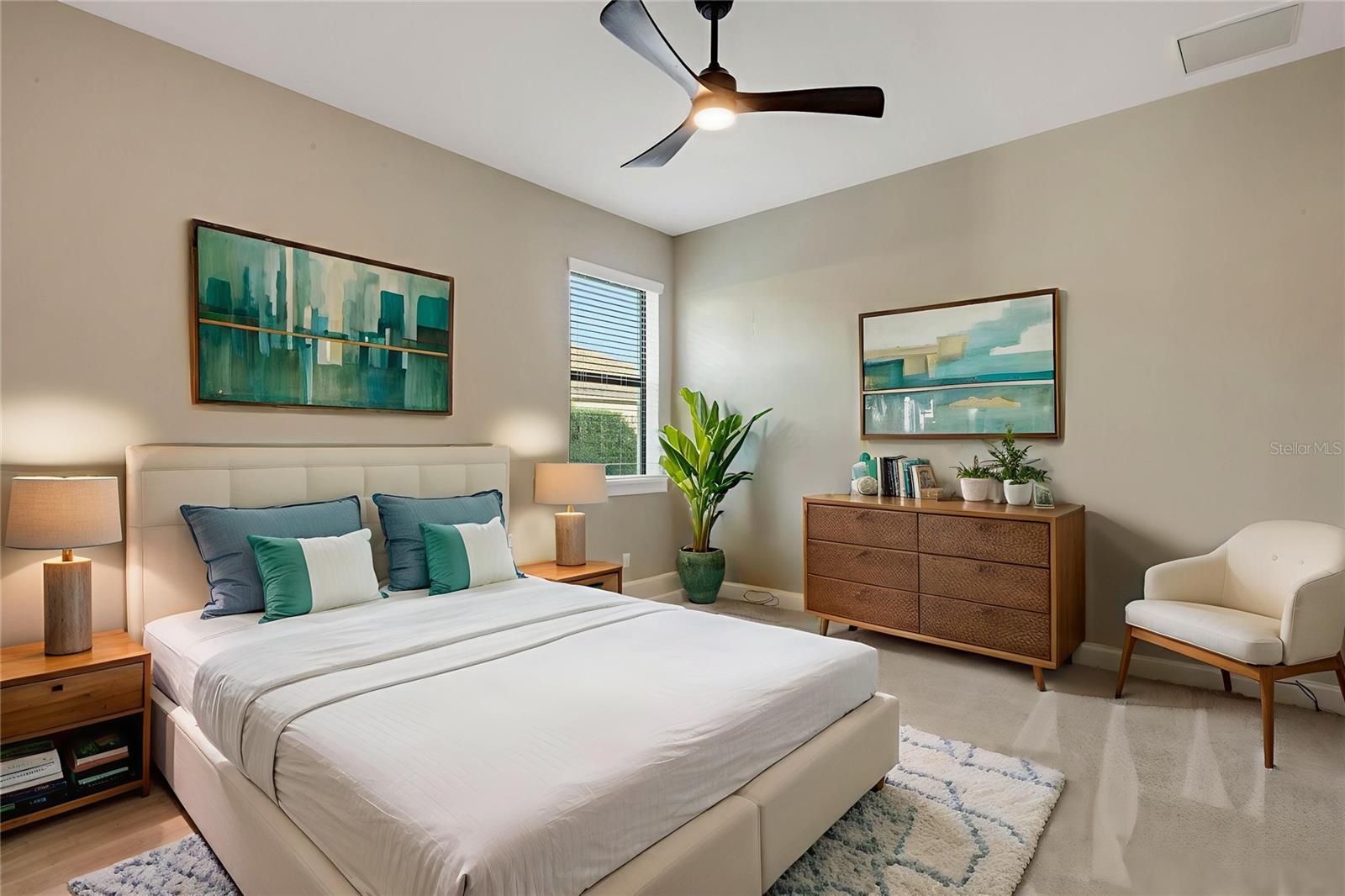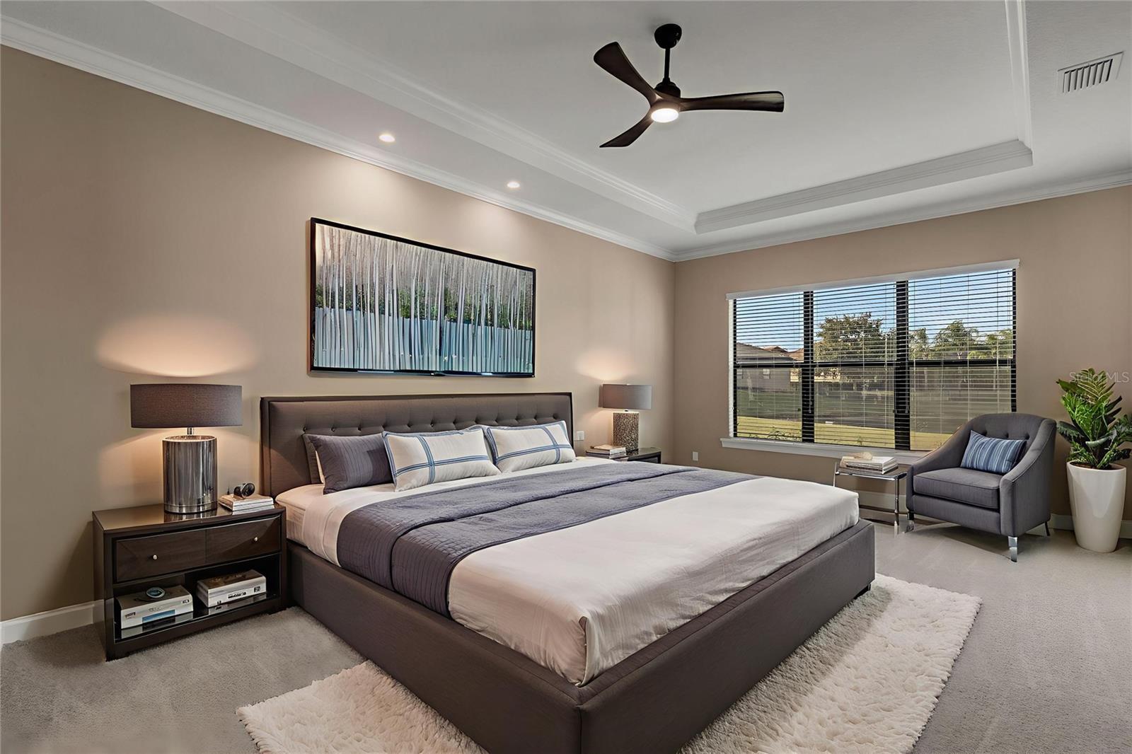 - Ceiling Fans(s), Crown Molding, High Ceilings, Open Floorplan, Primary Bedroom Main Floor, Solid Surface Counters, Solid Wood Cabinets, Split Bedroom, Walk-In Closet(s)