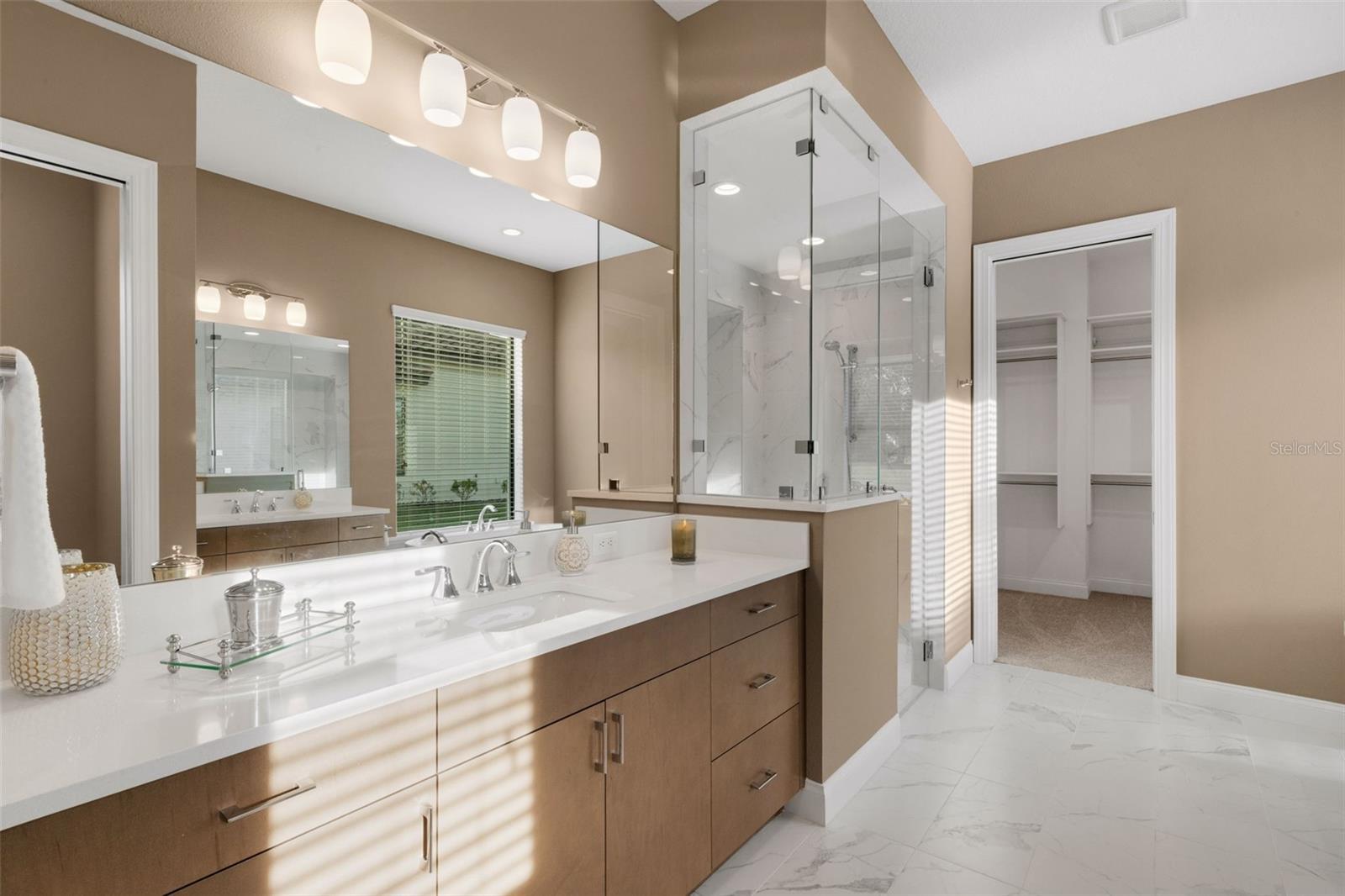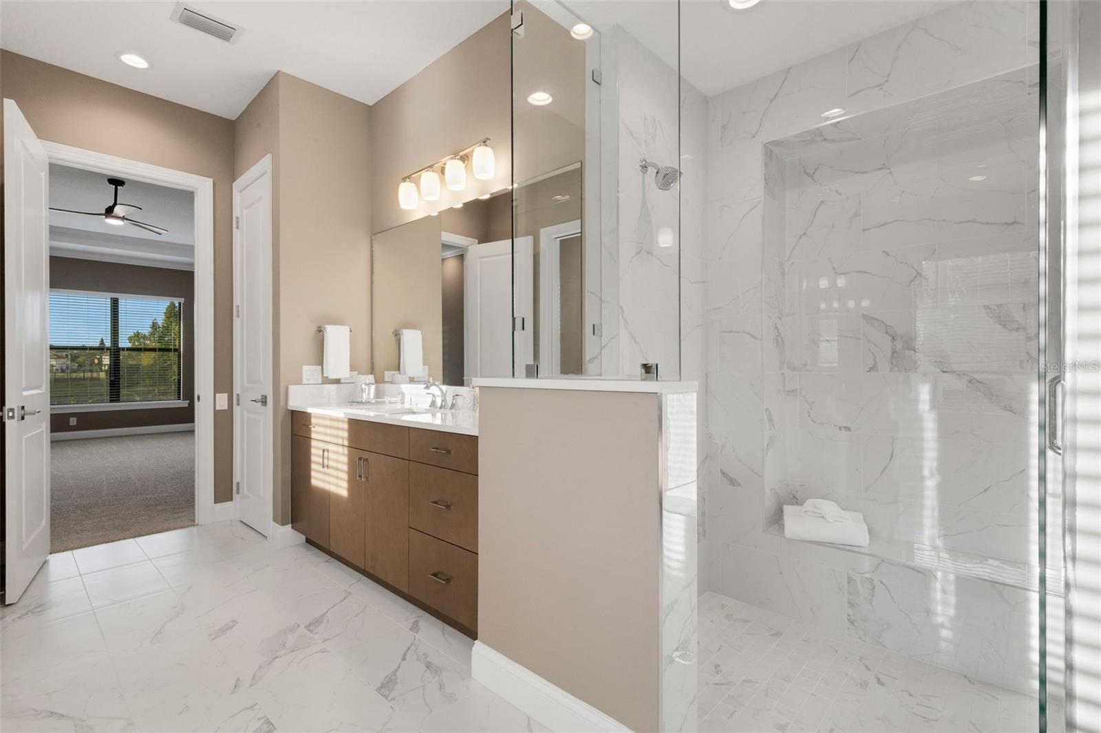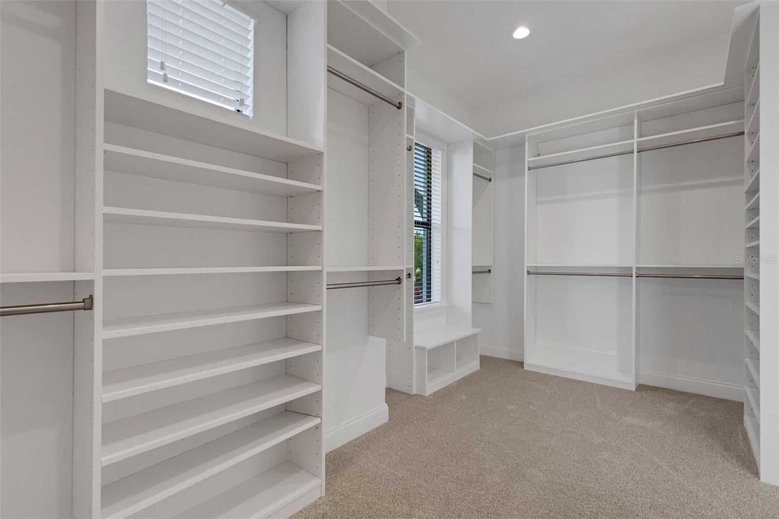 - Ceiling Fans(s), Crown Molding, High Ceilings, Open Floorplan, Primary Bedroom Main Floor, Solid Surface Counters, Solid Wood Cabinets, Split Bedroom, Walk-In Closet(s)