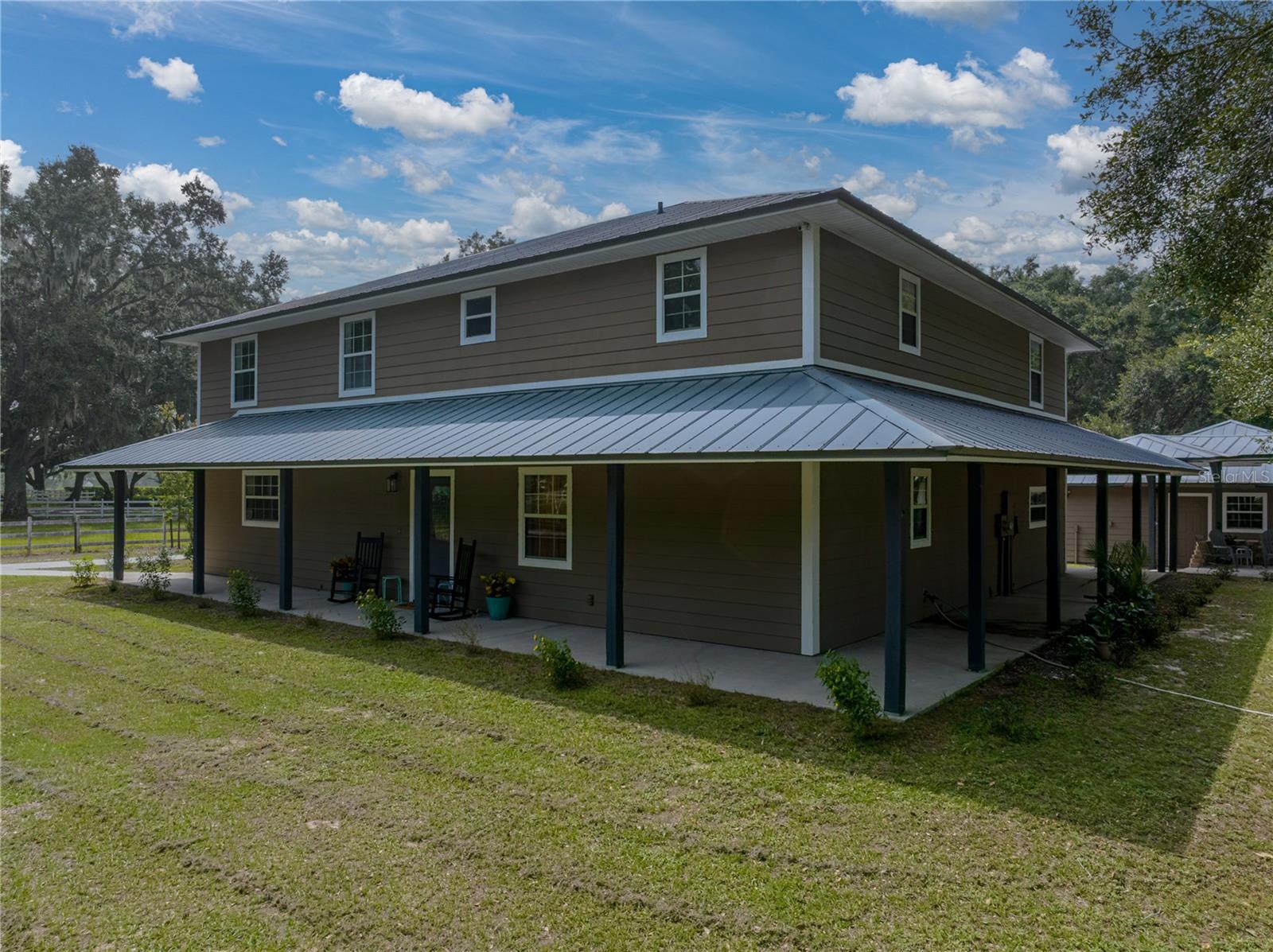Under contract-accepting backup offers. Freshly relisted with an attractive new price! This 4-bedroom, 3-bathroom home is on a spacious 2.9-acre lot offering ample room for both comfort and outdoor activities. A bonus room is on the second floor that opens out to a balcony/porch area with beautiful views. There is a separate .92 acre parcel that adjoins the property and the seller is listing separately. The home was built with Coastal hurricane standards which can be verified via an inspection. All exterior walls are 2x6 with R19 insulation. This includes a 3/4 wrap-around porch, providing a welcoming and relaxing space to enjoy the outdoors. As you enter the front door you will walk into a spacious open area that leads to a family room, dining room and kitchen combination and is perfect for entertainment. A large pantry for storage is a plus. Available seating at the kitchen counter for eating or just catching up. The kitchen has a new refrigerator and dishwasher. There is a first-floor dry bar/game room to enjoy time with friends and family. Interested in a movie instead, you will find a media room with leather seating, big screen TV and surround sound. There are three updated bathrooms, two upstairs, the master has a jet tub, and a separate shower, the other upstairs bathroom and the downstairs bathroom has shower only. With the bedroom and bathroom downstairs, this would be perfect if you are interested in a multigenerational space or just a private bedroom. There is a first-floor laundry room with a closet that holds a clothing chute from upstairs for convenience. In addition to the 2 bedrooms and master bedroom upstairs you will find a bonus room perfect as a guest room or just added entertainment area. Through the French doors off this bonus area is a large deck for outdoor entertainment and beautiful views of the property. The deck is reinforced and has a subpanel if something else would want to be added. The large master bedroom has two walk-through his and her closets that lead from the bedroom to the updated bathroom which has a jetted tub, two vanities and a walk in shower. The other two bedrooms each have a feature wall. The second bathroom has also been updated. In addition, there is a closet that houses the clothing chute which goes down to the first-floor laundry room for convenience. There is an additional bonus room, craft room/library and large office with plenty of work areas. All rooms of home are hard wired with Ethernet cable. There is closed circuit wiring throughout the home. This home has ample storage space (even under the stairs) inside and outside the home. The metal roof of the original house was painted in 2/2023. Three air conditioners are in the home. One was purchased in 2017 and the other two were purchased in 2020. The water heater was replaced 7/2023. Septic System was checked in 2020 and well components were replaced in 2025. The generous acreage provides opportunities for gardening, recreation and relaxation. You will have plenty of parking with a detached 3½ car garage and covered carport. This property is located close to I-4 and centrally located between Orlando and Tampa. This is a must-see home. NO HOA! Schedule a showing today!!!!