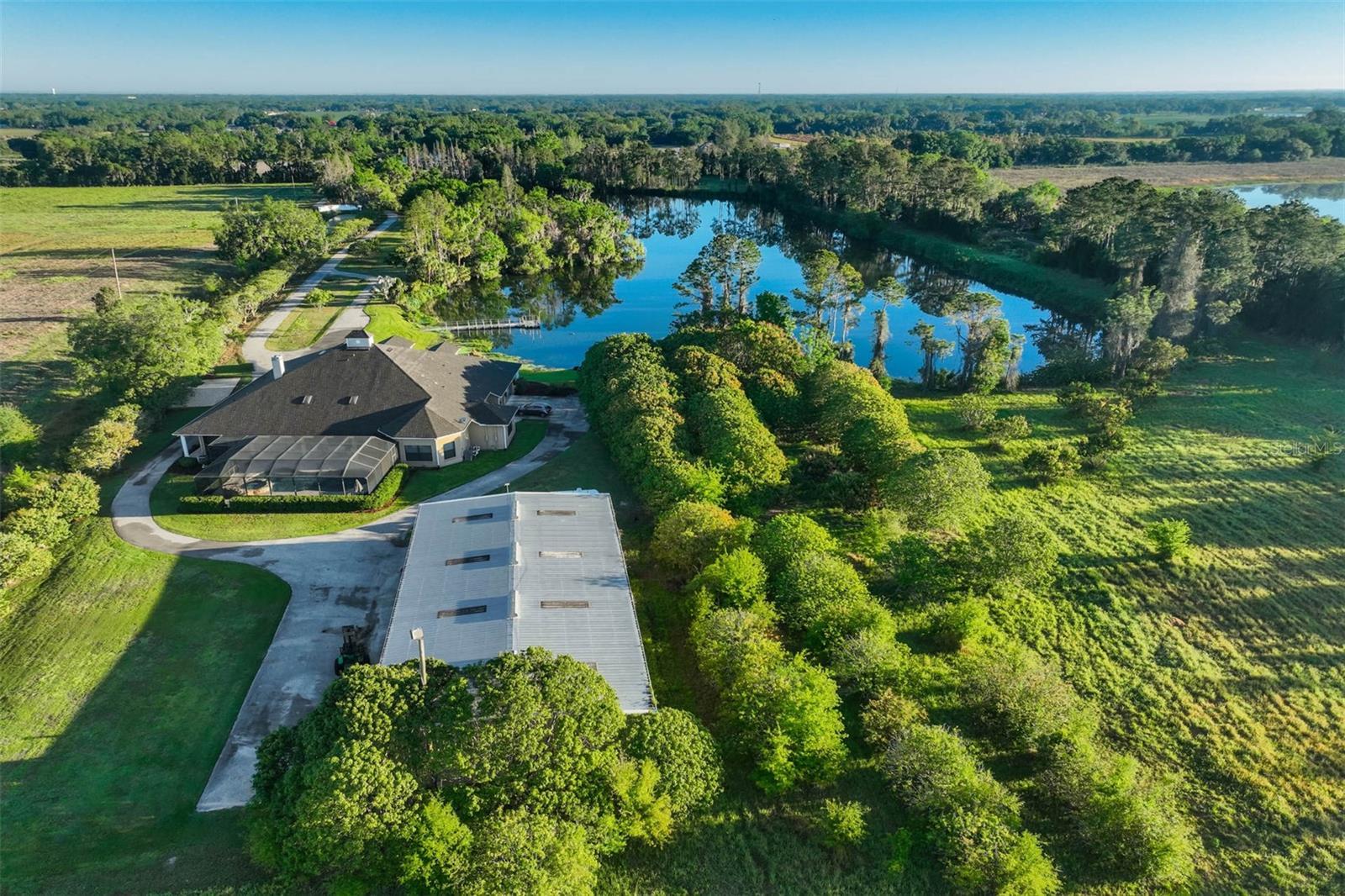 One or more photo(s) has been virtually staged. As you pass through the gates of this beautiful, 52.24-acre legacy estate, a long winding road lined with blooming azaleas, mature lychee trees, and all the natural beauty of old Florida begins to unfold itself everywhere you look. The property's focal point is a majestic, seven-acre lake, only steps from the front door. It's the ideal spot for your morning coffee, to fish the afternoon away, or to catch a stunning sunset at the end of the day. This custom, two-story 9349sf home boasts a wrap-around porch, four spacious bedrooms, and five baths. The expansive primary kitchen was created with family gatherings in mind. It includes Thermador appliances, double ovens, a warming drawer, two sinks, a large center island, illuminating lead-glass door cabinetry, plenty of bar seating, and a walk-in butler's pantry with custom features. The secondary kitchen is located right off the sunroom, it offers a gas range and wine fridge as well as easy access to the screened-in pool and spa. The oversized master bedroom has an adjacent private workout room with a wet bar and lake views. The ensuite bath has separate water closets and custom dressing rooms. Other notable features of the home include a large custom laundry, built-in vacuum system, skylight roofing, four sets of sliding pocket doors, which allow you to expand your indoor and poolside living spaces. The property also includes a 5000sf metal barn with a loft, two bays, and an additional office and a half bath, a 105kw Generac generator, a 12” 675’ deep well for farm irrigation. Mature exotic fruit trees (lychee, avocado, mango, banana & pomelo grapefruit) are a special treat. The location of this one-of-a-kind Plant City property lies conveniently off of State Road 60 between Brandon and Lakeland. It has 1,428 feet of road frontage and three ingress and egresses. It is 10 miles to Lakeland International Airport and 16 miles to either I-4 or I-75 for commutes.