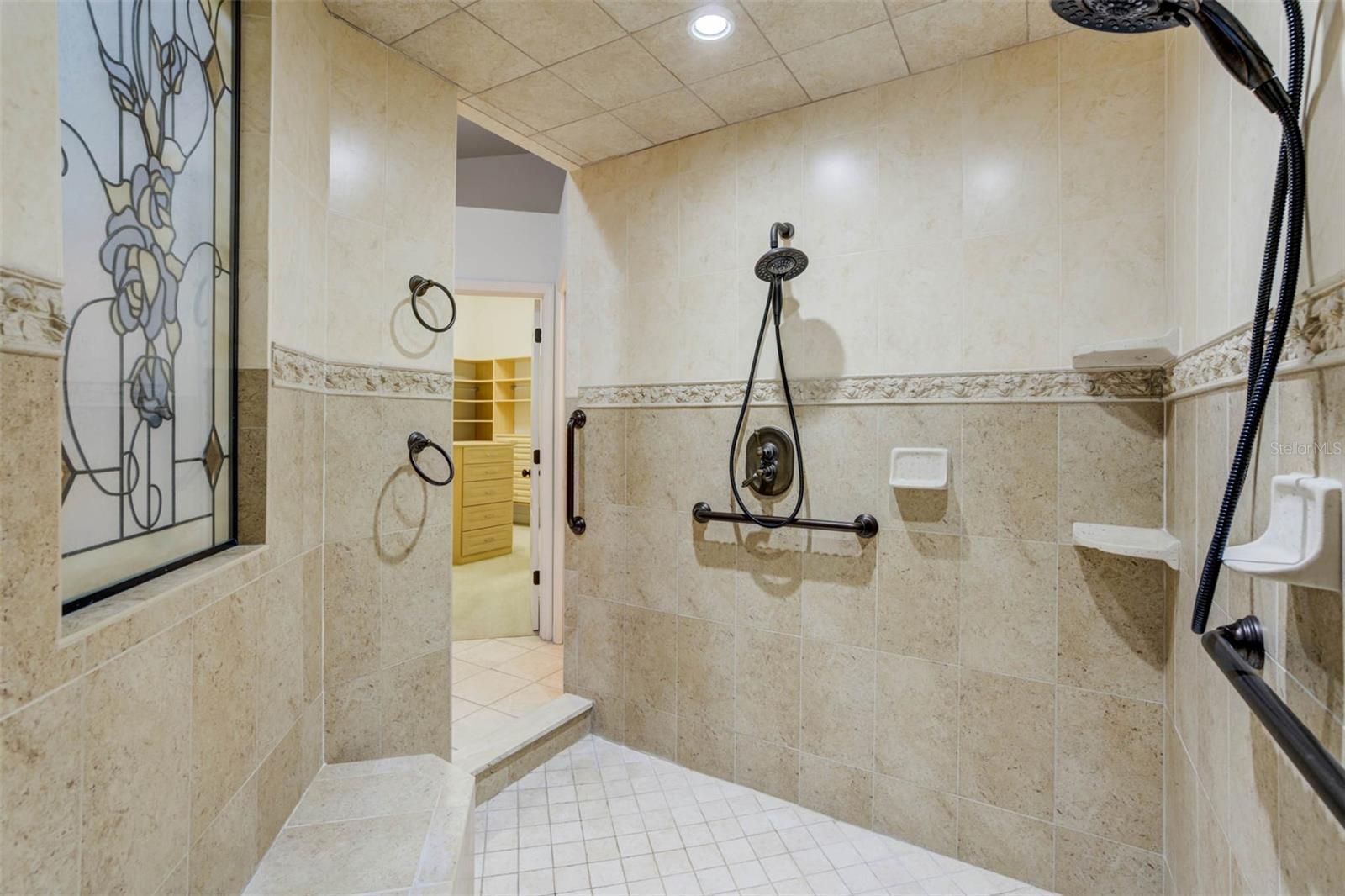- Built-in Features, Ceiling Fans(s), Central Vaccum, Eat-in Kitchen, High Ceilings, Open Floorplan, Primary Bedroom Main Floor, Solid Wood Cabinets, Split Bedroom, Stone Counters, Thermostat, Walk-In Closet(s), Wet Bar, Window Treatments