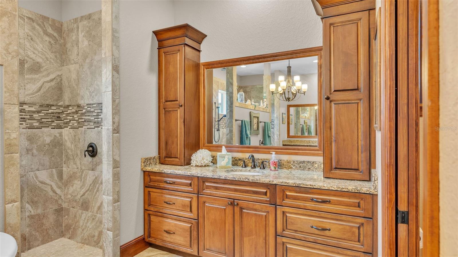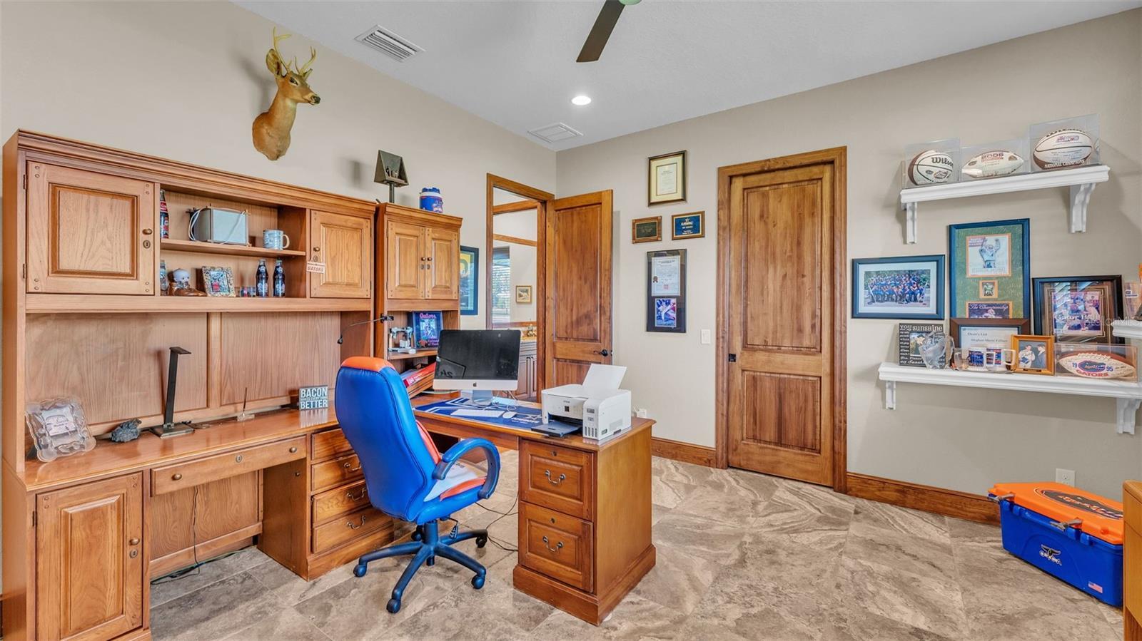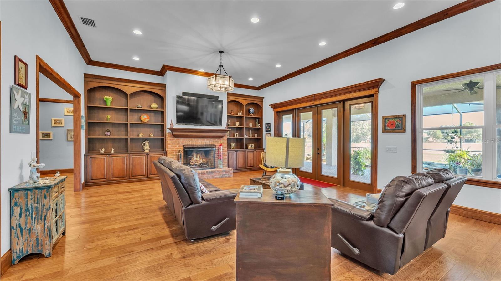 Discover the epitome of luxury living in this stunning custom-built home, completed in 2016 by LK&T Construction. Situated on over an acre of beautifully manicured land, this 5-bedroom, 2.5-bathroom residence features an office and an impressive 6-car garage, offering ample space for both comfort and convenience. Upon entering, you are greeted by a flowing open concept layout enhanced by exquisite engineered hardwood flooring and elegant crown molding throughout. This inviting design promotes both functionality and style, making it an ideal space for entertaining guests or enjoying quiet family moments. Step into the heart of the home: a spacious kitchen equipped with top-of-the-line Thermador stainless steel appliances, including a gas-burning stove. The space boasts a stunning backsplash, luxurious granite countertops, abundant cabinetry, and generous counter space, complemented by a walk-in pantry and a cozy eat-in nook—perfect for casual dining. The expansive living room features soaring high ceilings, a charming wood-burning fireplace, and custom built-in shelving, creating a warm and welcoming atmosphere perfect for relaxation and gatherings. Retreat to the sumptuous primary bedroom, offering a private oasis complete with an ensuite bathroom that highlights dual walk-in closets, separate vanities, a standalone soaking tub, and an expansive tiled walk-in shower—a perfect escape at the end of the day. On the opposite side of the home, you will find two well-appointed bedrooms that share a full-size bathroom, providing privacy for family or guests. Two additional bedrooms, equally spacious and also featuring walk-in closets, offer comfort and style for all occupants. A separate space at the entrance of the home is perfect for a home office or game room, providing flexibility for your lifestyle needs. Enjoy outdoor living at its finest with a large screened-in pavered patio that overlooks a tranquil koi pond—an idyllic setting for every season, whether you're hosting gatherings or enjoying quiet moments in nature. This home is equipped with a whole-home Generac generator and a water softener for added comfort and peace of mind. The durable metal roof enhances both aesthetics and durability, ensuring long-lasting quality. Conveniently located with quick access to I-4, shopping, and dining, this estate offers the perfect balance of privacy and accessibility. Don't miss out on this exceptional opportunity to own a custom-built estate that combines luxury, elegance, and modern living. Schedule your private tour today and experience all that this remarkable property has to offer!
