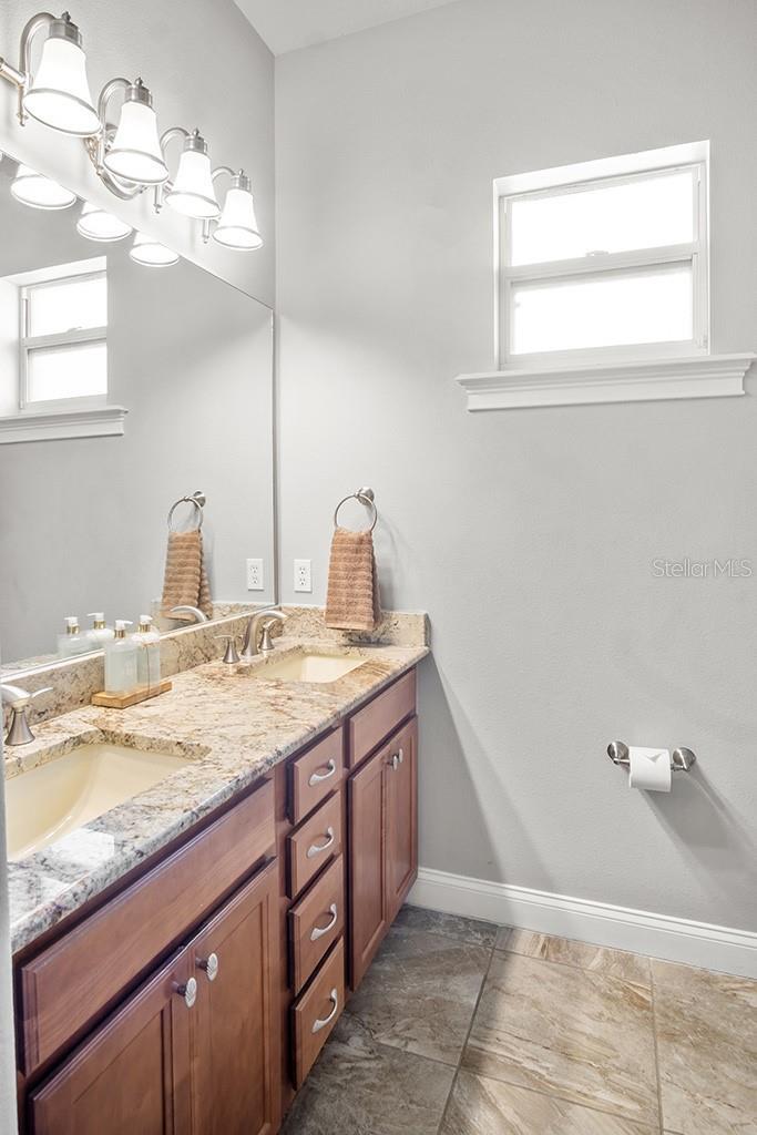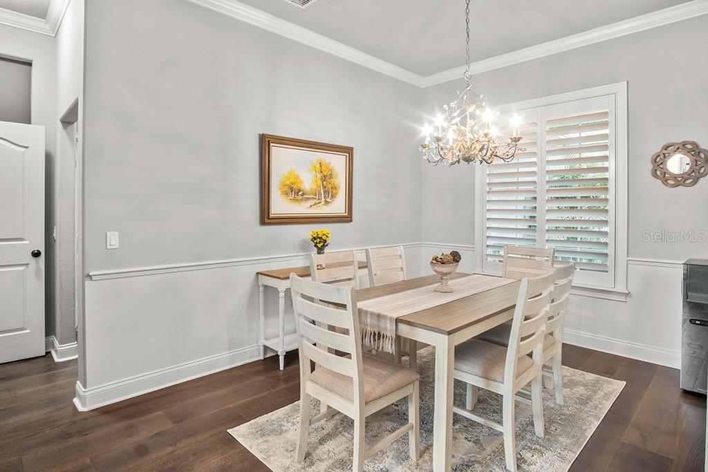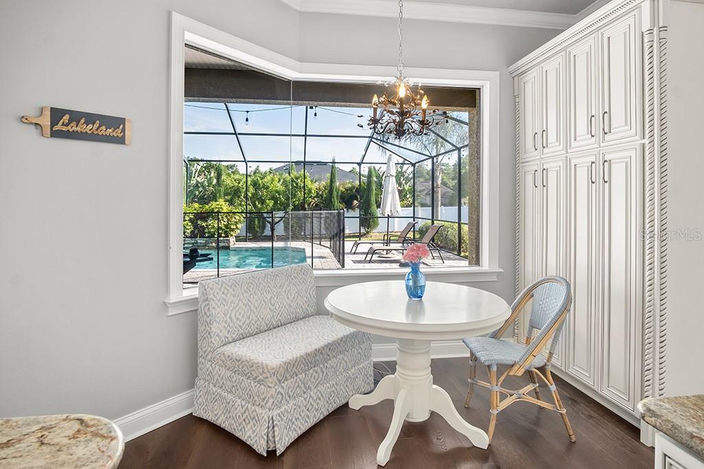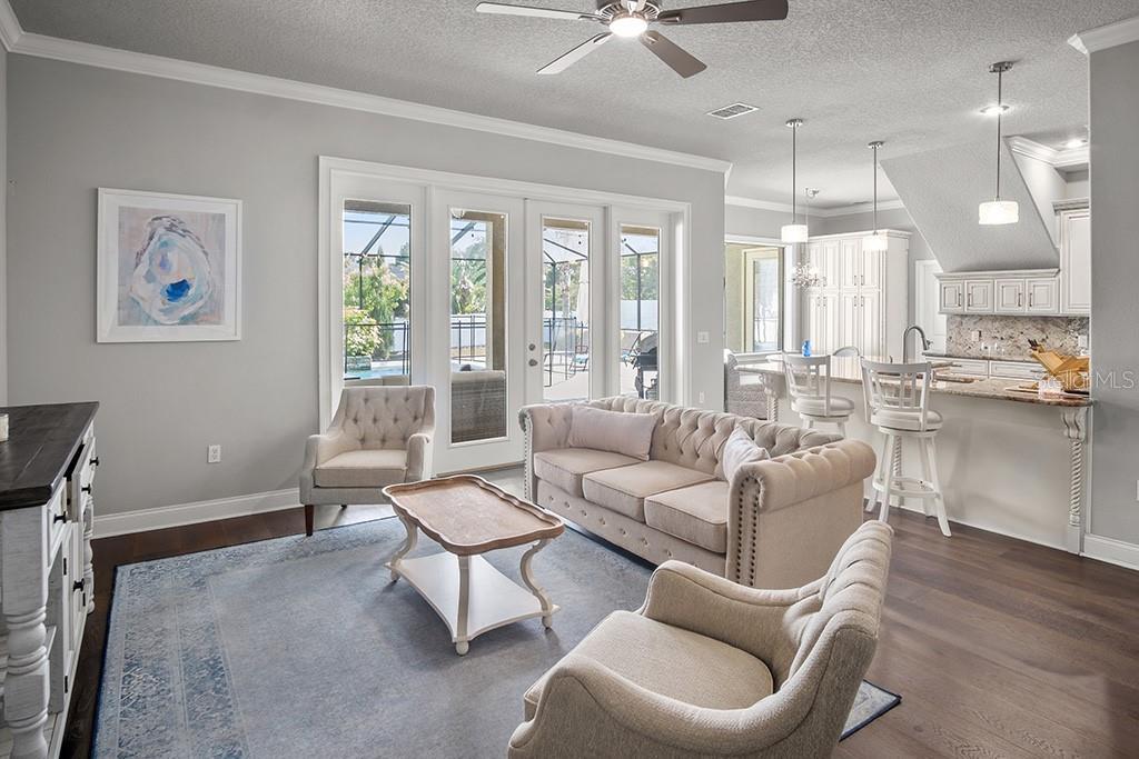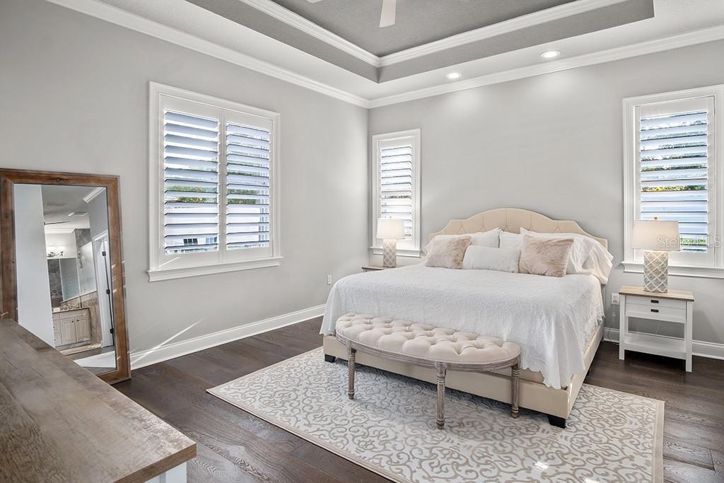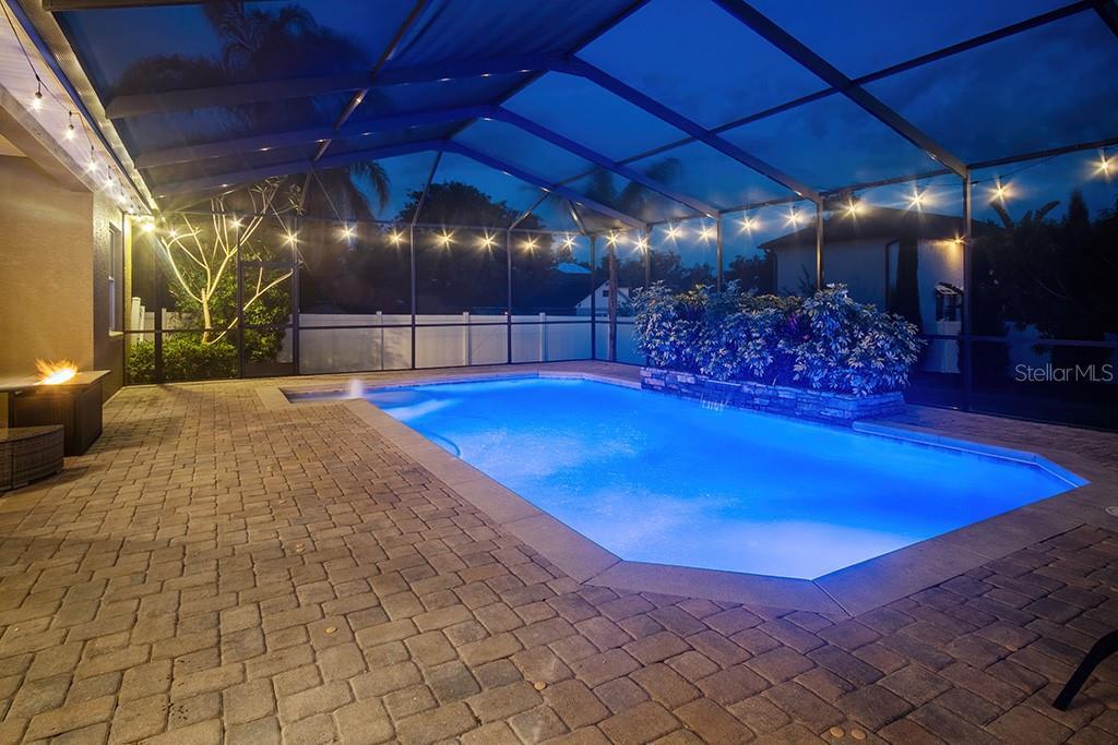 Fully furnished. Electric & water utility included. Lawncare included. This beautiful 3 bedroom, 3 bath heated pool home boasts impeccable attention to detail. From the beautiful kitchen cabinetry and gorgeous granite countertops, to the plantation shutters and crown molding. As soon as you enter the home you're greeted with an open floor plan and gorgeous French doors that highlight the paved patio and heated water pool. Complete with a waterfall feature, gas firepit, it's time to relax at your oasis. The master suite features tray ceilings in the bedroom, two walk-in closets, and an en-suite bathroom with dual sinks, and a large tiled walk-in shower. Upstairs provides a very cozy space including, reading area, workout area, with upstairs designated full bathroom. Large couch and TV give a cozy home theatre vibe. Grab the popcorn. The location between Tampa and Orlando makes this the ideal spot for enjoying the best of Florida. Locally, the location provides a balance of proximity to nature, nearby shopping centers and excellent nearby schools.