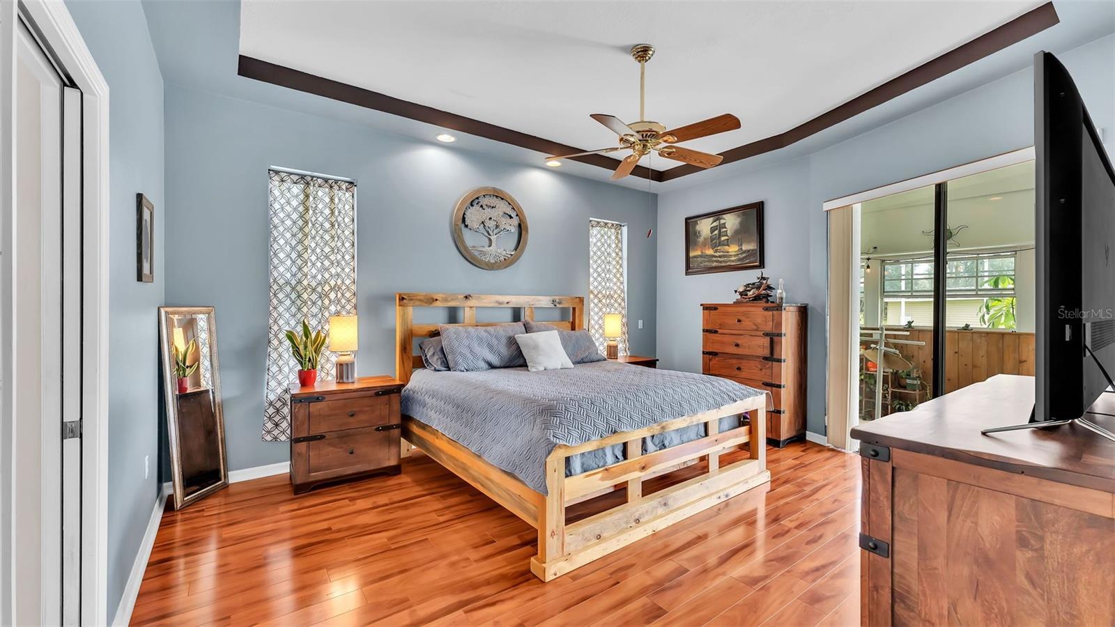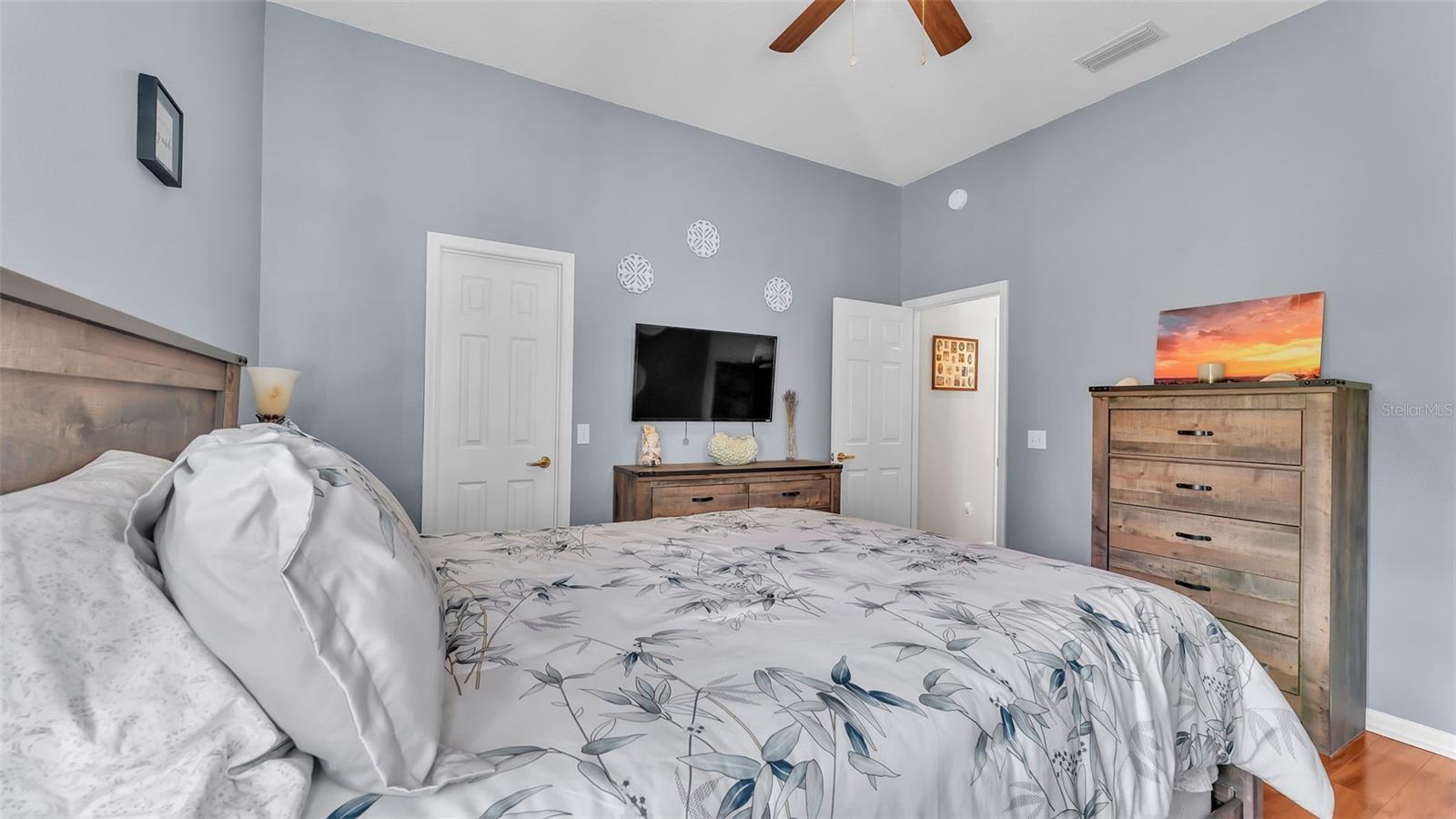 - Ceiling Fans(s), Eat-in Kitchen, L Dining, Open Floorplan, Solid Wood Cabinets, Stone Counters, Thermostat, Tray Ceiling(s), Walk-In Closet(s)