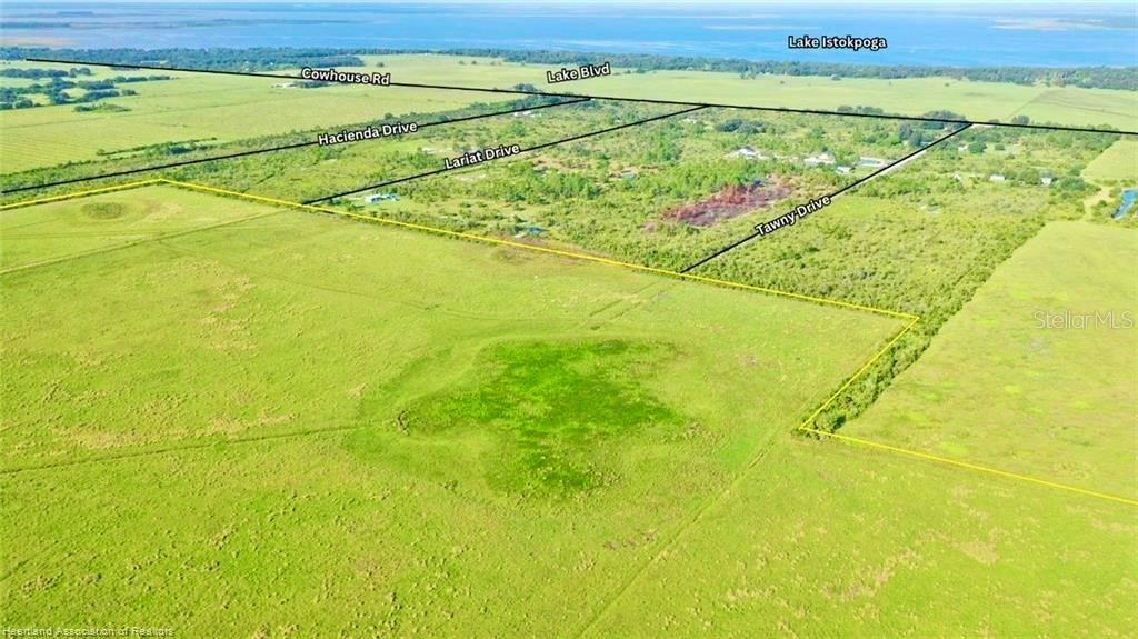 242+-Acre Ranch Lorida Florida Beautiful green bahia pastures fenced and cross fenced with watering ponds, seasonal creek currently leased for cattle with upside potential of multiple unused access road entries could easily be divided into multiple smaller ranches. With Lake Istokopa and the 12 Hours of Sebring/NASCAR Raceway to the west only minutes away and all the growth pushing away from our coastal cities this property has tremendeous upside potential for future development! Proforma metrics: Sod operation at $1,500-$2,200 per acre/ Watermelon farm lease @$250 per acre/ Cattle lease after improving pasture into Hemarthria grass to raise cattle production to 1 cow per two acre after harvesting sod. Hold with highest possible income then when ready to take highest potential profit on sale extend the existing northerly roads into the subject property creating 5-10 acre tracts at $25,000-$30,000 oer acre(Upside Potential) doubling your money/investment!