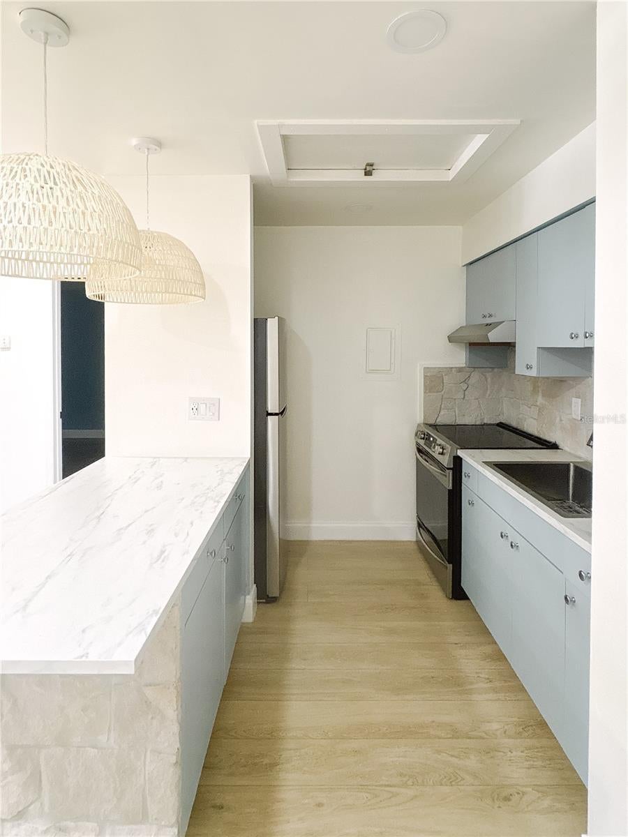 Welcome to Lakelandia! This 660 square foot 1 bedroom/1 bathroom garden-style apartment has been completely renovated with upscale finishes, including: floors, washer/dryer, sound blocking windows, stainless steel appliances, dimmable light fixtures/fan, new bathroom, countertops. Store everything you need in the giant walk-in closet, plus enjoy a large pantry in the kitchen. Garden views compliment this freshly renovated oasis, which is a few blocks away from /walking distance to the Lakeland Public Library, Mister Fish, Lake Morton and more! Apartment includes one parking spot. Additional parking available for an additional fee. Pets welcome for an additional fee. Rent includes water and lawn maintenance.
