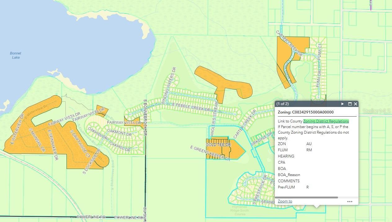 The development site is currently operated as the Preserve at Highlands Ridge Golf Course - the south course, at over 6,100 yards. The site consists of approximately 123 acres of land. Current zoning is AU (Agricultural) & Medium Density Land Use. The appeal is its lush tropical setting, with oak trees casting shade over winding streams and ponds. Nestled in the heart of Central Florida, The Florida Heartland is known for its citrus groves, ranch lands, and unique ecosystems. The picturesque landscape that is also perfect for outdoor enthusiasts. Great potential for future growth and development. For a Fast potential resale: sell 10 acre tracts to residents at $20k per acre to almost double your money!