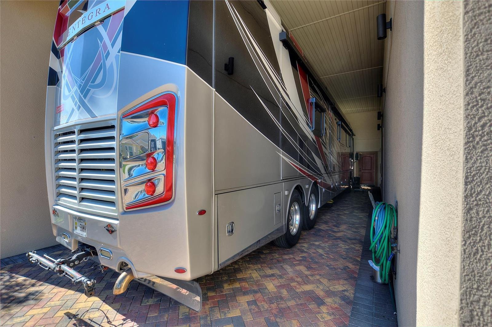 Experience Florida luxury living in this stunning home featuring 2,844 sq.ft. of thoughtfully designed space ideal for entertaining. The gourmet kitchen, a chef's delight, boasts granite countertops, a 17-ft bar, gas stove and oven, a walk-in butler's pantry and an island with a wine refrigerator. Entertain easily in the expansive great room, dining area and Florida room filled with natural light. The luxurious primary suite features a large designer walk-in closet and a shower with two shower heads, and a third bedroom can serve as a den or office. Enjoy a versatile multi-purpose hobby/game room/lounge with storage under the stairs. Also, included are a two-car garage, and an upstairs bonus room with access to a large attic. Outdoor highlights include a fenced backyard and an impressive 52' x 18.7' RV port with dual water connections and sun screens. With a whole-house generator, 250-gallon underground propane tank, gas on-demand water heating system, and energy-efficient appliances, this house offers elegance, comfort and convenience all in one exceptional package.