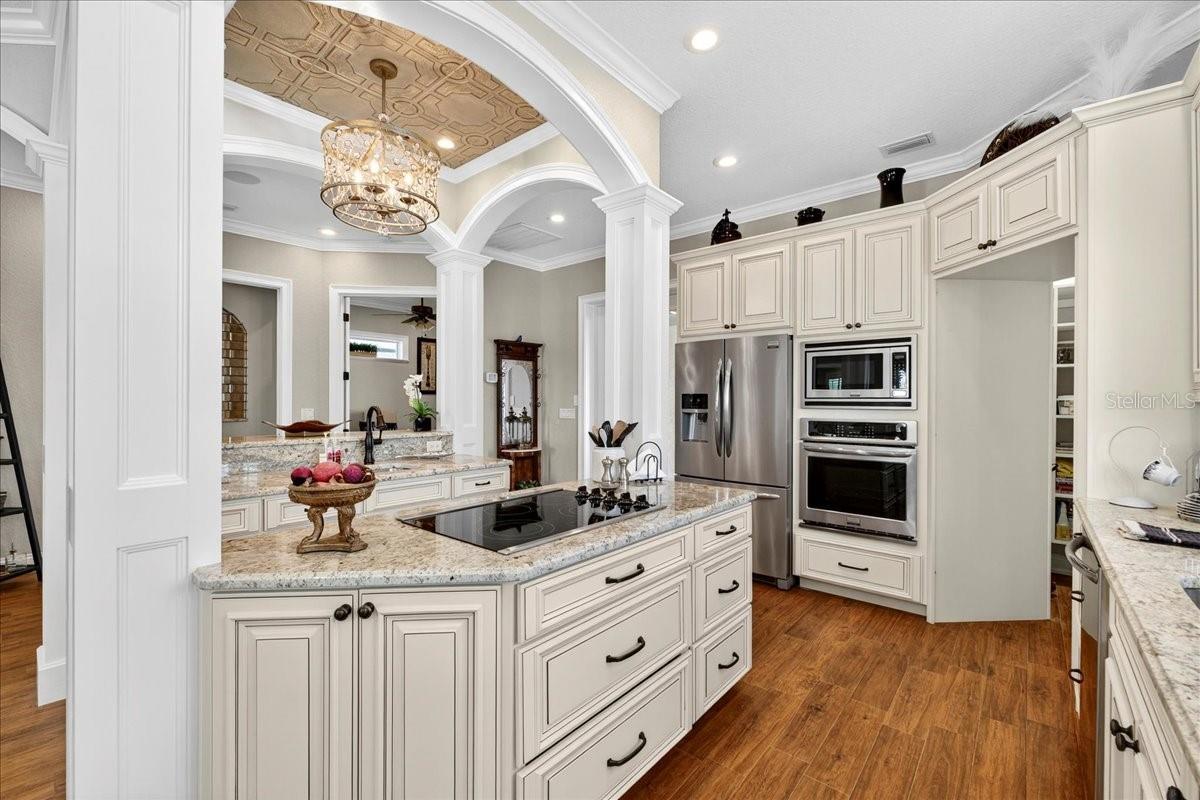 - Accessibility Features, Ceiling Fans(s), Crown Molding, Eat-in Kitchen, High Ceilings, Kitchen/Family Room Combo, Living Room/Dining Room Combo, Open Floorplan, Primary Bedroom Main Floor, Walk-In Closet(s)