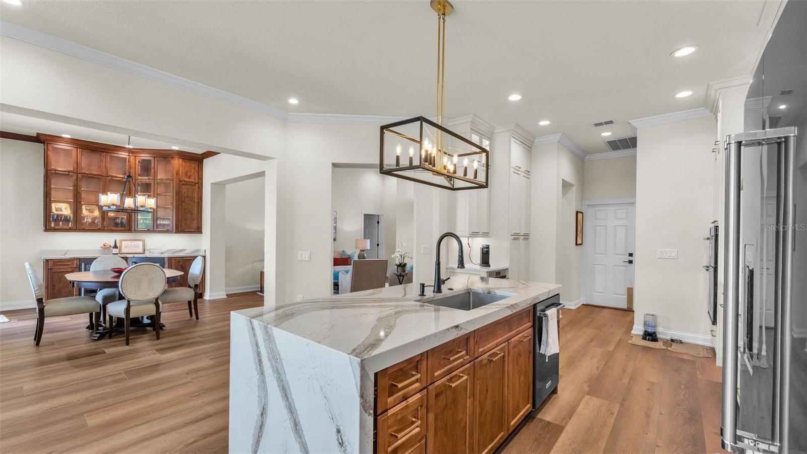 - Ceiling Fans(s), Crown Molding, Dry Bar, High Ceilings, Kitchen/Family Room Combo, Open Floorplan, Solid Wood Cabinets, Split Bedroom, Walk-In Closet(s), Window Treatments