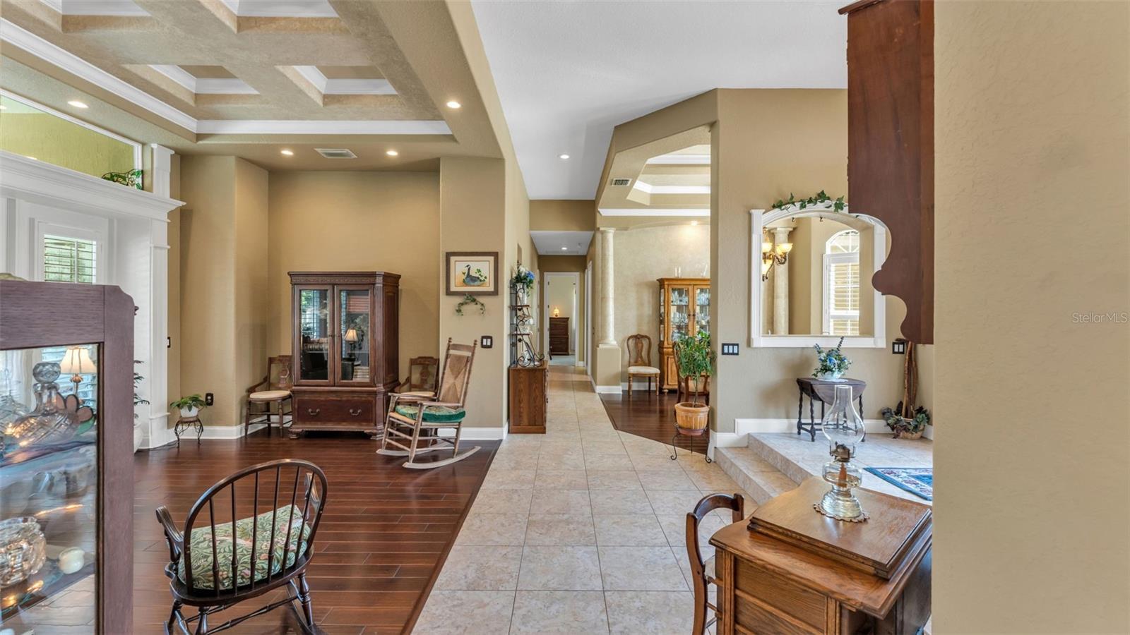 - Ceiling Fans(s), Coffered Ceiling(s), Crown Molding, Eat-in Kitchen, High Ceilings, Kitchen/Family Room Combo, Living Room/Dining Room Combo, Open Floorplan, Primary Bedroom Main Floor, Solid Wood Cabinets, Split Bedroom, Stone Counters, Thermostat, Tray Ceiling(s), Vaulted Ceiling(s), Walk-In Closet(s), Window Treatments
