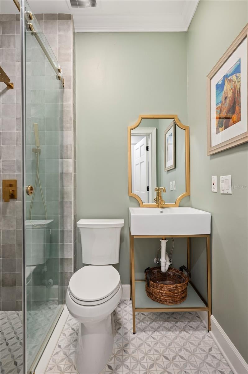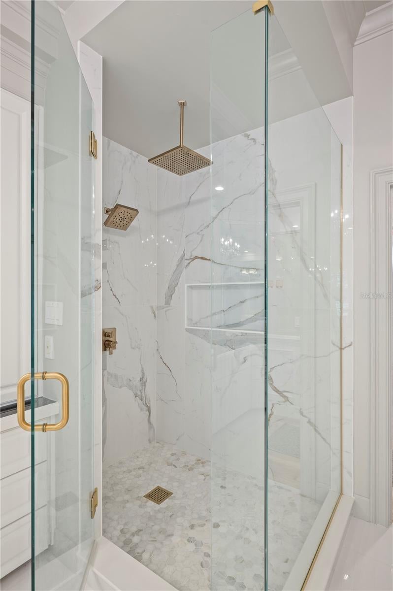 Welcome home! Set on a stately 0.60-acre lot with a gated circular drive, this modern craftsman home exudes timeless sophistication and quality design. Beautifully positioned in the heart of central Lakeland nestled in the historic Lake Hollingsworth neighborhood, this residence offers 4,660 sq. ft. of living space with 4 bedrooms, 4 full bathrooms, and a dedicated office—every detail thoughtfully curated for both style and comfort. Inside, European white oak flooring flows throughout, complemented by a striking staircase with a matching white oak banister. The home offers three distinct living spaces: a formal living room dressed in elegant moldings, a spacious family room anchored by custom built-ins and a gas fireplace, and a large bonus room with French doors leading out to the pool—ideal for a playroom, media lounge, or additional gathering space. The gourmet kitchen is a true showstopper, crafted with high-end wood cabinetry, dolomite countertops, and professional-grade Monogram appliances including a 42-inch refrigerator, 48-inch gas range, and drawer microwave. Arched openings lead to the dining room and family room, creating an open, light-filled flow perfect for entertaining and everyday living. The downstairs tri-split bedroom layout ensures privacy for all, with each bedroom paired near its own full bathroom. The primary suite is a luxurious retreat, featuring coffered ceilings, a gas fireplace, French doors opening to the pool, a custom walk-in closet with built-in cabinetry, and a spa-inspired bathroom with new tile, shower, and soaking tub. Upstairs, a generous flex space serves beautifully as the fourth bedroom, private guest suite, or home theater, complete with its own full bath, closet, and air-conditioned walk-in attic storage. Venture outside to your backyard oasis, where a newly resurfaced pool, spa, and updated tile invite relaxation and entertaining (pool warranty transferable to new owner). Bay windows from the kitchen dinette overlook this picturesque setting, creating a seamless indoor-outdoor connection. A dedicated well supplies the irrigation system, keeping the grounds lush and beautiful year-round! From its grand elevation and architectural detail to its functional layout and high-end finishes—and with close proximity to Lake Hollingsworth—this central Lakeland estate blends craftsmanship, comfort, and modern luxury!