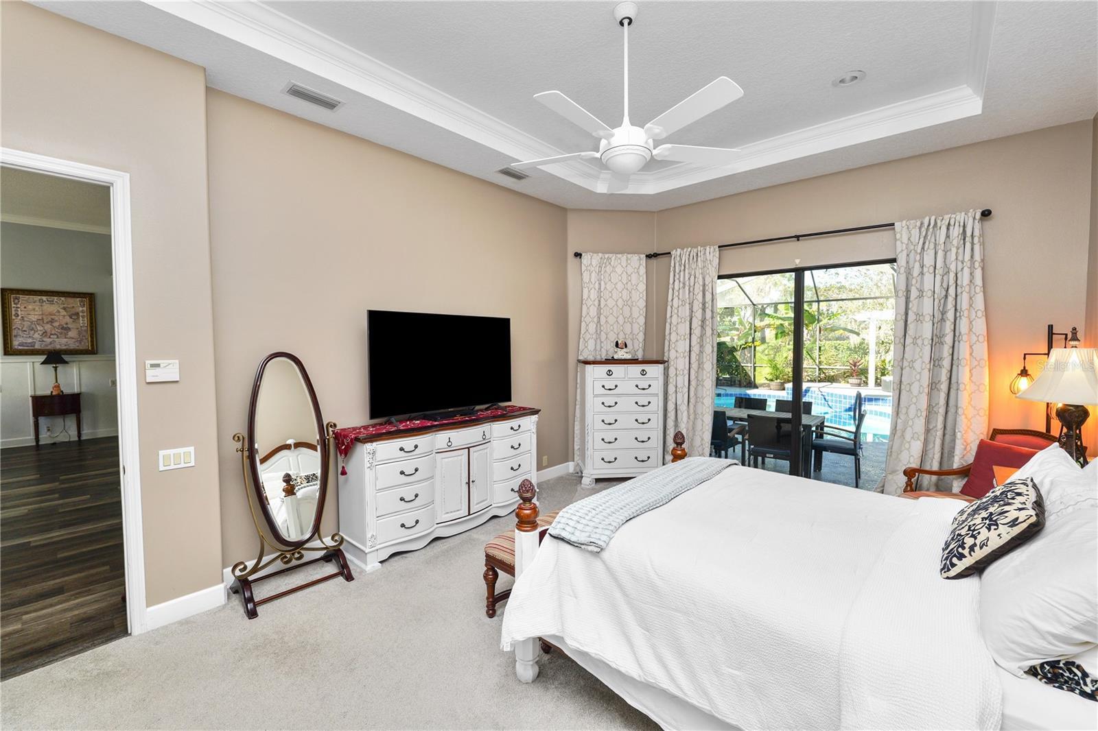Welcome to your dream home in the gated community of Eaglebrooke, where timeless elegance meets modern comfort. Overlooking the 9th hole of The Club at Eaglebrooke, this stunning residence offers 3,343 square feet of luxurious living space with 4 bedrooms, 3 baths, and a versatile bonus room. Designed for both entertaining and everyday living, the open-concept, three-way split floor plan showcases soaring 12–14 ft. tray ceilings, designer lighting, and panoramic glass doors framing serene golf course and pool views. The chef’s kitchen has been completely remodeled to perfection, featuring a center island, huge breakfast bar, eat-in nook, walk-in pantry, 42” custom cabinetry, quartz countertops, and top-of-the-line stainless steel appliances — an entertainer’s dream. Enjoy both formal living and dining rooms as well as a spacious family room that flows effortlessly to the lanai and resort-style pool. The outdoor living area is ideal for gatherings, complete with poolside cooking and tranquil views of the lush fairway. The primary suite is a private retreat featuring pool views, an elegant en-suite bath with dual vanities, and a spacious walk-in closet. Bedrooms 2 and 3 are privately situated on the opposite side of the home, while the expansive fourth bedroom offers flexibility as a mother-in-law suite or guest retreat. A dream laundry room with solid wood cabinetry and abundant storage adds convenience and style. Notable upgrades and improvements include: New roof (2021), New A/C system (2023), New pool equipment (2022), New insulation for enhanced energy efficiency, whole-house water filtration system, oversized 3-car garage with workspace, and extensive designer upgrades throughout. This exceptional home embodies the perfect balance of sophistication, comfort, and resort-style living — all within one of Lakeland’s most desirable gated golf communities. WELCOME TO EAGLEBROOKE! WELCOME HOME!