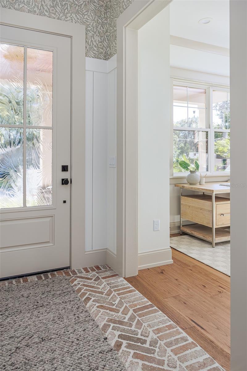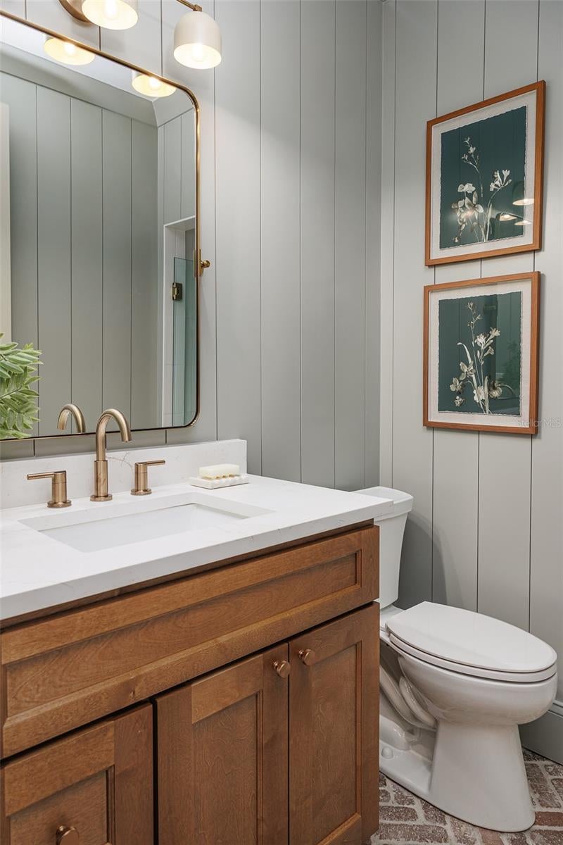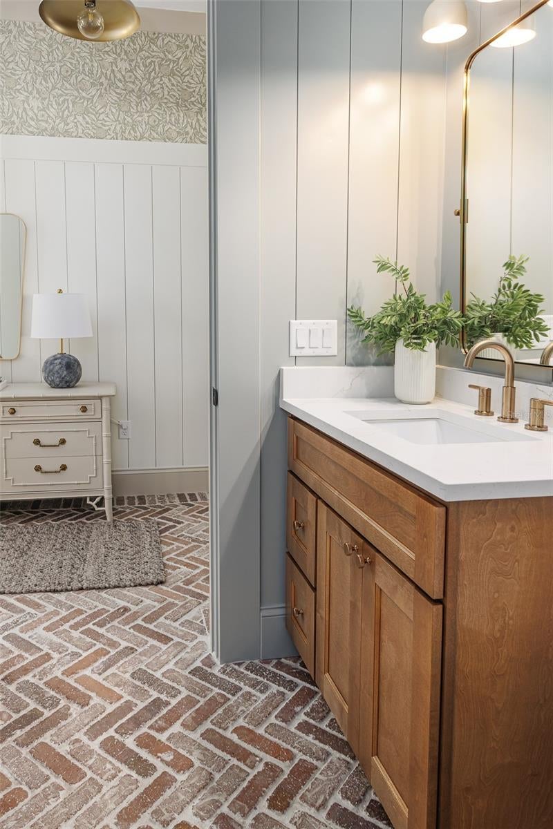 Beauty and comfort at its finest. This new custom 4-bedroom 4 bath Pool home is nestled in the heart of Lakeland close to Lake Hollingsworth. The peaceful front porch is perfect for morning coffee or reading your favorite book. The grand foyer sets the tone for this cozy cottage home with a brick floor entry and vertical shiplap. Large office which could also be used as a 5th bedroom and the powder bath that offers full shower with exquisite taste. Walk into the grand great room that offers open cozy concept boasting the brick electric fireplace and custom Amish build ins and bookcase. Steps away from the dry bar and a one-of-a-kind custom solid wood Amish kitchen, quartz countertops, walk in pantry with extra storage. Dining space offers panoramic views of private back yard and pool area. The Inside Laundry room offers custom Amish Mud bench with drop zone, cubbies for hiding shoes, broom closet and downstairs washer and dryer hookup. Primary bedroom located on the first level offers French doors leading out to the back yard living space. The primary bathroom features his and her vanities and his and her closets, large shower with all the bells and whistles. Triple sliding doors off the great room leads to the beautiful serene outdoor living space with cover entertaining area and outdoor kitchen great for grilling. Oversized pool deck and in ground pool with sun ledge, lovely and peaceful landscaping also featuring turf on both side yards for relaxing and maintenance free back yard paradise living. Upstairs living offers space for everyone, large bonus room for entertaining or just hanging out. Three bedrooms and two full baths along with an upstairs laundry room for added convivence to the upstairs bedrooms. The upstairs character and shiplap carry the cozy cottage feel throughout. This home offers many upgrades and room for everyone.